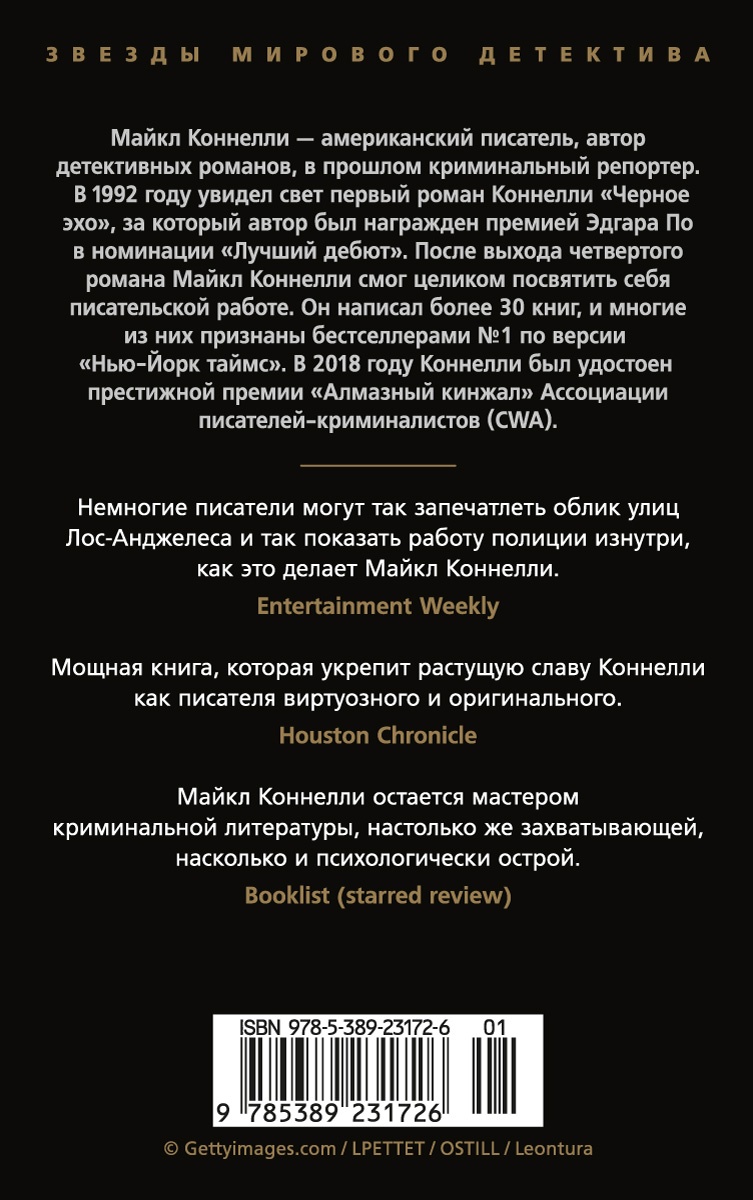 В жизни Гарри Босха, детектива полиции Лос-Анджелеса, наступает черная полоса: его дом разрушен землетрясением, от него уходит любимая женщина и... он временно отстранен от работы за рукоприкладство. Зато теперь у Гарри появился досуг, чтобы изучить старые материалы дела об убийстве, произошедшем в далеком 1961 году. Это лично касается Босха: жертвой была его мать, «девушка по вызову». Почему преступление осталось нераскрытым? Кто истинный виновник ее смерти? В общем, не праздное любопытство вынуждает Босха противостоять демонам прошлого, и в ходе расследования выясняется, что все ниточки ведут к роскошной резиденции на Голливудских холмах. Босх приближается к разгадке с каждым шагом, и каждый шаг может оказаться последним...| Издательство | Азбука |