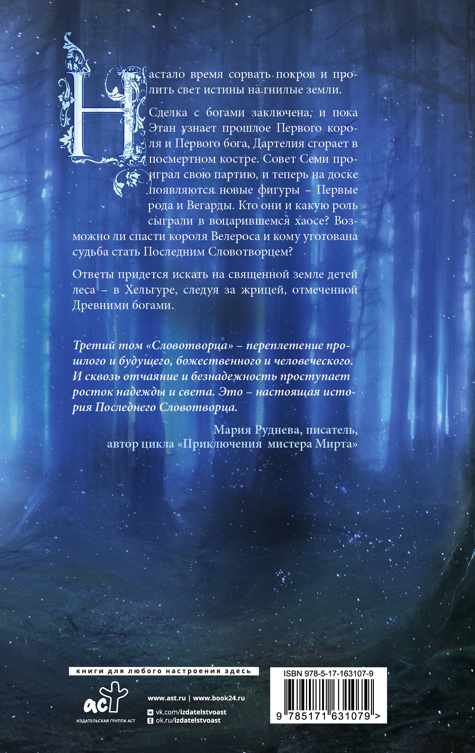 Третий том цикла «Последний Словотворец»! Пришло время приоткрыть покров и пролить свет истины на гнилые земли. Договоренность с богами заключена, и Дартелия сгорает в посмертном пламени. Этан же видит прошлое и узнает тайны Первого короля и Первого бога. Совет Семи потерпел крах, и на доску выходят новые фигуры - Первые рода и Вегарды. В чем их сила, в чем роль в игре? Есть ли шанс спасти короля Велероса и кому уготована судьба стать Последним Словотворцем? Ответы ищи у детей леса - в Хельгуре, следуя за жрицей путем Древних богов.| Издательство | Издательство "АСТ" |