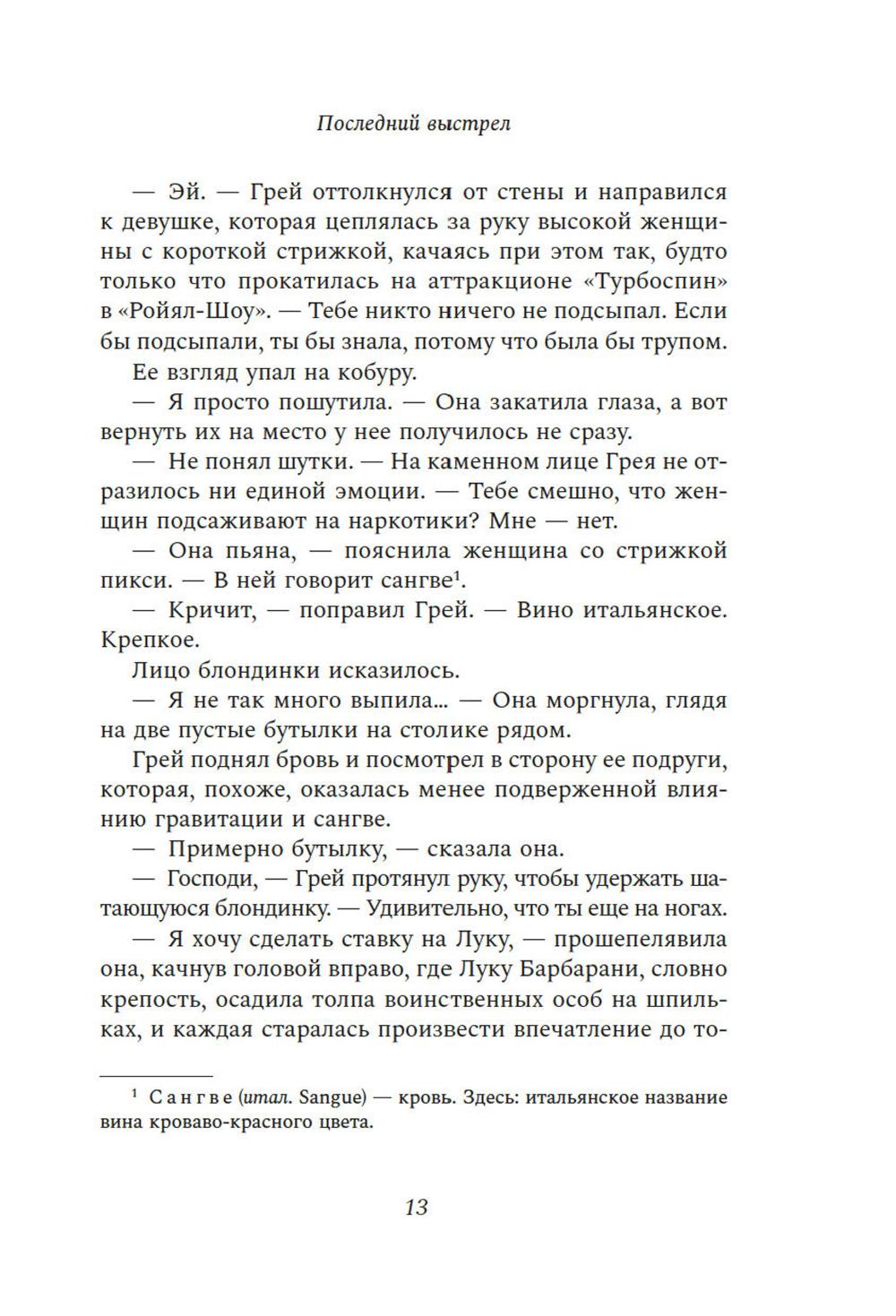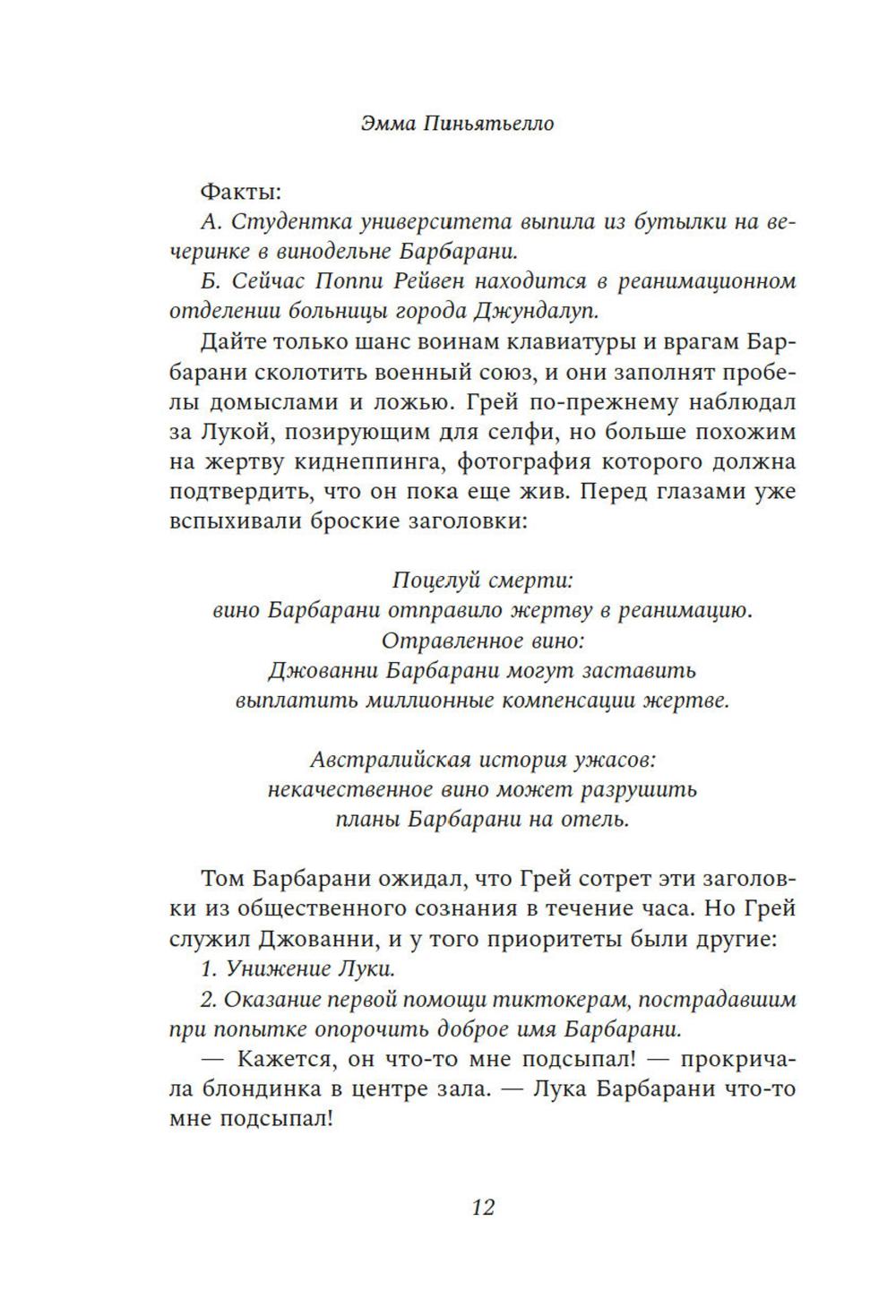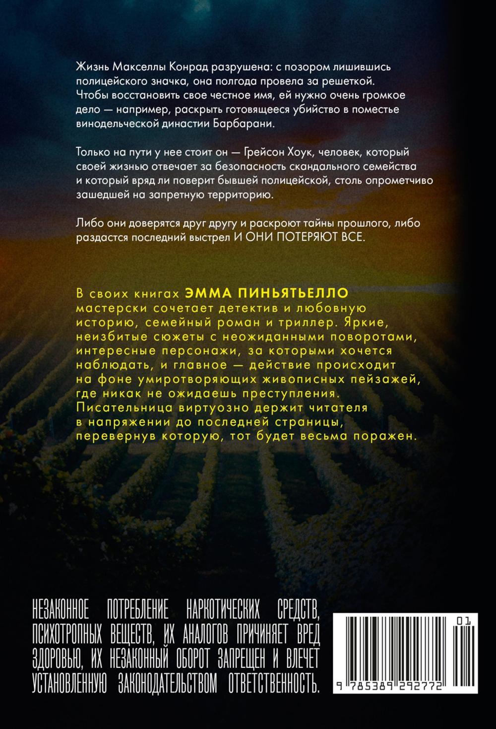 СОДЕРЖИТ ИНФОРМАЦИЮ О НАРКОТИЧЕСКИХ ИЛИ ПСИХОТРОПНЫХ ВЕЩЕСТВАХ, УПОТРЕБЛЕНИЕ КОТОРЫХ ОПАСНО ДЛЯ ЗДОРОВЬЯ. ИХ НЕЗАКОННЫЙ ОБОРОТ ВЛЕЧЕТ УГОЛОВНУЮ ОТВЕТСТВЕННОСТЬ. Жизнь Макселлы Конрад разрушена: с позором лишившись полицейского значка, она полгода провела за решеткой. Чтобы восстановить свое честное имя, ей нужно очень громкое дело - например, раскрыть готовящееся убийство в поместье винодельческой династии Барбарани. Только на пути у нее стоит он - Грейсон Хоук - человек, который своей жизнью отвечает за безопасность скандального семейства, который вряд ли поверит бывшей полицейской, столь опрометчиво зашедшей на запретную территорию. Либо они доверятся друг другу и раскроют тайны прошлого, либо раздастся последний выстрел, и они потеряют все.| Издательство | Азбука |