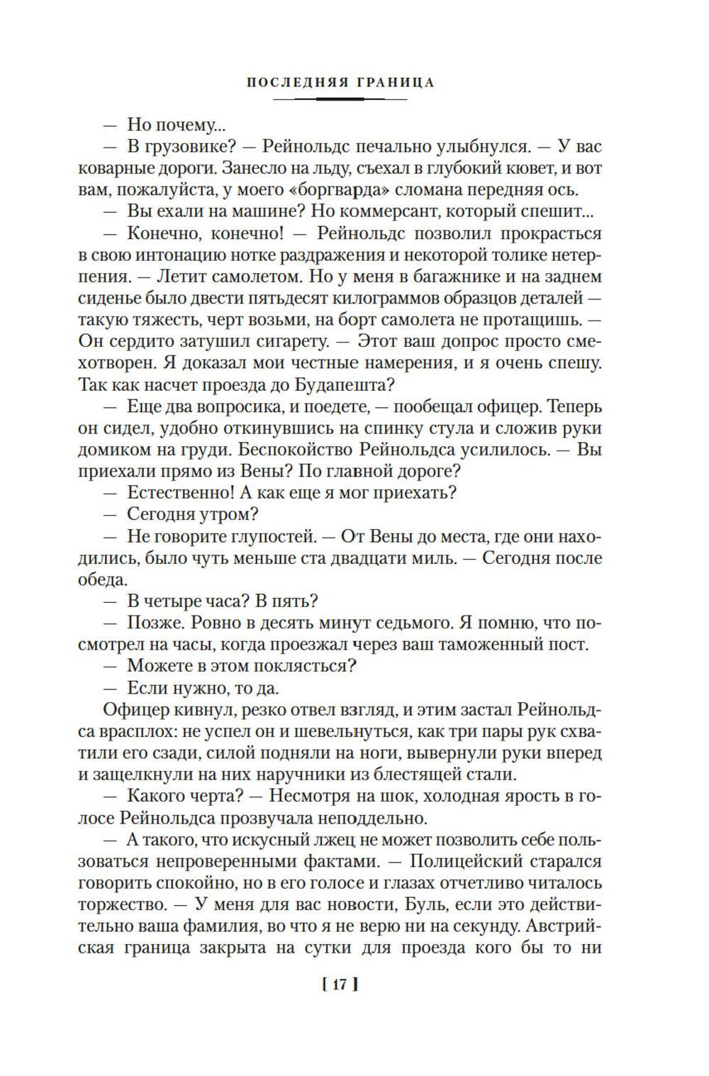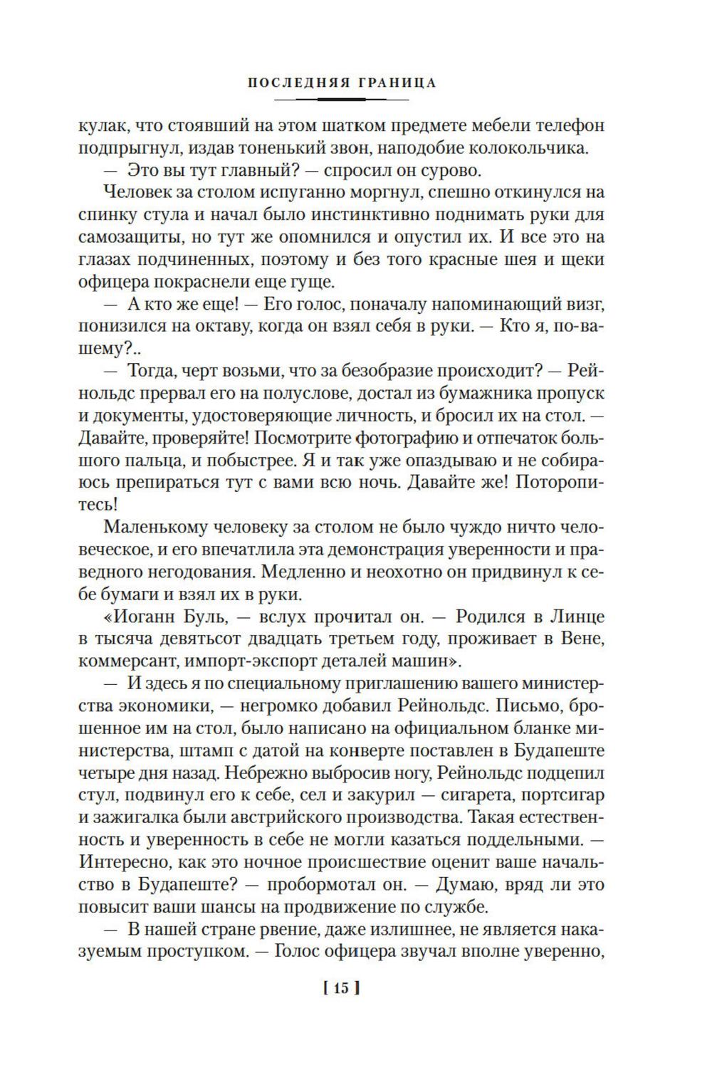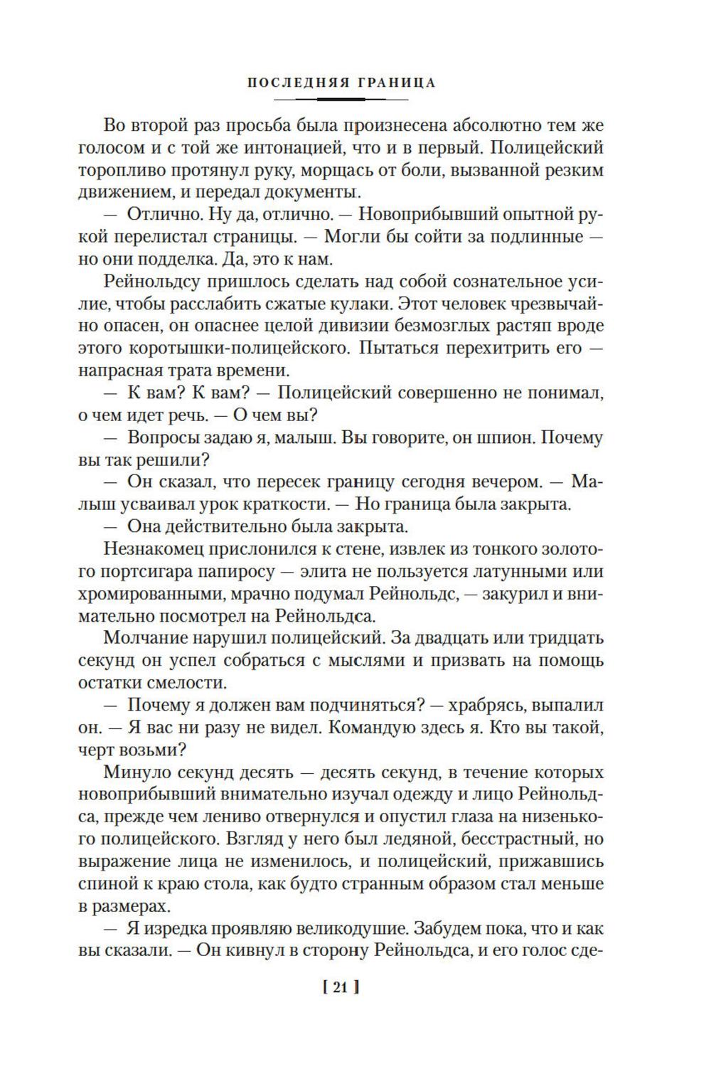 СОДЕРЖИТ ИНФОРМАЦИЮ О НАРКОТИЧЕСКИХ ИЛИ ПСИХОТРОПНЫХ ВЕЩЕСТВАХ, УПОТРЕБЛЕНИЕ КОТОРЫХ ОПАСНО ДЛЯ ЗДОРОВЬЯ. ИХ НЕЗАКОННЫЙ ОБОРОТ ВЛЕЧЕТ УГОЛОВНУЮ ОТВЕТСТВЕННОСТЬ. Алистер Маклин (1922-1987) - британский писатель, автор 28 остросюжетных романов и приключенческих рассказов, сценарист. Его имя широко известно читателям всего мира. Книги Маклина разошлись тиражом более 150 миллионов экземпляров, по его романам, сценариям и сюжетам было снято 18 фильмов. В 1983 году Университет Глазго присвоил писателю степень доктора литературоведения. Флагман сборника «Последняя граница» - шпионский триллер, посвященный событиям холодной войны. Британский секретный агент противостоит тайной полиции Венгрии, выполняя миссию по спасению похищенного ученого, своего соотечественника. В 1961 году роман был экранизирован под названием «Тайные пути». Военный боевик «Партизаны» возвращает нас во времена Второй мировой. Майор Петерсен со своей командой пересекает Югославию, чтобы доставить секретное сообщение и разоблачить двойного агента, действующего в партизанском отряде. «К югу от Явы» - шпионский, военно-морской и приключенческий роман, действие которого происходит в 1942 году, сразу после падения Сингапура. Разношерстная группа беглецов покидает горящий город на борту ветхого грузового судна под командованием капитана с весьма сомнительной репутацией... Все романы выходят в новом переводе.| Издательство | Азбука |