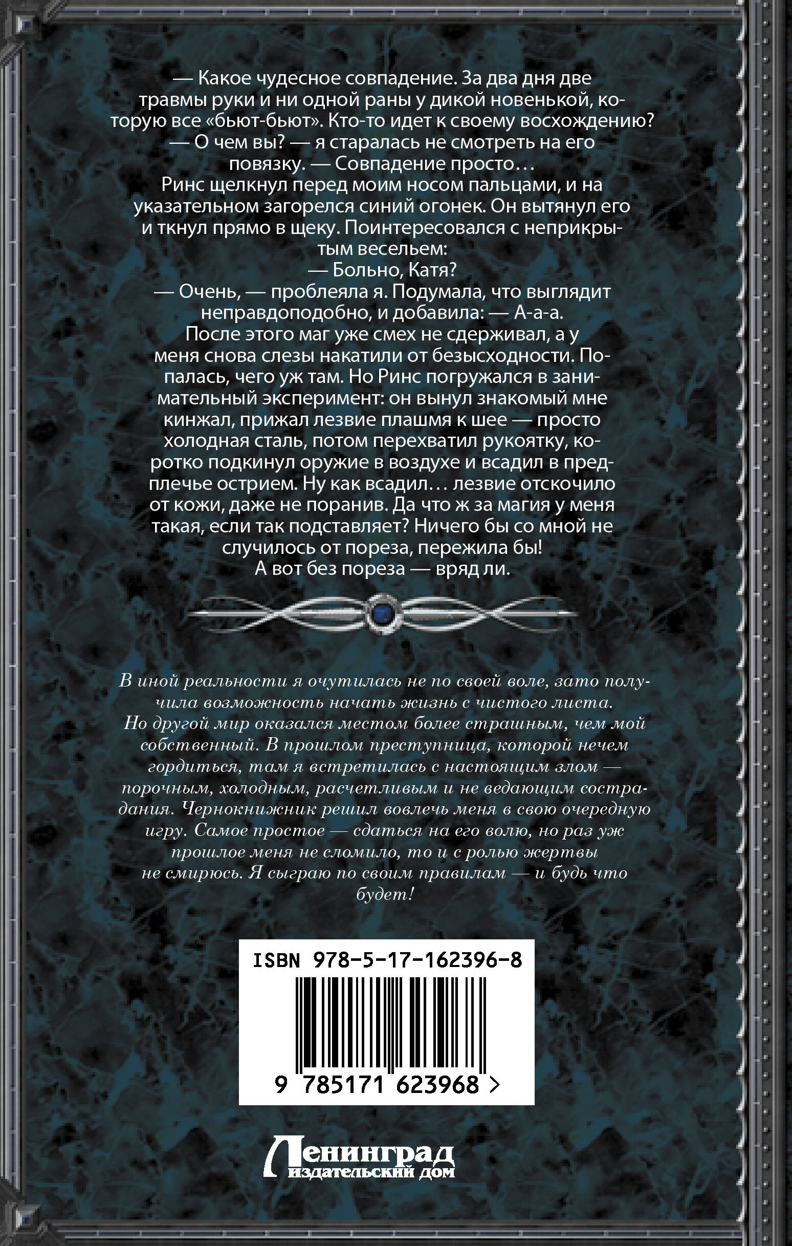 В иной реальности я очутилась не по своей воле, зато получила возможность начать жизнь с чистого листа. Но другой мир оказался местом более страшным, чем мой собственный. В прошлом преступница, которой нечем гордиться, там я встретилась с настоящим злом - порочным, холодным, расчетливым и не ведающим сострадания. Чернокнижник решил вовлечь меня в свою очередную игру. Самое простое - сдаться на его волю, но раз уж прошлое меня не сломило, то и с ролью жертвы не смирюсь. Я сыграю по своим правилам - и будь что будет!| Издательство | Издательство "АСТ" |