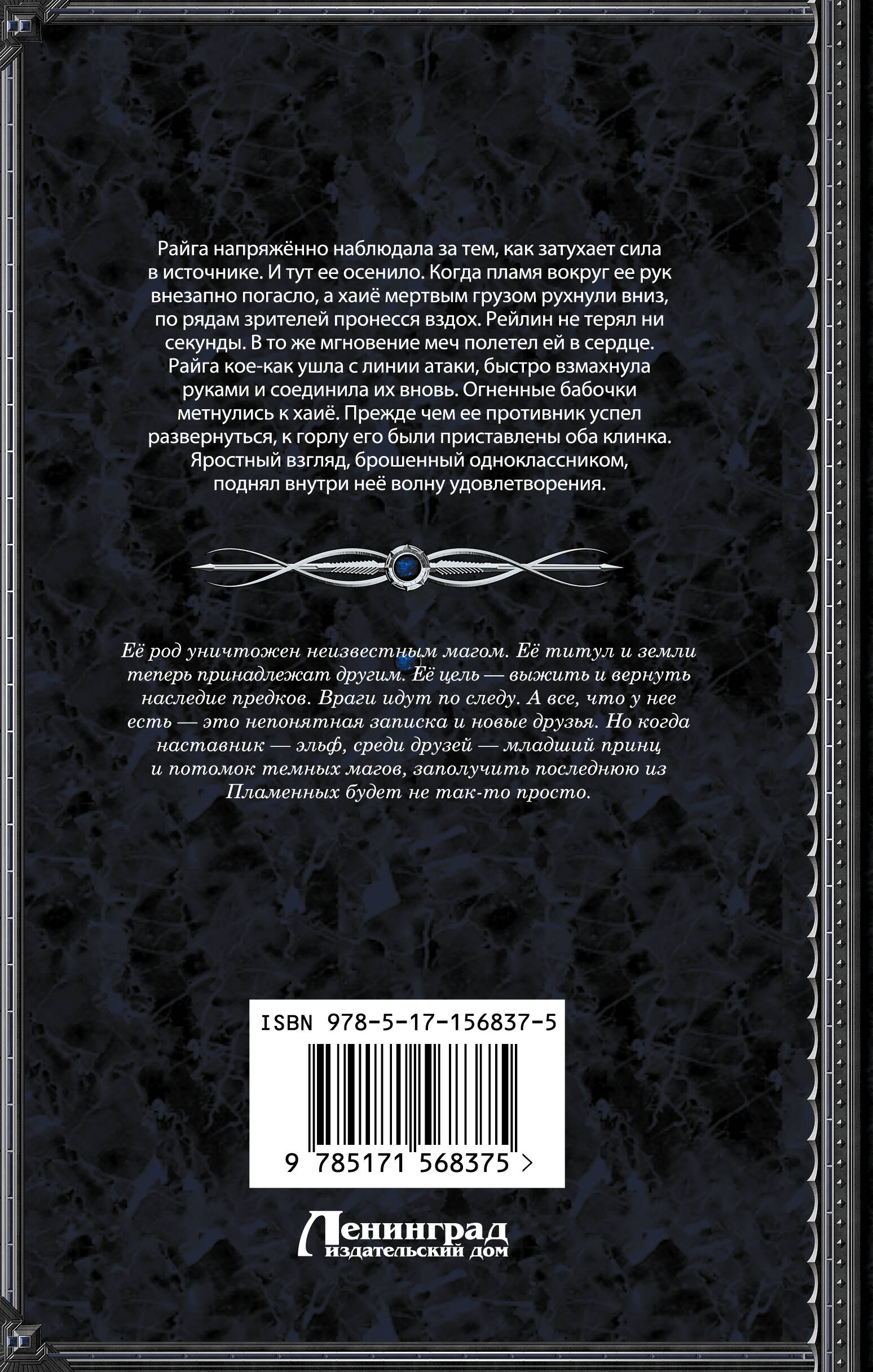 Её род уничтожен неизвестным магом. Её титул и земли теперь принадлежат другим. Её цель - выжить и вернуть наследие предков. Враги идут по следу. А все, что у нее есть - это непонятная записка и новые друзья. Но когда наставник - эльф, среди друзей - младший принц и потомок темных магов, заполучить последнюю из Пламенных будет не так-то просто.| Издательство | Издательство "АСТ" |