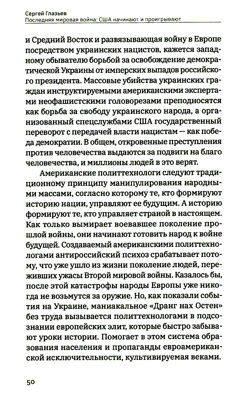 Более восьми лет назад вышло в свет первое издание книги, в которой известный российский политик, экономист, академик РАН Сергей Юрьевич Глазьев, сделав анализ глобальных политических и экономических изменений последних лет, пришел к выводу: в результате кризиса, охватившего мир, страны Запада, прежде всего США, наращивают свою агрессию по отношению к другим государствам. Вновь на горизонте, как и в середине XX века, маячит угроза еврофашизма, передовым отрядом которого стали украинские националисты. Свой основной удар Запад направил против России. Сейчас в 2024 году спустя два года после начала СВО очевидно, что изложенная Сергеем Глазьевым теория долгосрочного развития экономики верна, так как построенные на ее основе прогнозы, казавшиеся тогда невероятными, полностью подтвердились. Также в реальности раскрылись описанные в книге механизмы развертывания агрессивного стремления властно-финансовой элиты США к удержанию мировой гегемонии в развязывании мировой гибридной войны. Сегодня, опираясь на тот же методологический подход, мы можем дать научно обоснованный прогноз последствий работы этих механизмов в обозримой перспективе. Зачем Америке новая мировая война и как в ней победить? Почему как плацдарм для нее выбрана Украина? Что мы можем противопоставить западной агрессии и санкционной войне? Какое будущее ожидает Россию, Украину и весь мир в XXI столетии? Об этом - в новом издании культовой книги академика Сергея Юрьевича Глазьева.| Издательство | Книжный мир |