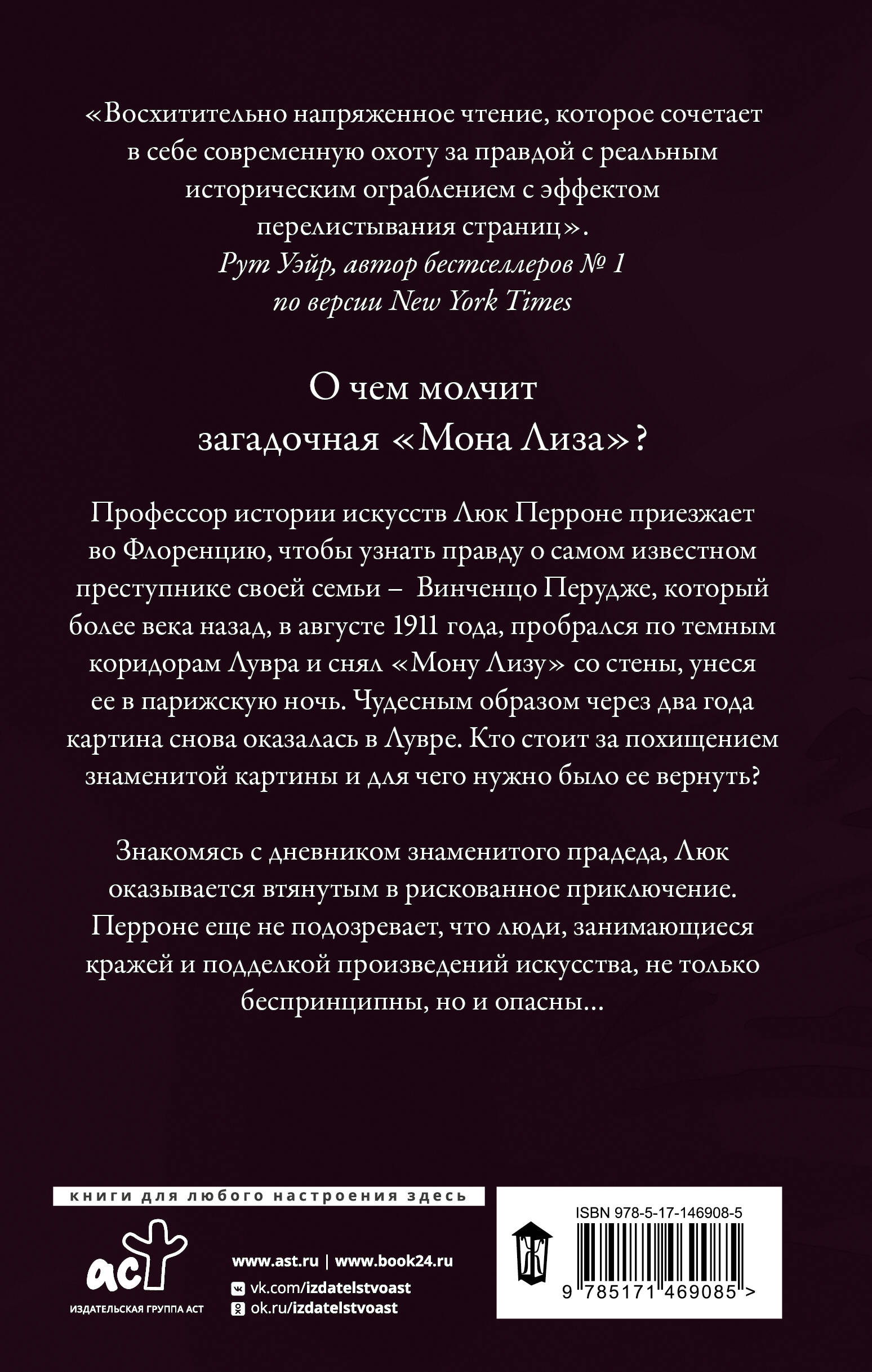 Захватывающий приключенческий триллер о краже великой «Моны Лизы» в 1911 году. Джонатан Сантлоуфер - известный художник и писатель. Его картины представлены в лучших галереях мира, а его книги стали международными бестселлерами и переведены на 22 языка. Увлекательное путешествие в мир шедевров искусства и их искусных подделок.| Издательство | ИЗДАТЕЛЬСТВО "АСТ" |