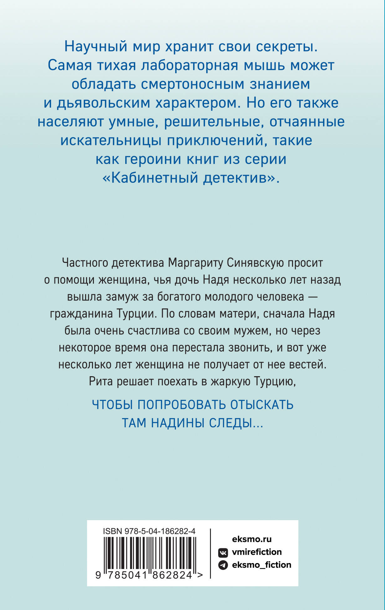 Частного детектива Маргариту Синявскую просит о помощи женщина, чья дочь Надя несколько лет назад вышла замуж за богатого молодого человека - гражданина Турции. По словам матери, сначала Надя была очень счастлива со своим мужем, но через некоторое время она перестала звонить, и вот уже несколько лет женщина не получает от нее вестей. Рита решает поехать в жаркую Турцию, чтобы попробовать отыскать там Надины следы... Героини остросюжетных романов Ирины Градовой очаровательны, стремительны и непредсказуемы, как океанская волна - самая настоящая стихия. Этих бесстрашных и обаятельных женщин ждут невероятные приключения, а читателей - увлекательные романы, от которых просто невозможно оторваться.| Издательство | ООО "Издательство "Эксмо" |