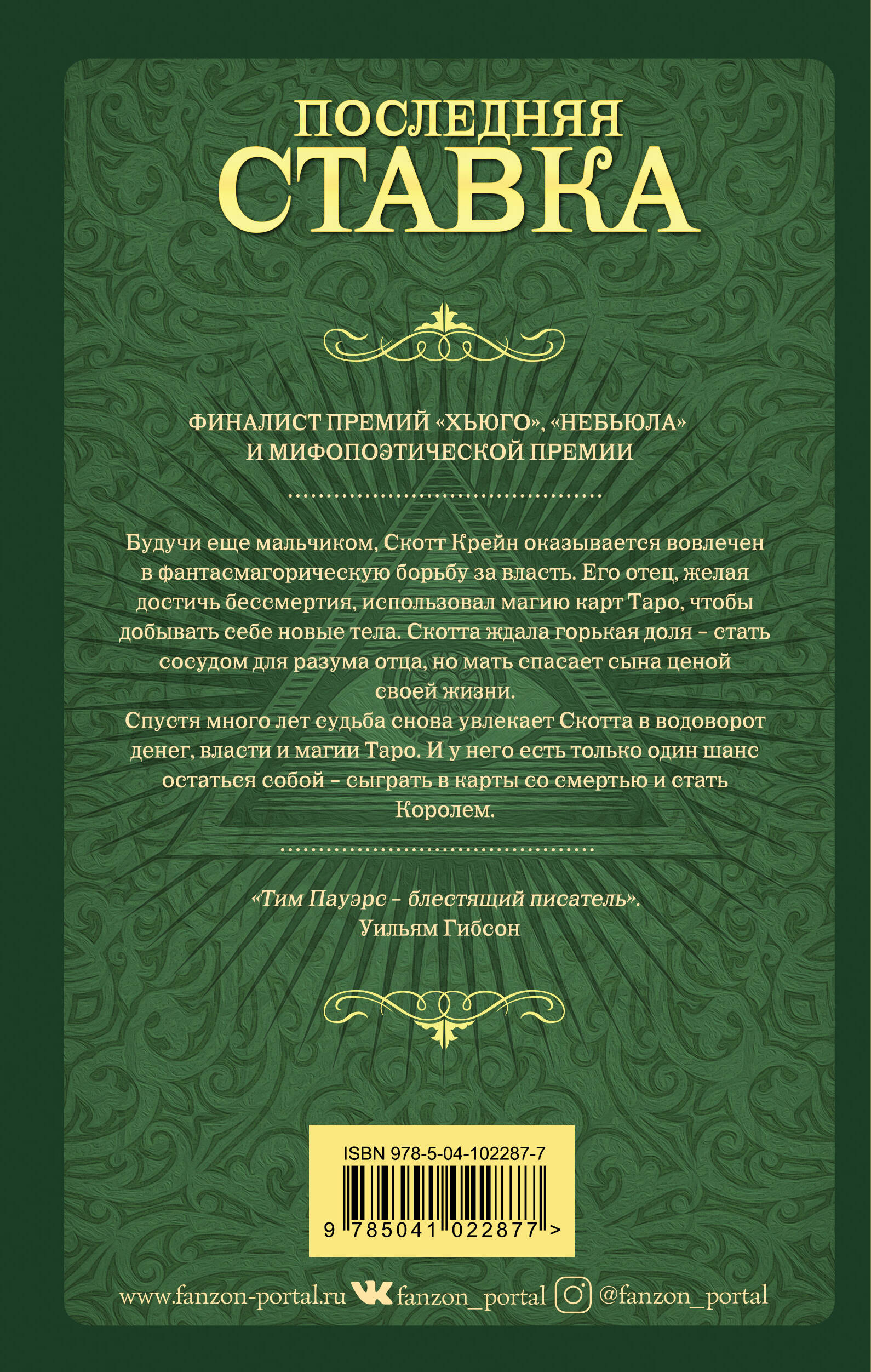 Финалист премий «Хьюго», «Небьюла» и Мифопоэтической премии. Будучи еще мальчиком, Скотт Крейн оказывается вовлечен в фантасмагорическую борьбу за власть. Его отец, желая достичь бессмертия, использовал магию карт Таро, чтобы добывать себе новые тела. Скотта ждала горькая доля - стать сосудом для разума отца, но мать спасает сына ценой своей жизни. Спустя много лет судьба снова увлекает Скотта в водоворот денег, власти и магии Таро. И у него есть только один шанс остаться собой - сыграть в карты со смертью и стать Королем. «Тим Пауэрс - блестящий писатель». - Уильям Гибсон