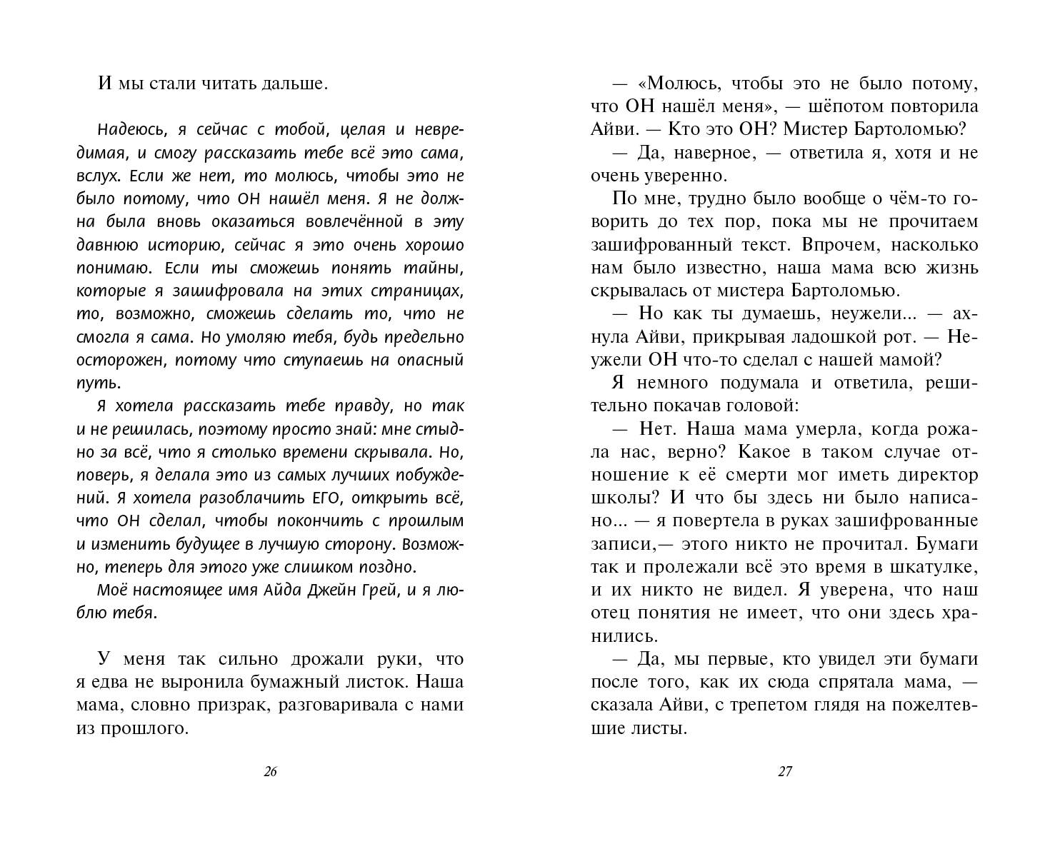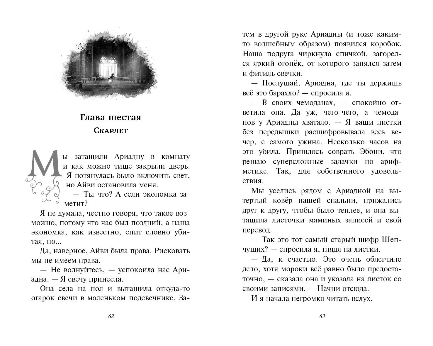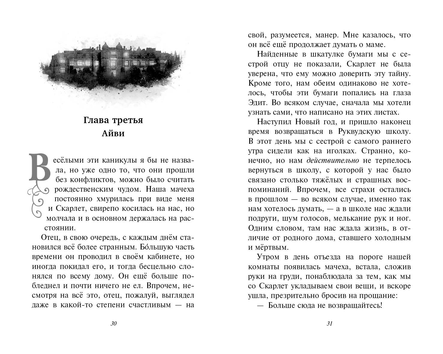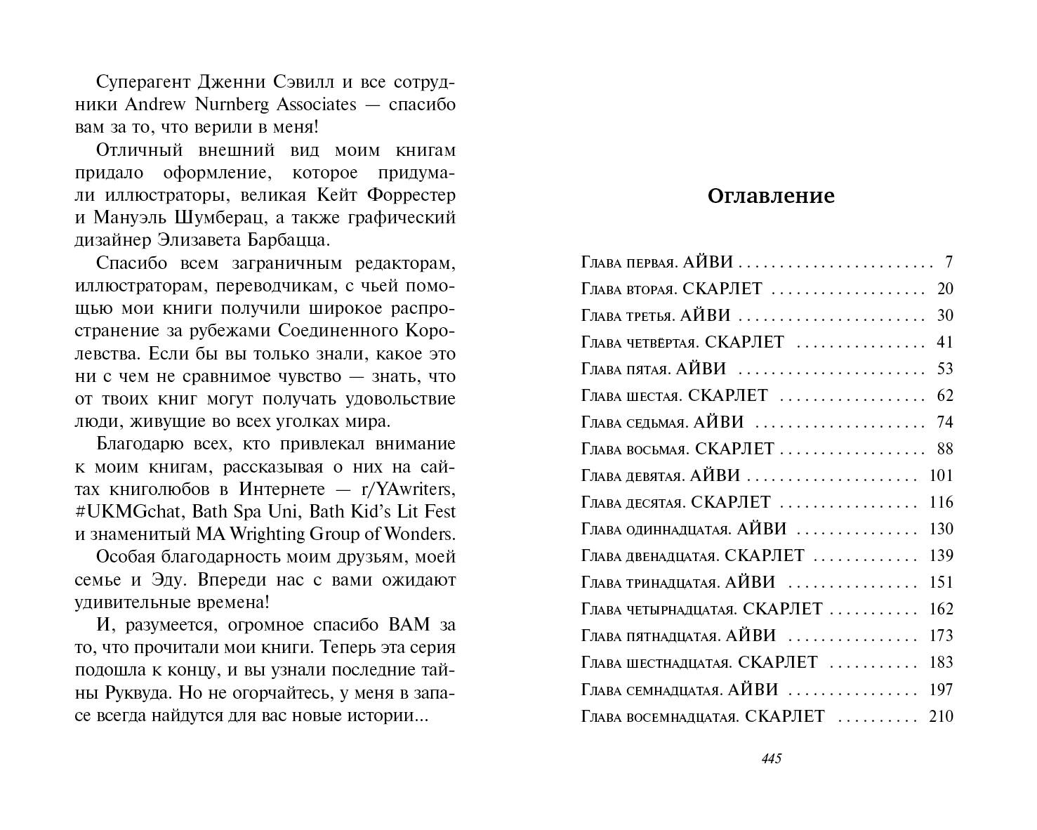 Каждая книга серии о тайнах и загадках Руквудской школы становится международным бестселлером. Эта история одновременно и детектив, и приключения, и увлекательный квест - полный набор сюжетных ходов, которые делают книгу незабываемой. Главные героини, Скарлетт и Айви, зеркальные близнецы, одинаковые во всем, кроме своих имен и характеров. Именно поэтому так интересно следить за тем, как они подменяют друг друга и как при этом по-разному ведут себя в одних и тех же обстоятельствах. Эта книга показывает, как важны искренность и доверие, особенно в те моменты, когда кажется, что довериться никому нельзя. А еще это классная история о том, как, несмотря на все препятствия, с помощью друзей, собственной смелости и находчивости можно победить очень сильного и влиятельного противника.| Издательство | ООО "Издательство "Эксмо" |