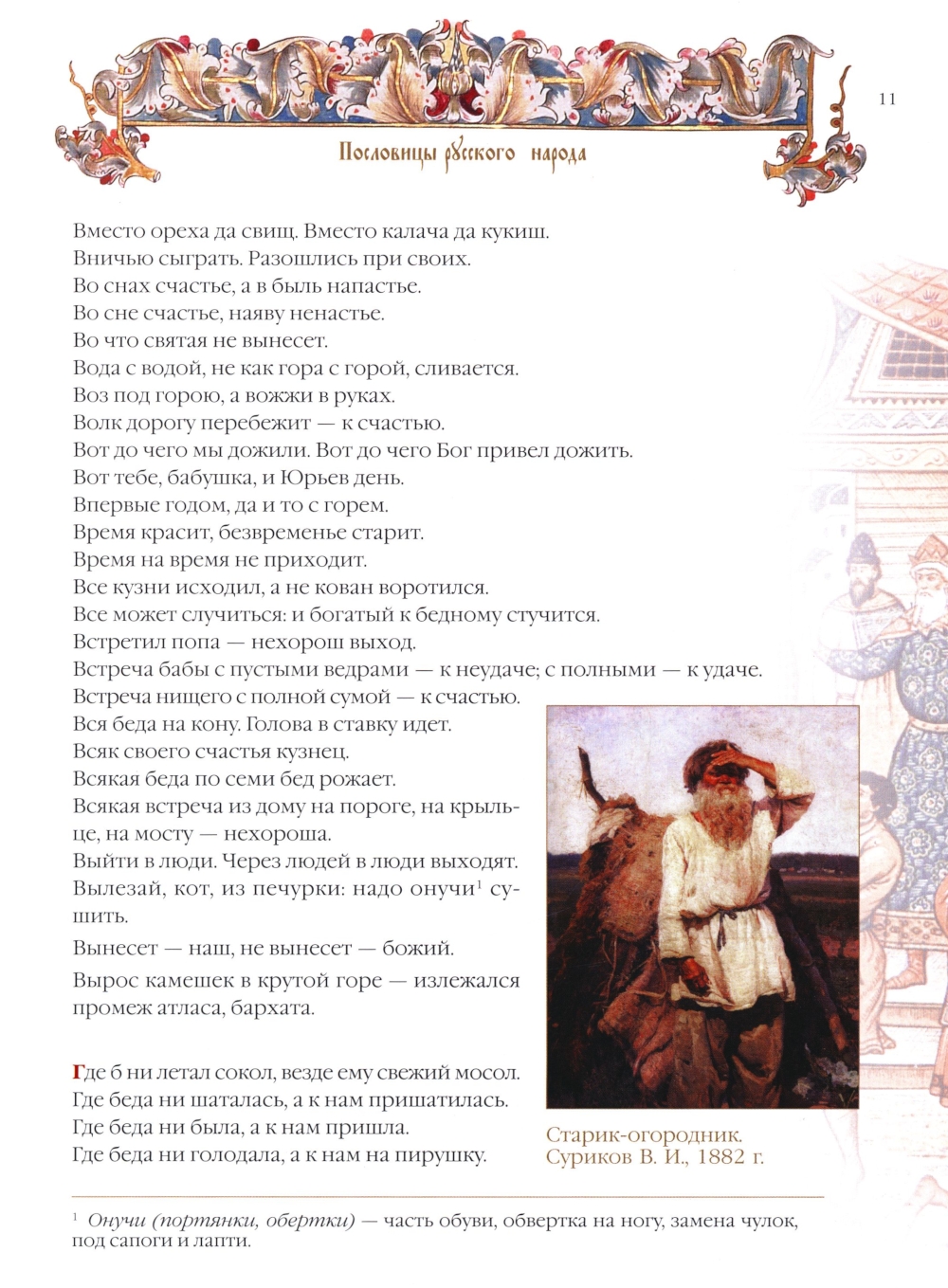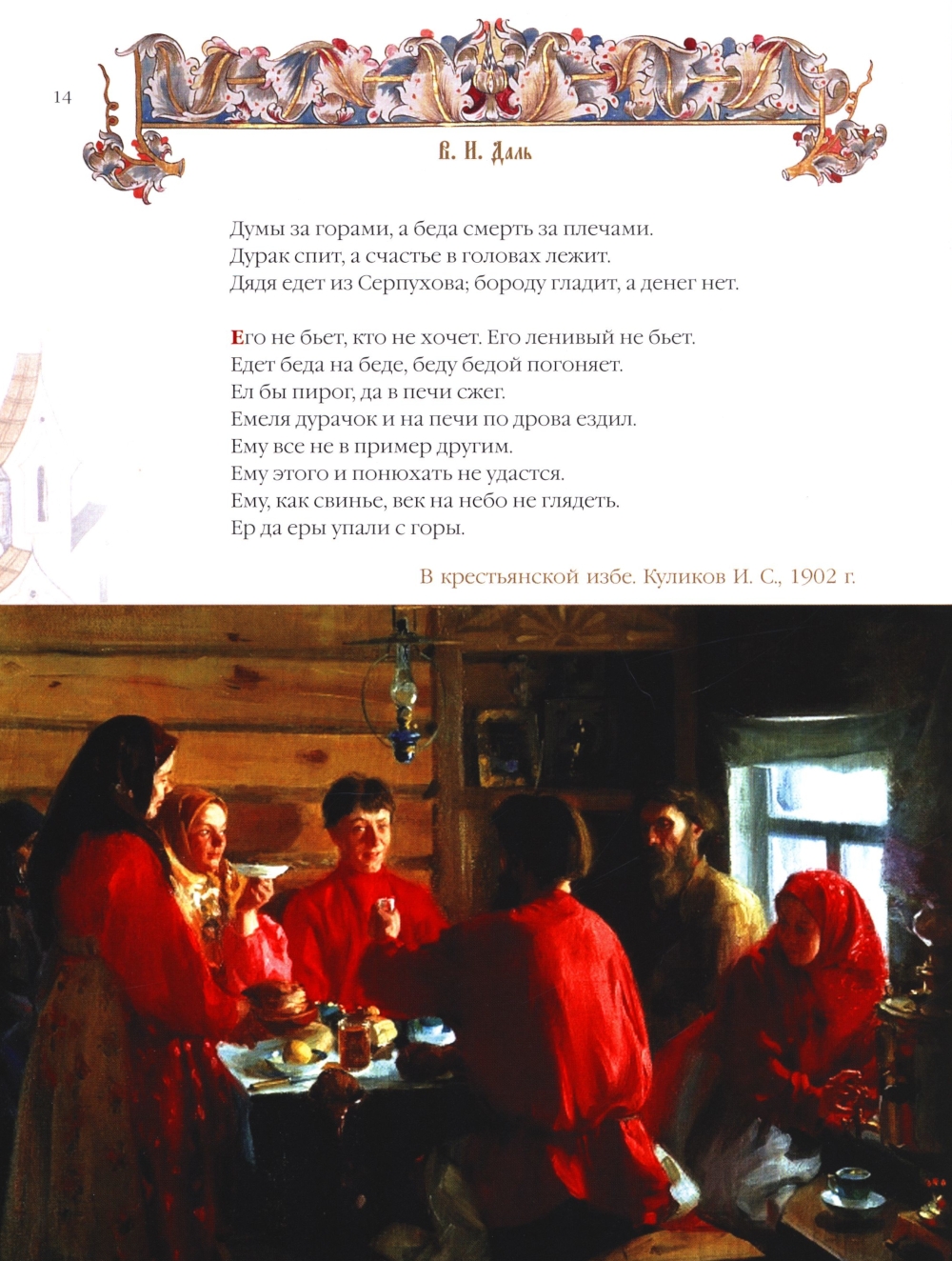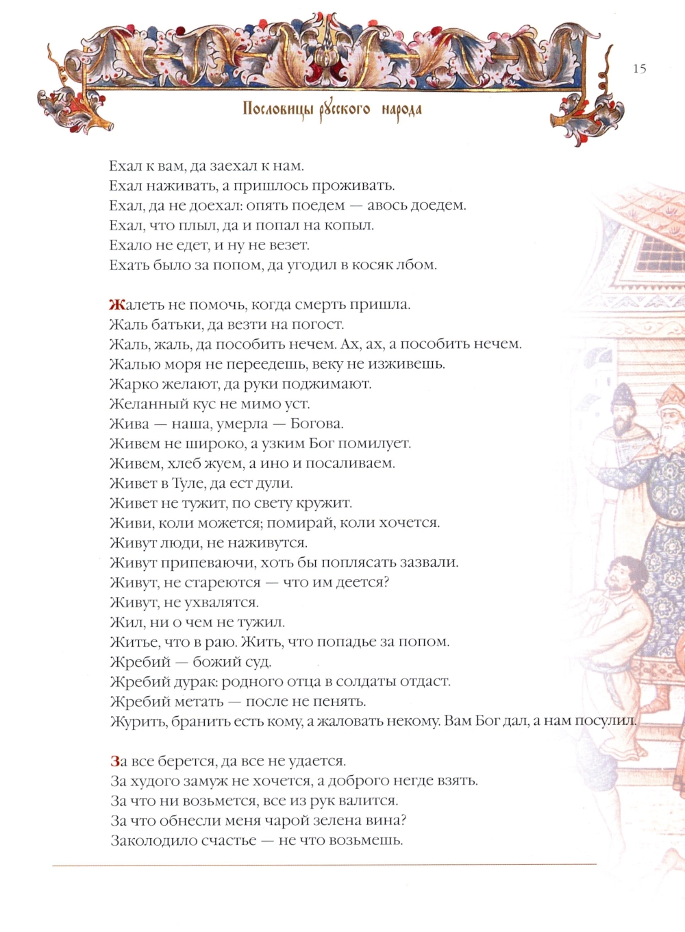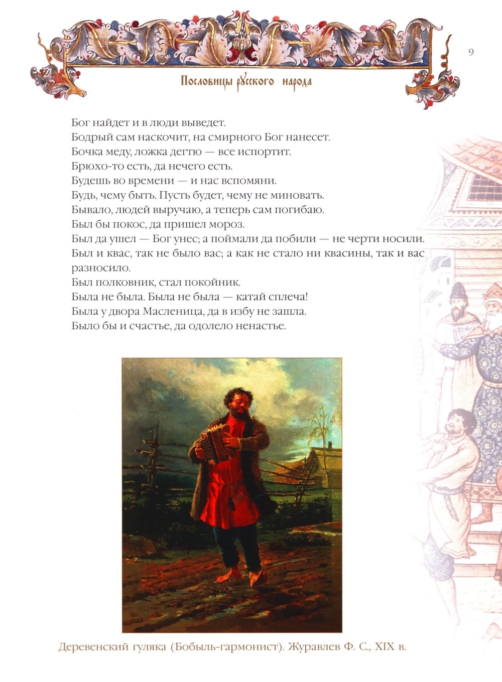 Русские народные пословицы уникальны, они позволяют максимально точно и кратко, метко и выразительно, образно и поэтично описать разнообразные жизненные явления. Многие поколения наших предков передавали их из уст в уста сотни лет и собрали бесценную копилку народной мудрости. В книге представлены избранные пословицы и притчи, собранные самыми известными исследователями русского фольклора. «Пословицы русского народа» В. И. Даля, «Сказания русского народа» И. П. Сахарова, «Русские народные пословицы» И. М. Снегирева, «Жизнь русского народа в его пословицах и поговорках» И. И. Иллюстрова - эти классические труды знатоков русского языка не потеряли актуальности и в наши дни. Издание иллюстрировано произведениями классической отечественной живописи.,