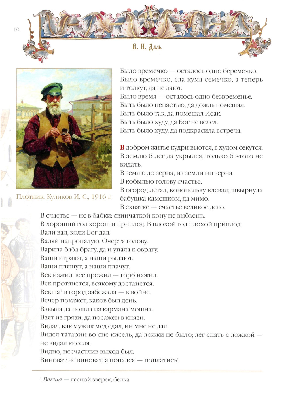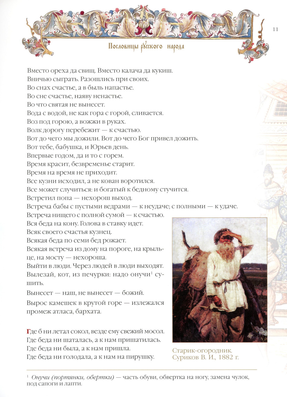 Русские народные пословицы уникальны, они позволяют максимально точно и кратко, метко и выразительно, образно и поэтично описать разнообразные жизненные явления. Многие поколения наших предков передавали их из уст в уста сотни лет и собрали бесценную копилку народной мудрости. В книге представлены избранные пословицы и притчи, собранные самыми известными исследователями русского фольклора. «Пословицы русского народа» В.И. Даля, «Сказания русского народа» И.П. Сахарова, «Русские народные пословицы» И.М. Снегирева, «Жизнь русского народа в его пословицах и поговорках» И.И. Иллюстрова - эти классические труды знатоков русского языка не потеряли актуальности и в наши дни. Издание иллюстрировано произведениями классической отечественной живописи.