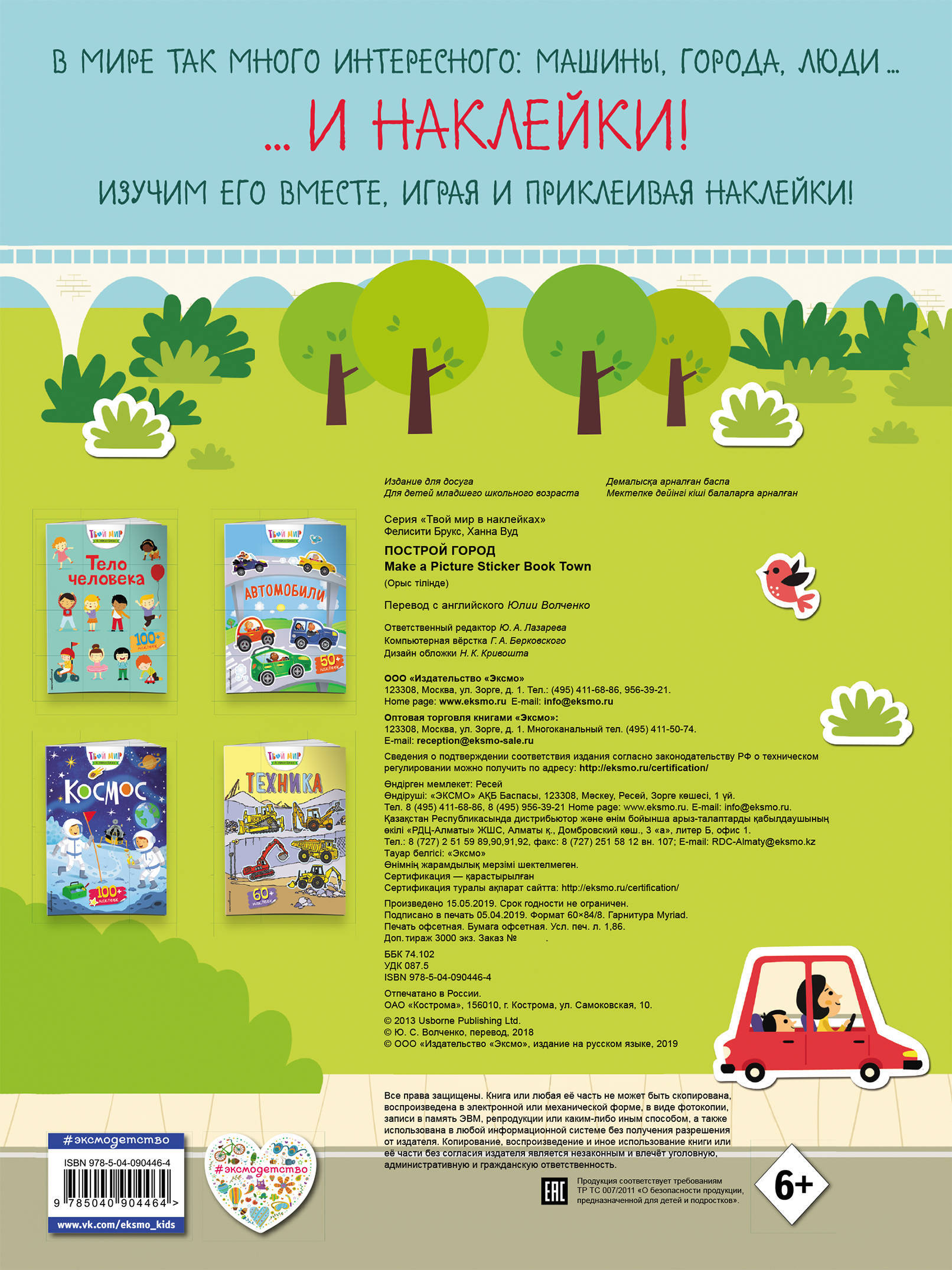 Книга с наклейками "Построй город!" - это два любимых занятия под одной обложкой. Во-первых, это всеми любимые наклейки, красочные, яркие, и их так много! А во-вторых, это акт творения - создать свой город, свой мир, свою вселенную мечтает каждый малыш, и наша книга дает ему возможность потренироваться на городе. 100 наклеек помогут не только создать город, но и оживить его, населить людьми, заполнить автомобилями, велосипедистами и даже туристами!| Издательство | ООО "Издательство "Эксмо" |