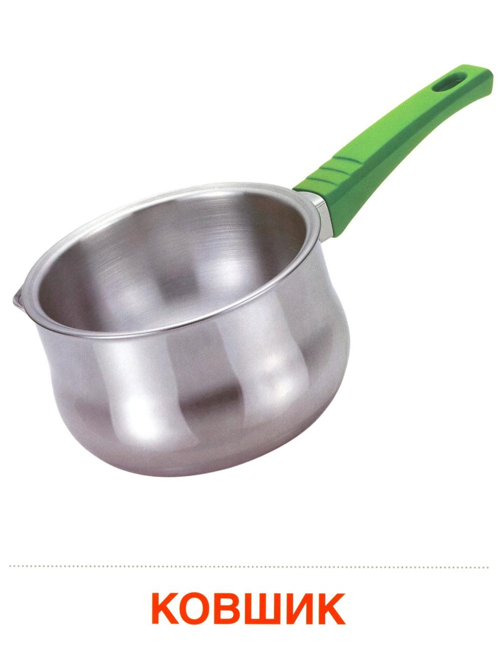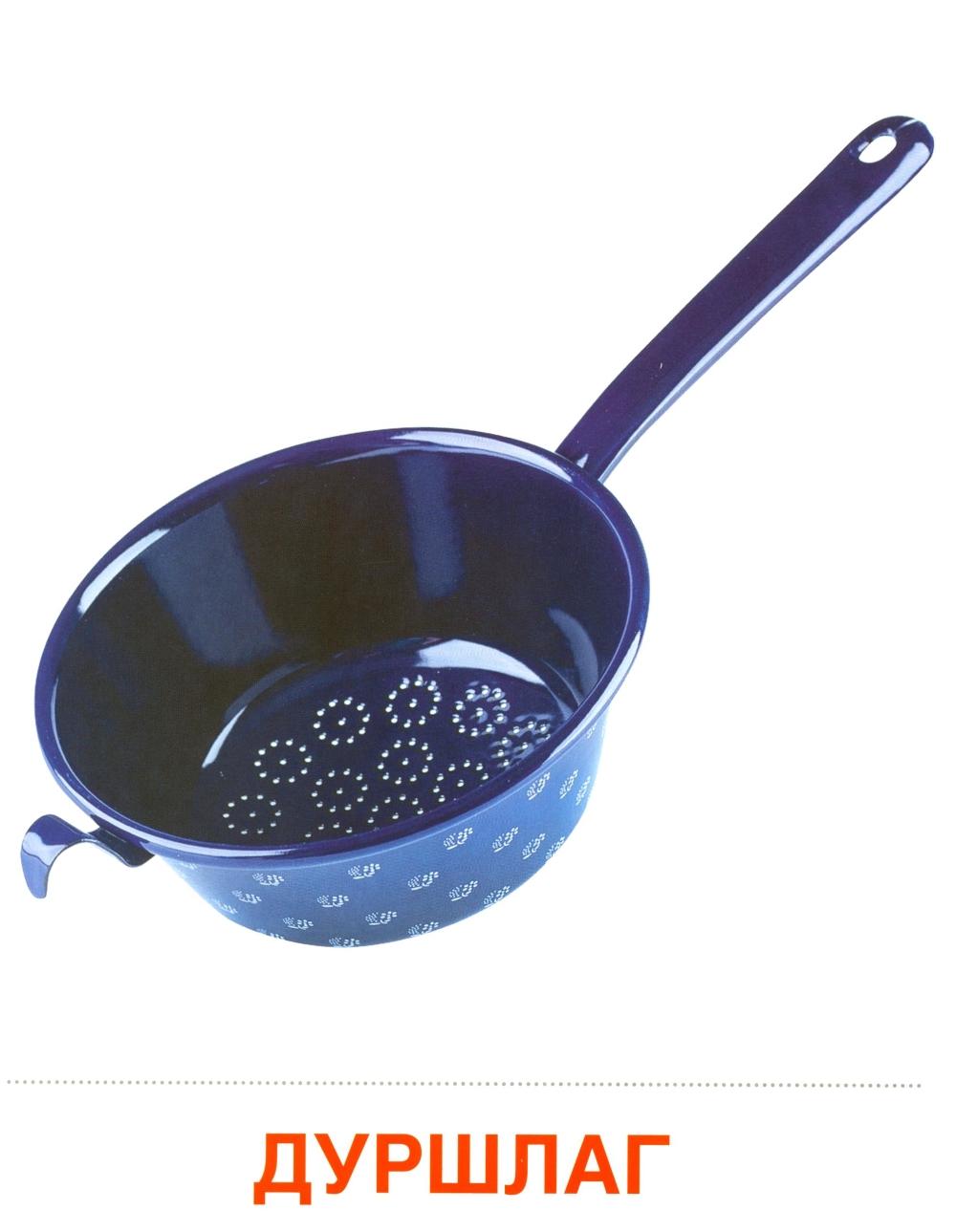 Посуда кухонная. Учебное издание (16 демонстрационных картинок с текстом)