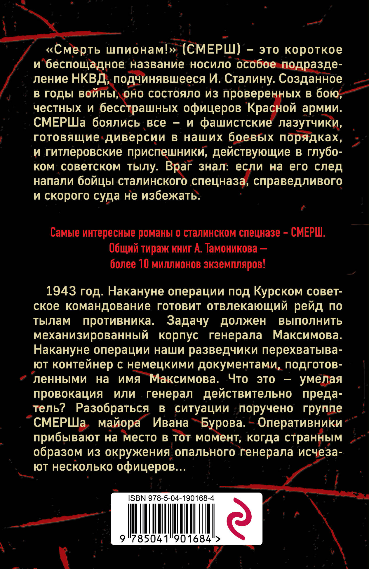 1943 год. Накануне операции под Курском советское командование готовит отвлекающий рейд по тылам противника. Задачу должен выполнить механизированный корпус генерала Максимова. Накануне операции наши разведчики перехватывают контейнер с немецкими документами, подготовленными на имя Максимова. Что это - умелая провокация или генерал действительно предатель? Разобраться в ситуации поручено группе СМЕРШа майора Ивана Бурова. Оперативники прибывают на место в тот момент, когда странным образом из окружения опального генерала исчезают несколько офицеров…