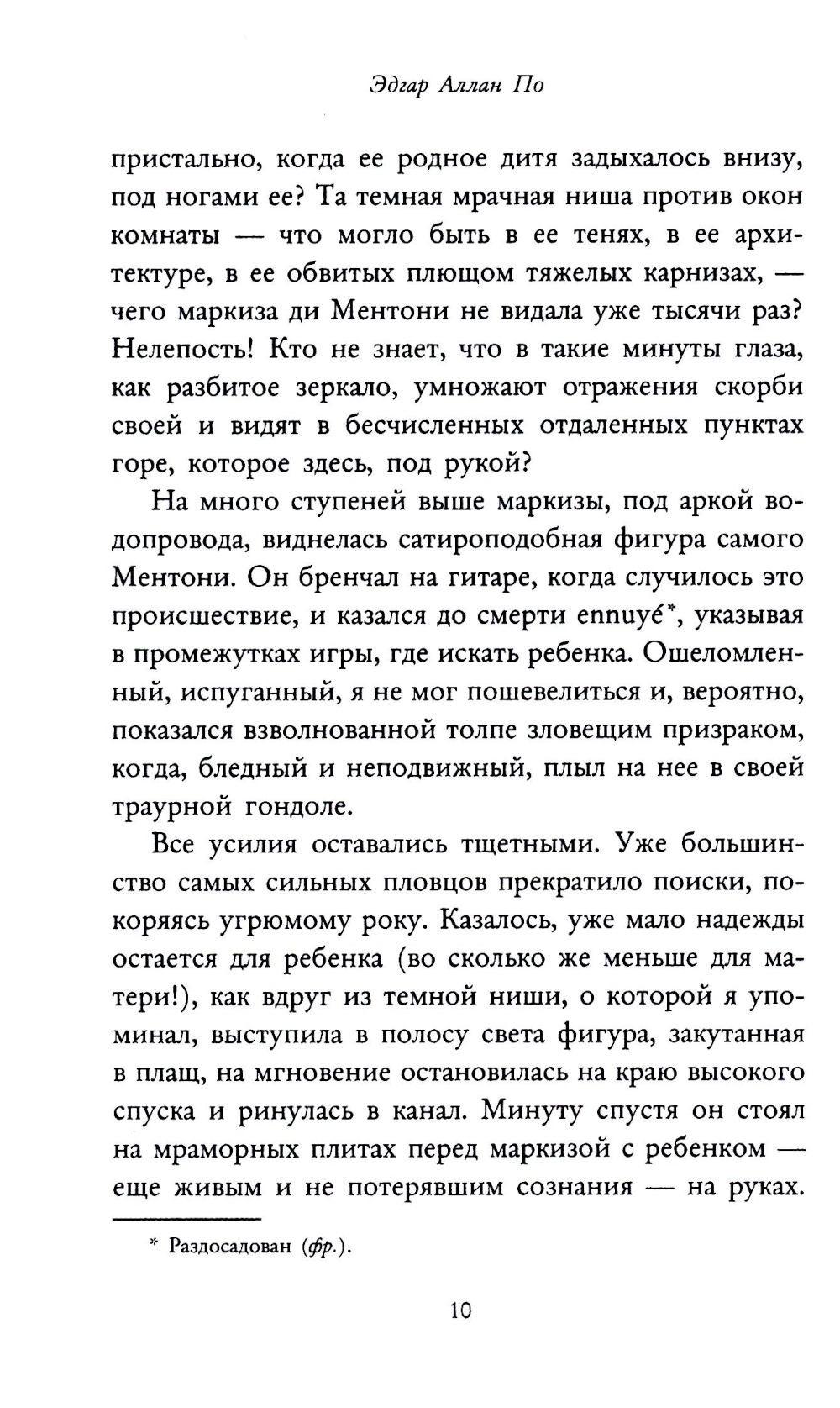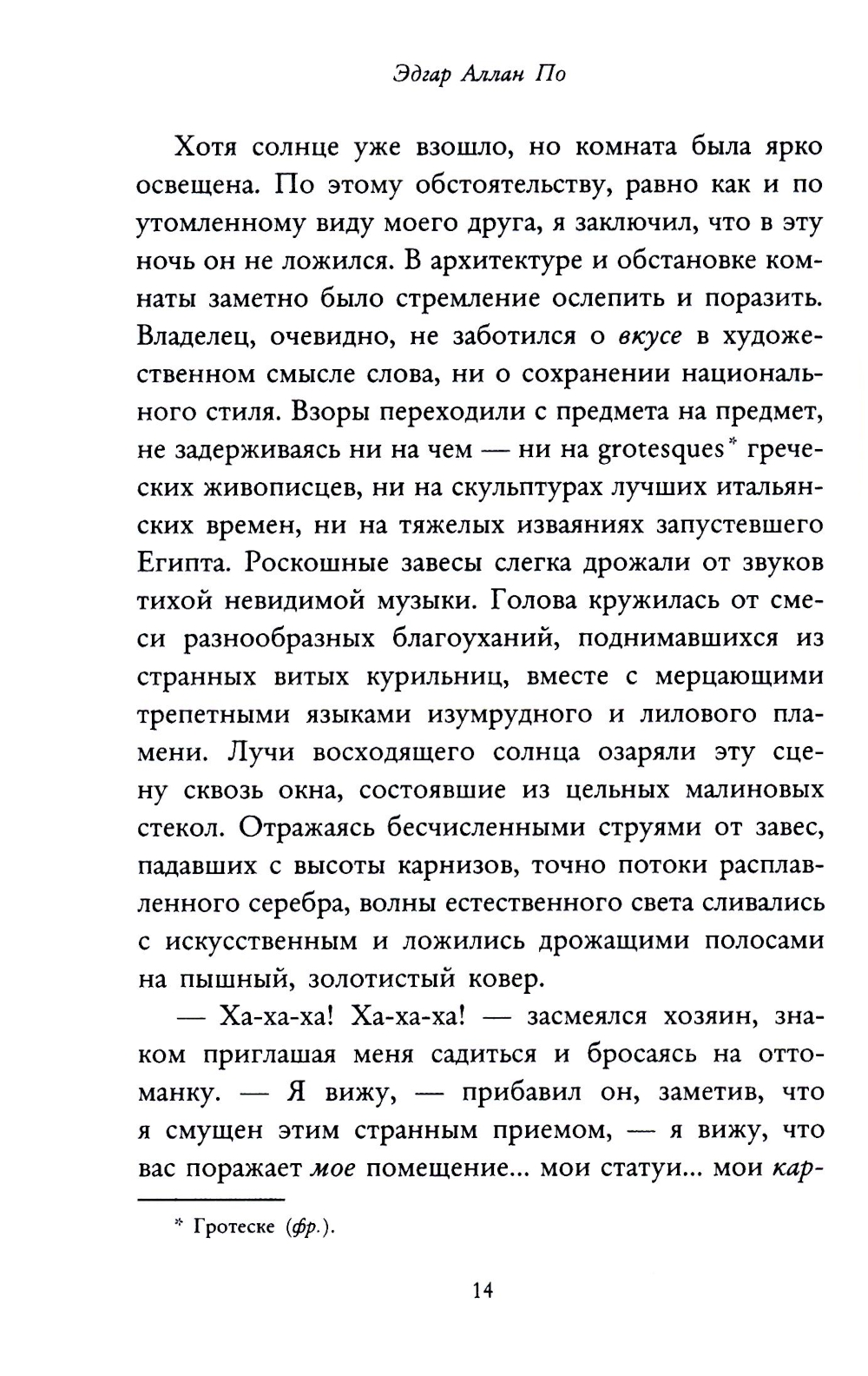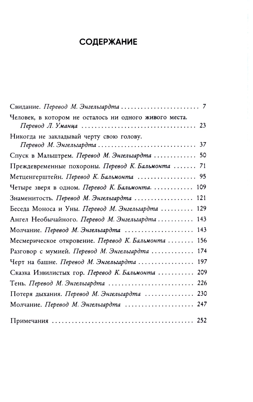 Эдгар Аллан По - знаменитый американский писатель, один из первооткрывателей и ярчайших звезд жанров психологической прозы и классического детектива. Наибольшую известность приобрели так называемые «страшные рассказы» автора, и, если вы ассоциируете его имя главным образом с мистикой и ужасами, - этот сборник вас удивит. В нем собраны блестящие сатирические и экспериментальные новеллы, в которых жуткое переплетается с гомерически смешным, а метафоры обретают экзистенциальную глубину. Приключения человека без дыхания и признаков жизни, удивительная беседа с семисотлетней мумией (человеком еще довольно молодым) и воспоминания о произошедшей смерти ради радости в настоящем. Эти и другие невероятные сюжеты - странные, забавные, пугающие и заставляющие задуматься.| Издательство | Metamorphoses |