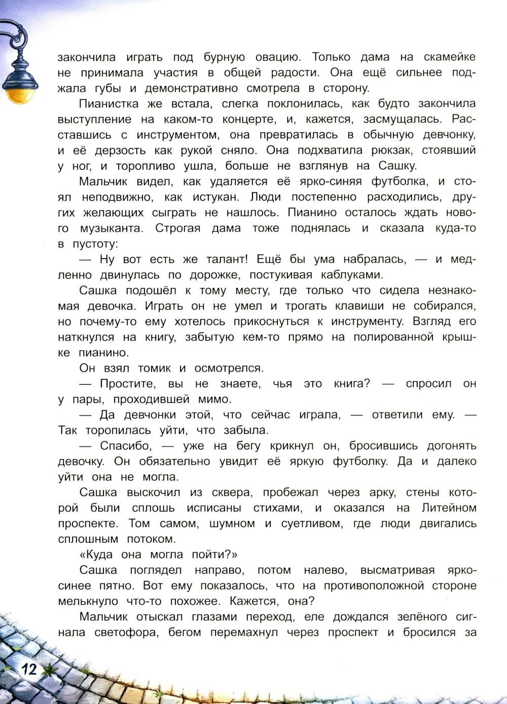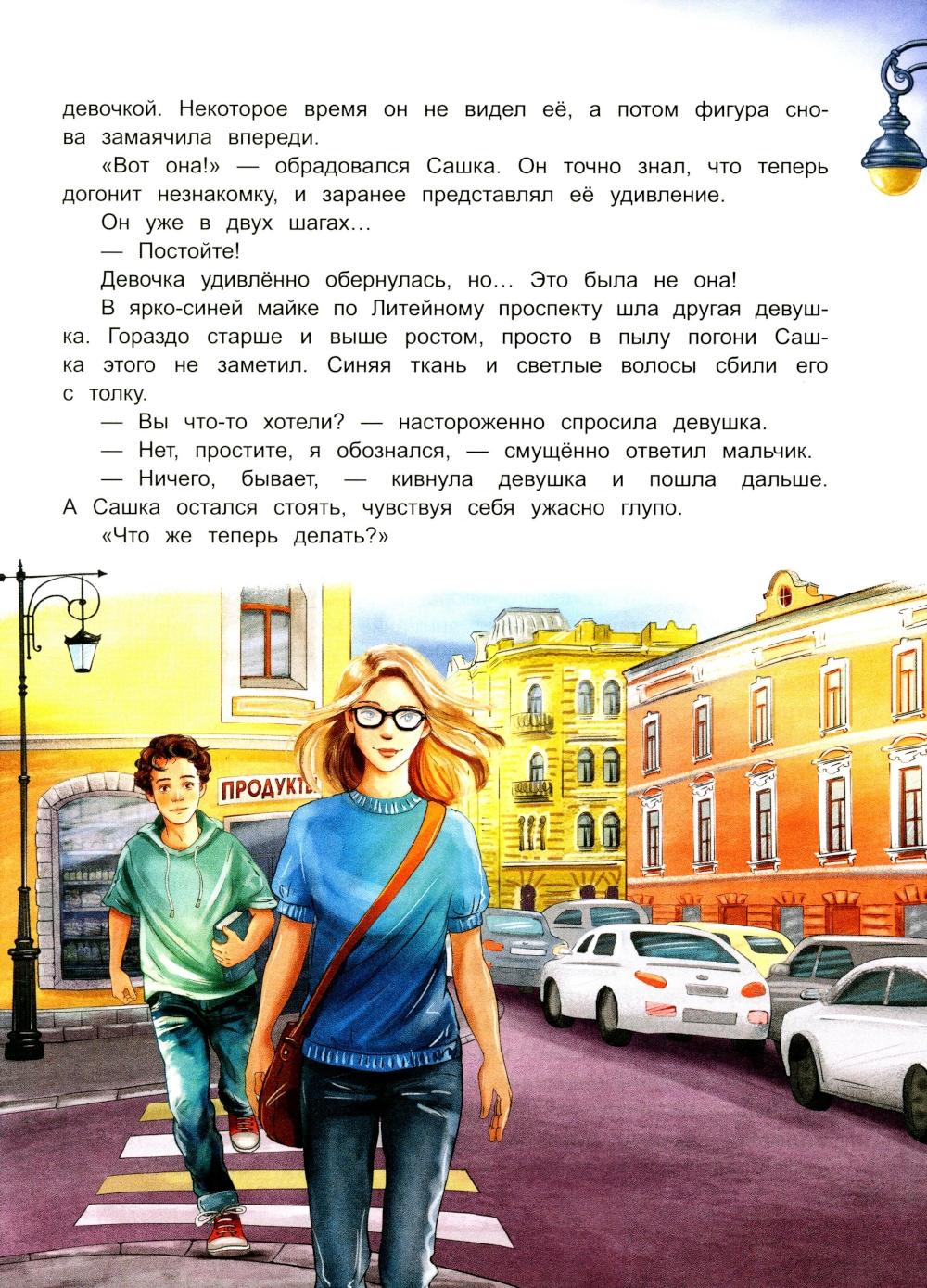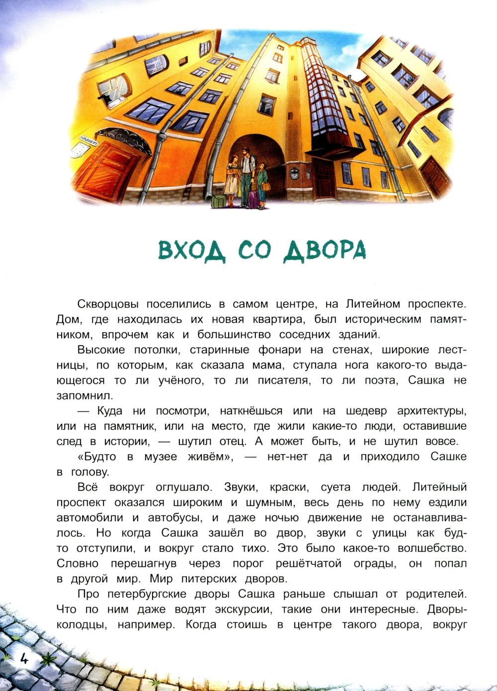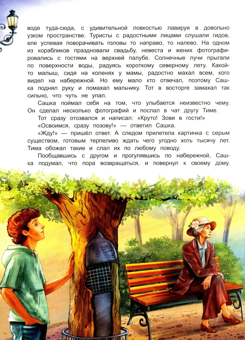 Сашка вместе с родителями переезжает в Санкт-Петербург, оставив друзей и привычную жизнь. Непросто начинать всё заново в незнакомом городе. Сашка отправляется исследовать окрестности нового дома, и тут начинаются приключения! Он откроет для себя дворы-колодцы, послушает музыку в необыкновенном саду, случайно обнаружит интересный и трогательный памятник, встретит настоящего писателя и узнает историю потерянной рукописи. А ещё сам найдёт кем-то забытую книгу - только вот, чтобы вернуть её хозяйке, придётся очень постараться...| Издательство | Антология |