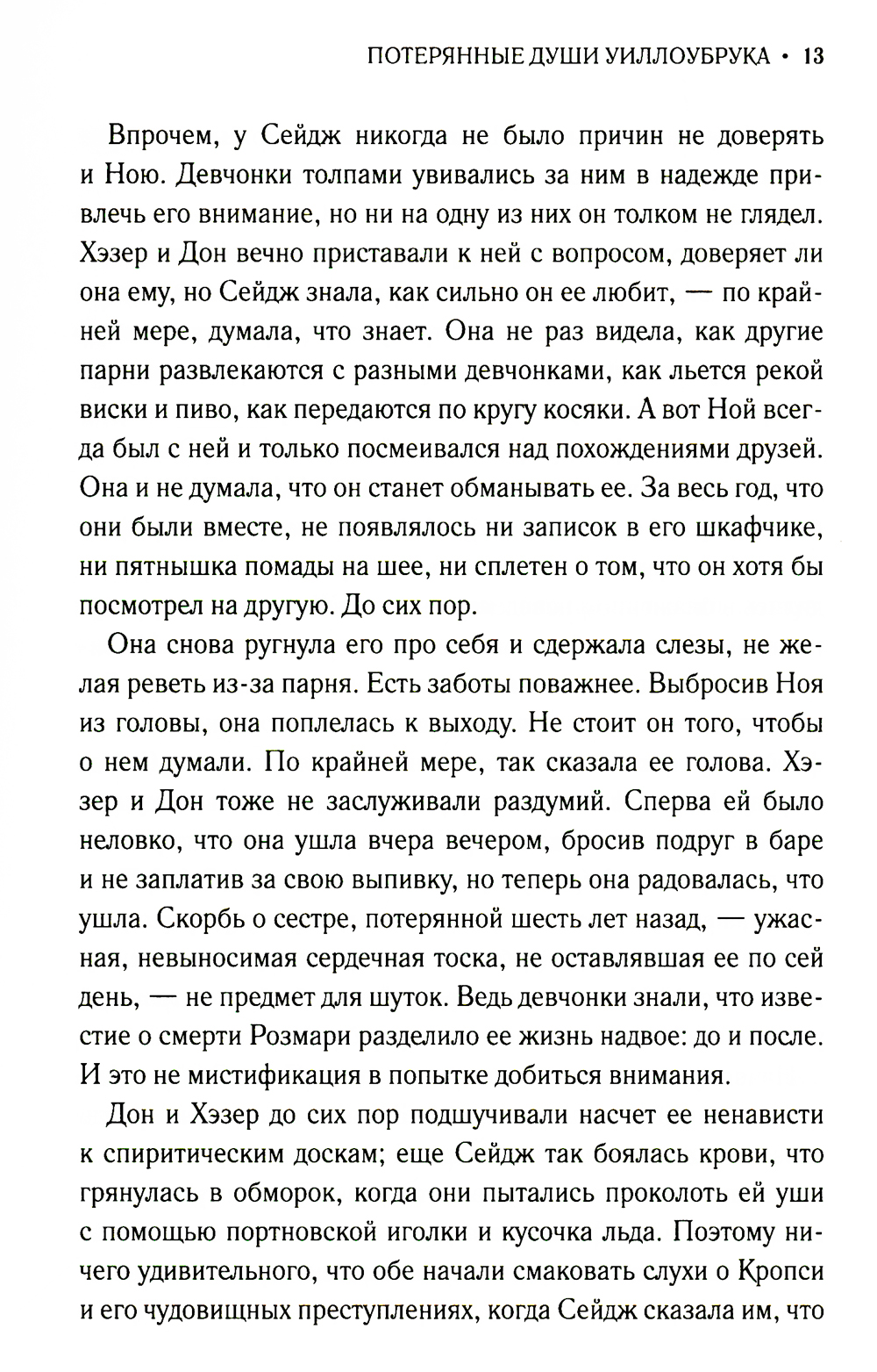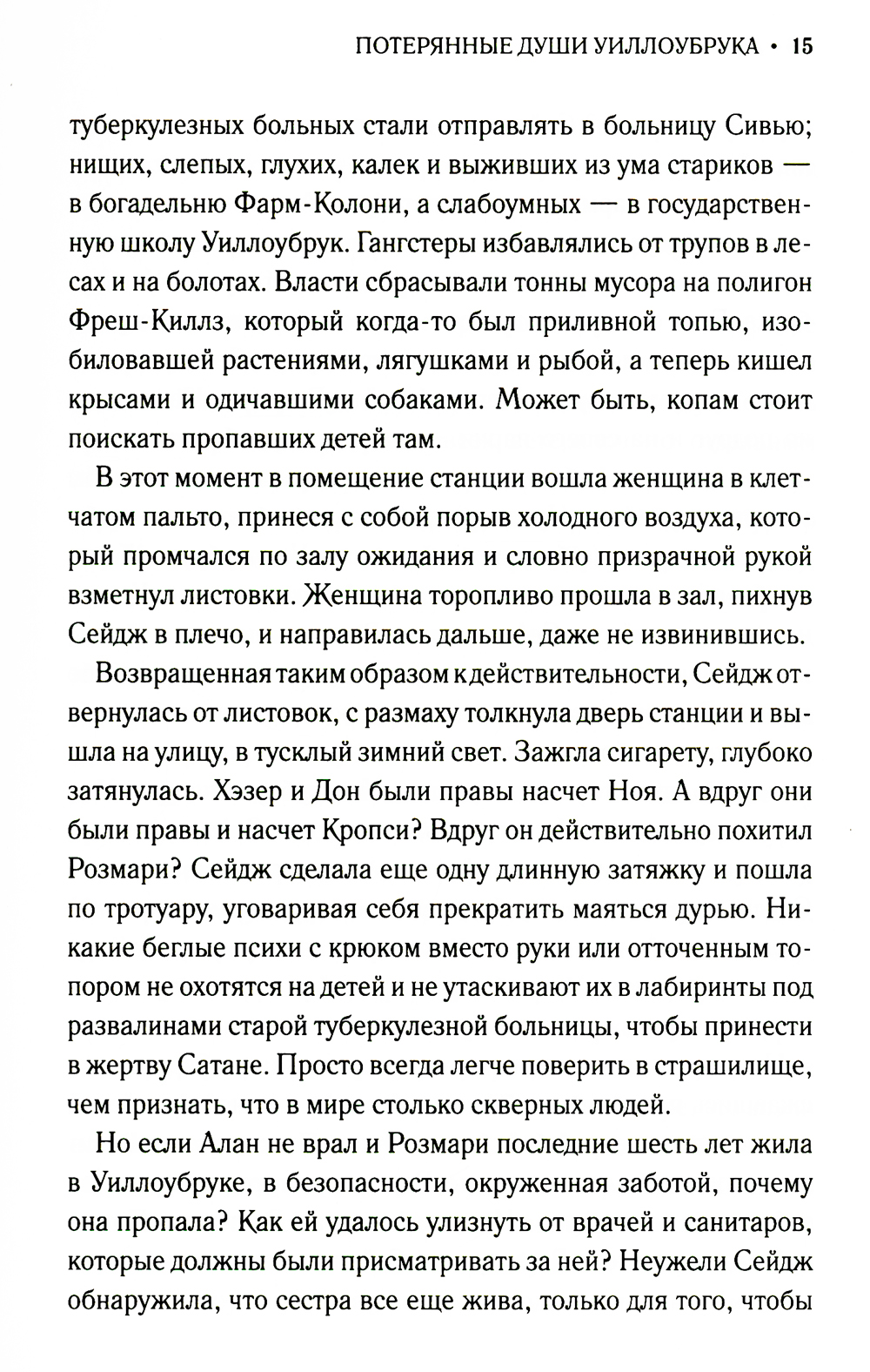 Сейдж Уинтерз всегда знала, что ее сестра-близняшка Розмари немного не от мира сего: слишком остро воспринимает жизнь и нуждается в защите от враждебного мира. Розмари умерла от пневмонии шесть лет назад, и Сейдж, которой уже исполнилось шестнадцать, все еще по ней скучает. Девушка очень одинока: отец их бросил, мать погибла в автокатастрофе, а отчим Алан с радостью избавился бы от обузы в виде падчерицы. И тем страшнее становится для Сейдж открытие, что ее сестра вовсе не умерла, а была отправлена в Уиллоубрук, печально известное государственное учреждение для неполноценных детей, расположенное на Стейтен-Айленде. Ринувшаяся на поиски Розмари Сейдж и не подозревает, с какими ужасами ей предстоит столкнуться.| Издательство | Аркадия |