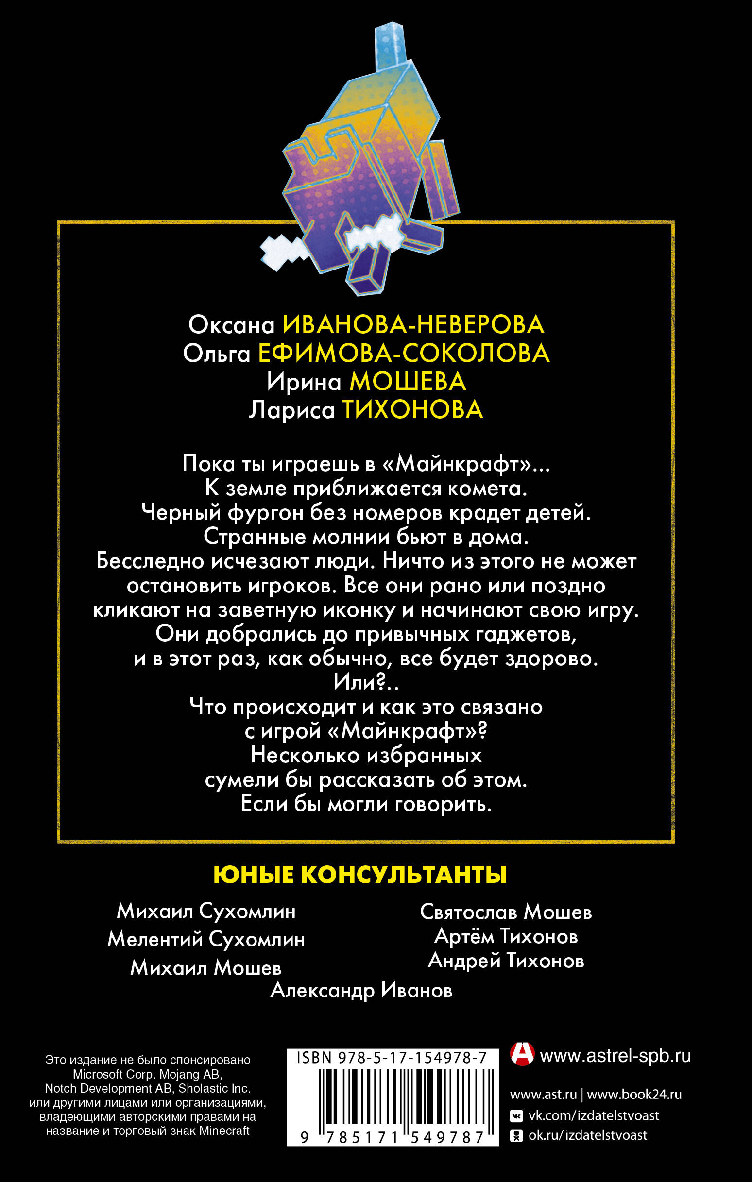 Пока ты играешь в "Майнкрафт"… К земле приближается комета. Черный фургон без номеров крадет детей. Странные молнии бьют в дома. Бесследно исчезают люди. Ничто из этого не может остановить игроков. Все они рано или поздно кликают на заветную иконку и начинают свою игру. Они добрались до привычных гаджетов, и в этот раз, как обычно, все будет здорово. Или?.. Что происходит и как это связано с игрой "Майнкрафт"? Несколько избранных сумели бы рассказать об этом. Если бы могли говорить.| Издательство | ИЗДАТЕЛЬСТВО "АСТ" |