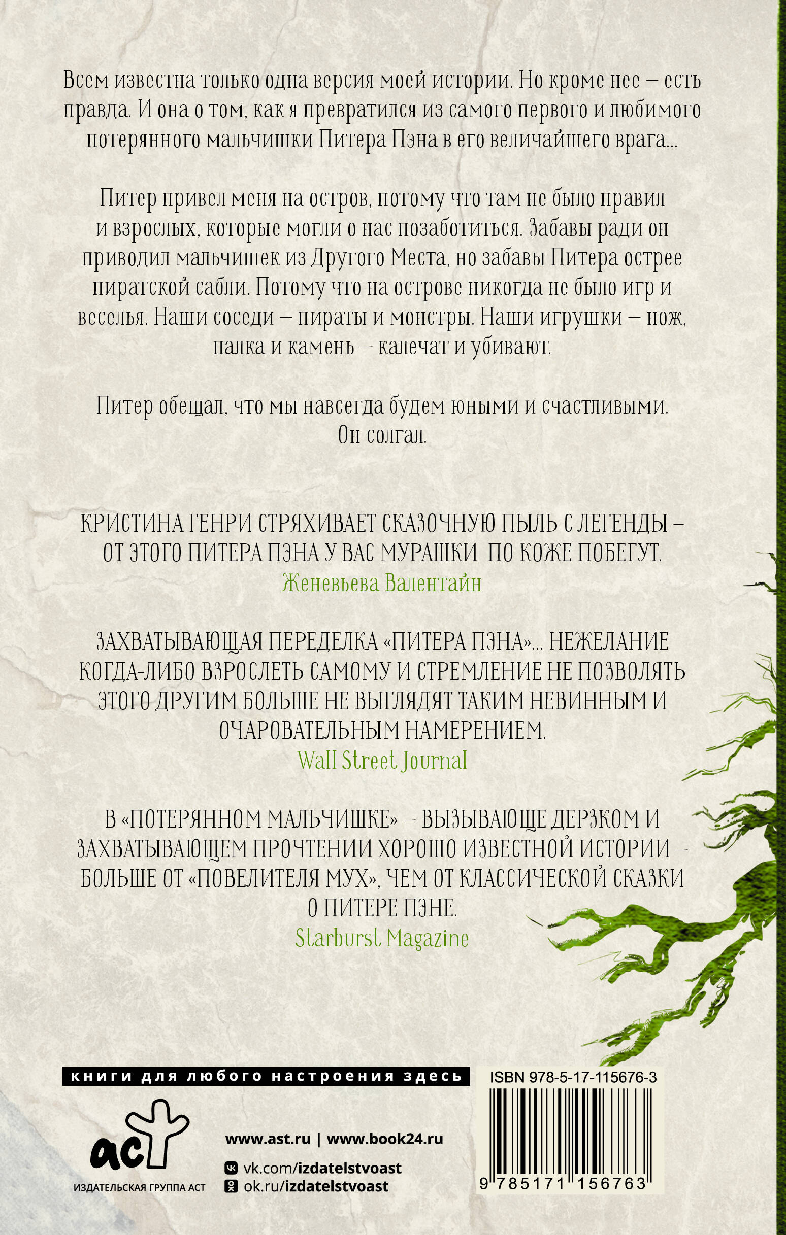 Всем известна только одна версия моей истории. Но кроме нее - есть правда. И она о том, как я превратился из самого первого и любимого потерянного мальчишки Питера Пэна в его величайшего врага... Питер привел меня на остров, потому что там не было правил и взрослых, которые могли о нас позаботиться. Забавы ради он приводил мальчишек из Другого Места, но забавы Питера острее пиратской сабли. Потому что на острове никогда не было игр и веселья. Наши соседи - пираты и монстры. Наши игрушки - нож, палка и камень - калечат и убивают. Питер обещал, что мы навсегда будем юными и счастливыми. Он солгал.| Издательство | ИЗДАТЕЛЬСТВО "АСТ" |