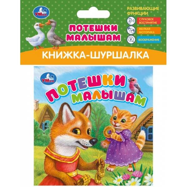 Книжка-шуршалка "Потешки малышам" ТМ "УМка" - отличный подарок для самых маленьких: - шуршащие страницы - красочное оформление - задорные потешки - удобный небольшой размер Мягкая книжка-шуршалка с забавными детскими потешками привлечёт внимание малыша, порадует его яркими картинками и будет способствовать развитию слухового и тактильного восприятия. Получение информации в такой игровой форме позволит быстрее и эффективнее усвоить новые знания, а также потренировать мелкую моторику. Благодаря компактному размеру книжку удобно брать повсюду с собой. Игра с книжкой-шуршалкой ТМ "УМка" также развивает: - воображение и фантазию - внимание - образное мышление Объём: 8 стр. Формат: 110 х 110 мм. Состав: тканный материал. Рекомендованный возраст: 0+.| Издательство | С-Маркет ООО |