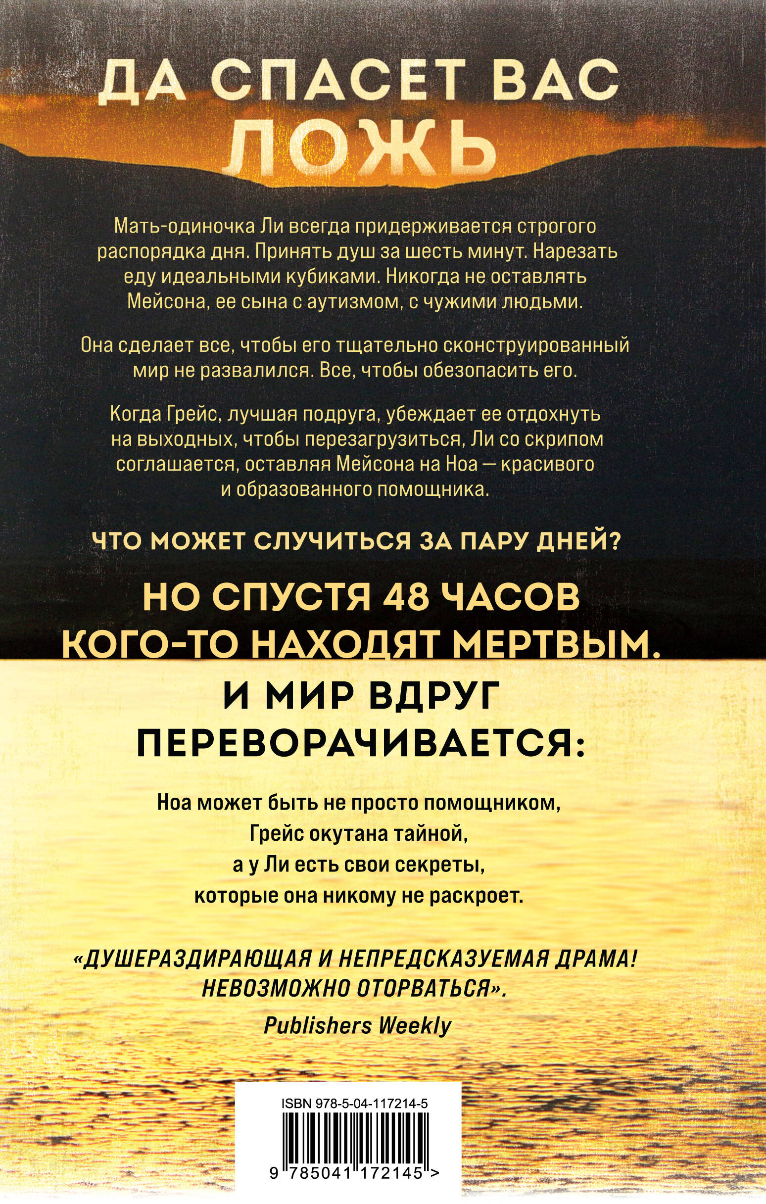 Мать-одиночка Ли всегда придерживается строгого распорядка дня. Принять душ за шесть минут. Нарезать еду идеальными кубиками. Никогда не оставлять Мейсона, ее сына с аутизмом, с чужими людьми. Она сделает все, чтобы его тщательно сконструированный мир не развалился. Все, чтобы обезопасить его. Когда Грейс, лучшая подруга, убеждает ее отдохнуть на выходных, чтобы перезагрузиться, Ли со скрипом соглашается, оставляя Мейсона на Ноа - красивого и образованного помощника. Что может случиться за пару дней? Но спустя 48 часов кого-то находят мертвым. И мир вдруг переворачивается: Ноа может быть не просто помощником, Грейс окутана тайной, а у Ли есть свои секреты, которые она никому не раскроет. История о том, какой бывает материнская любовь и на какие жертвы иногда приходится идти. Психологическая драма и саспенс - роман «на грани» от Рии Фрай, автора бестселлера «Не ее дочь» .| Издательство | Эксмо |