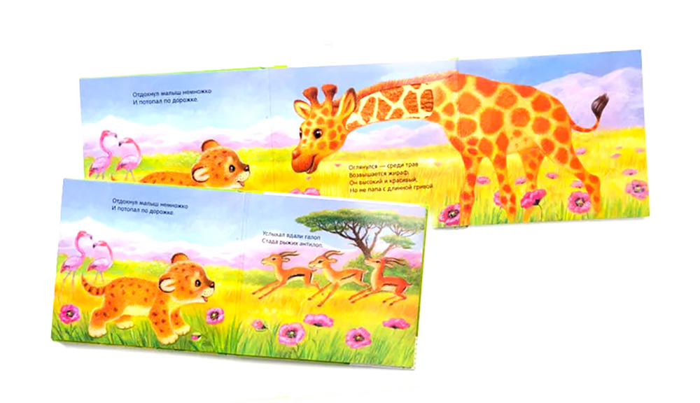 Книжка-игрушка «Львенок» из серии «Потрогай и погладь» с раскладывающимися панорамными страницами расскажет малышам о том, как малютка львенок потерял своего папу и отправился на его поиски по саванне. По пути малыш встретит животных Африки и ближе с ними познакомится. Крупные тактильные вставки на обложке и страницах книги позволяют погладить обаятельных героев и почувствовать, какие они мягкие и приятные на ощупь! Классические иллюстрации Ксении Павловой, доступные стихи, простые, но интересные сюжеты - все в этой книге создано для детей от самого рождения.| Издательство | Мозаика-Синтез |
