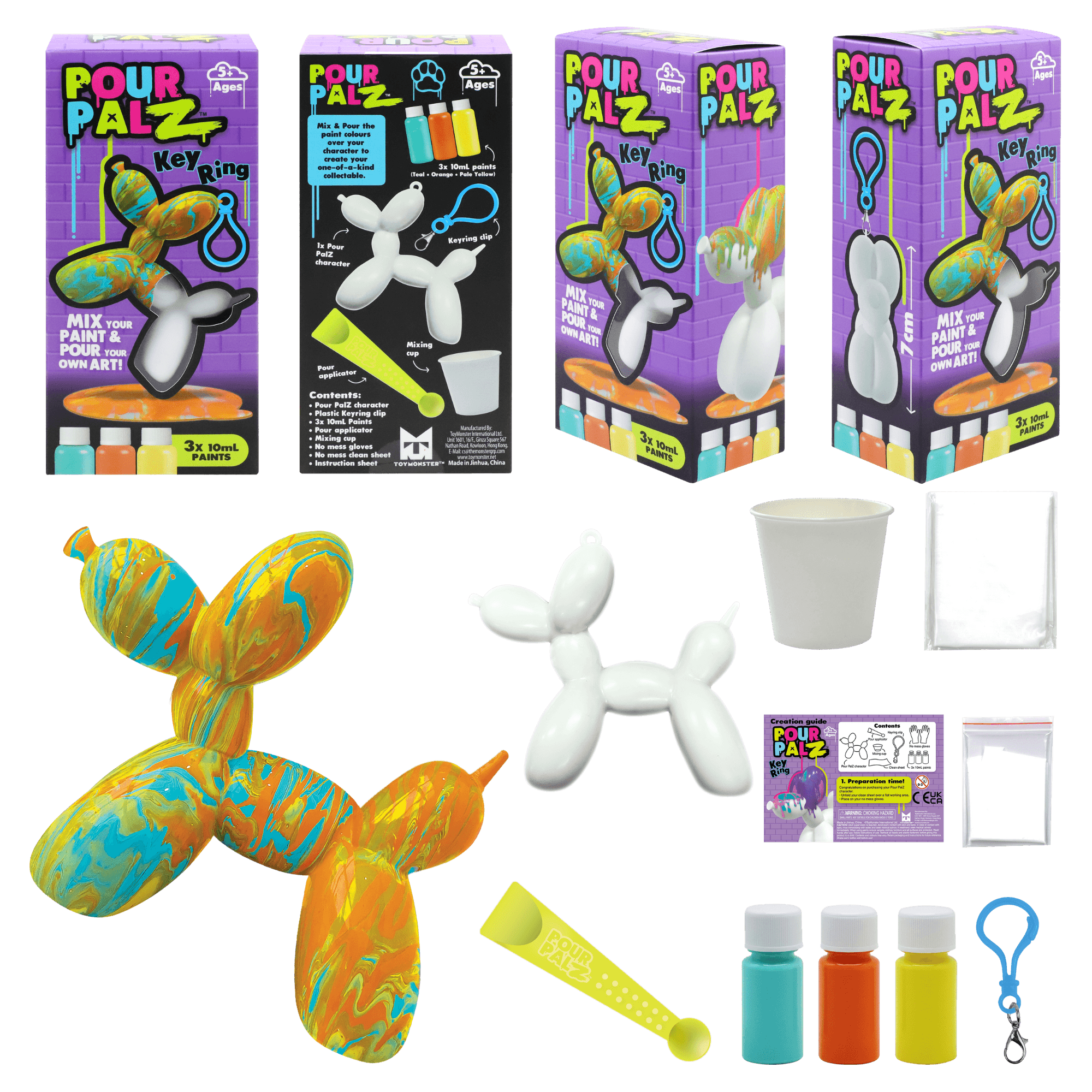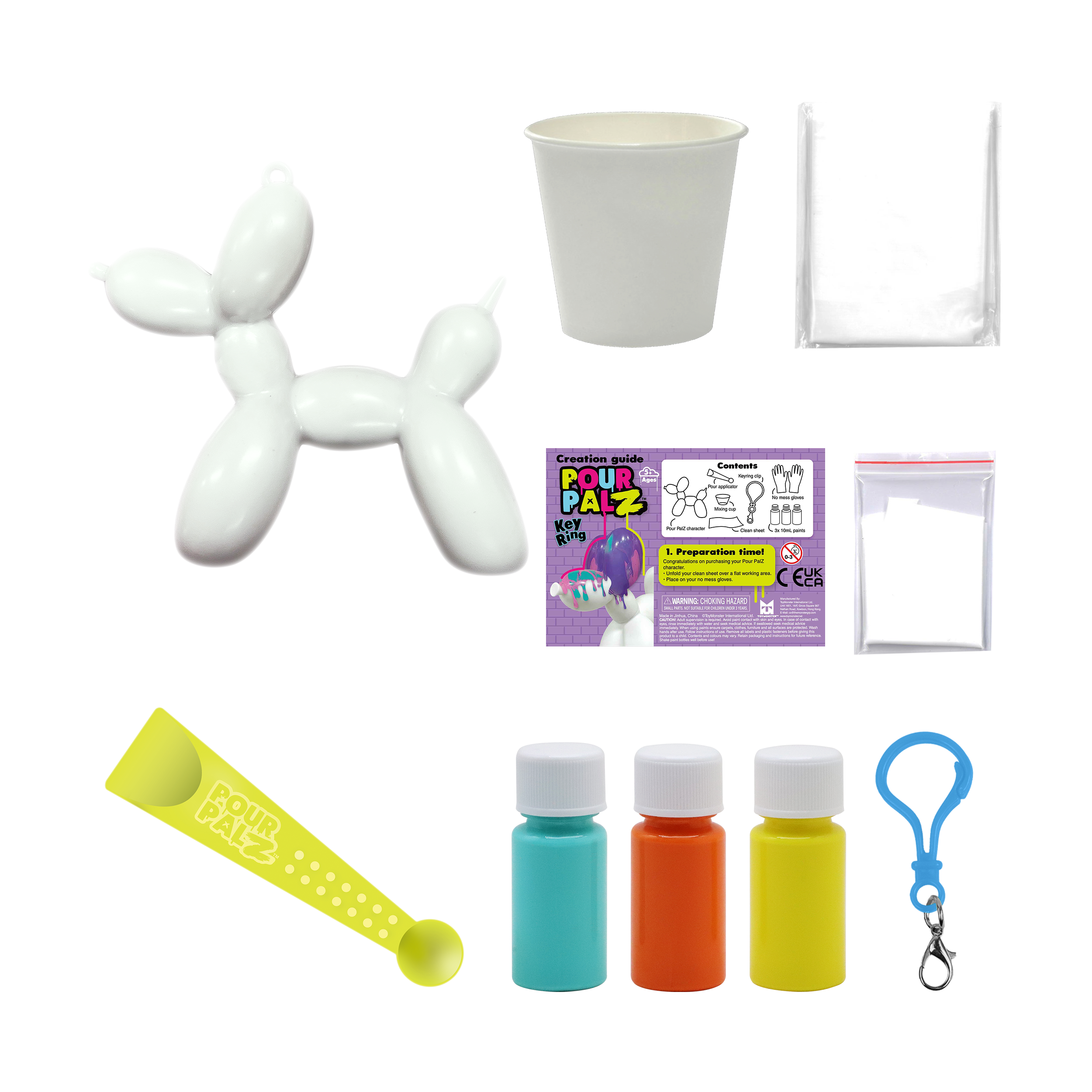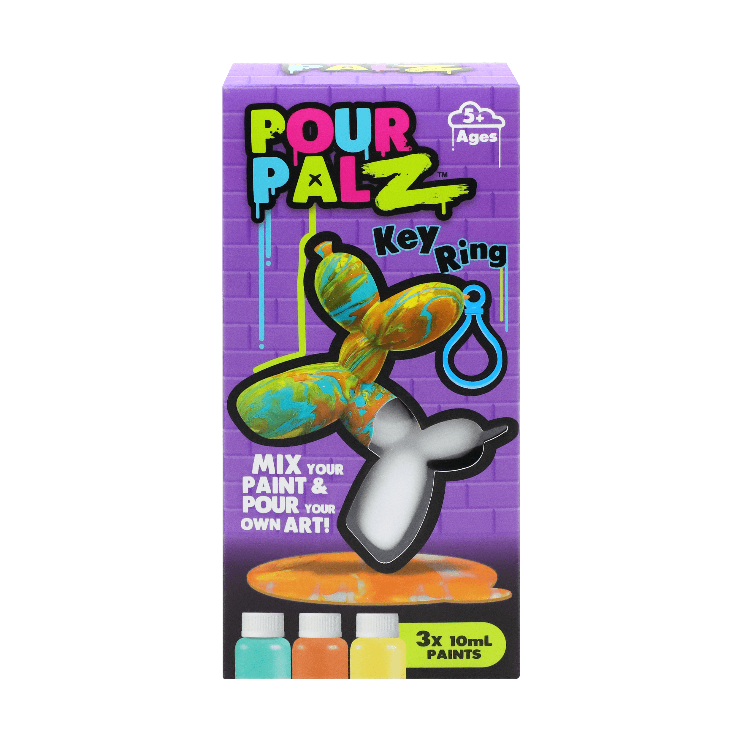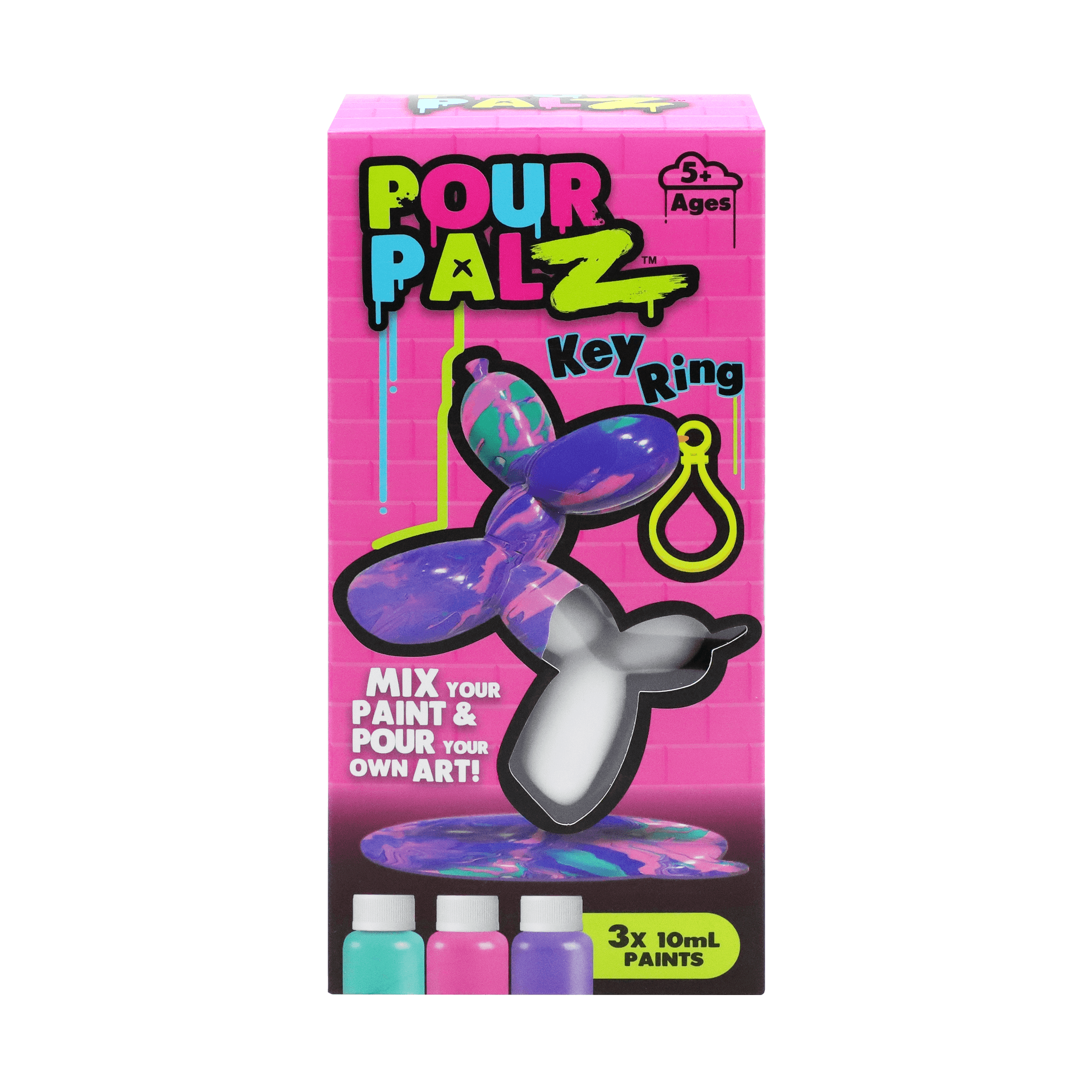 Представляем новый набор Pour Palz Paint «Щенок из воздушного шарика»! Приготовьтесь раскрыть свою креативность с этим веселым и простым набором для творчества своими руками! Смешивайте и наносите яркие краски на милую фигурку щенка из воздушного шарика, чтобы создать уникальный шедевр. Каждый раскрашенный щенок становится особенным, персонализированным сувениром, таким же уникальным, как и ваша фантазия. Соберите все 4 ярких цвета и дайте волю своему творчеству! Идеально подходит для художественного веселья, уникальных подарков или особого сувенира. В комплект входит пластиковый брелок, чтобы вы могли брать своего персонализированного щенка из воздушного шарика с собой куда угодно.