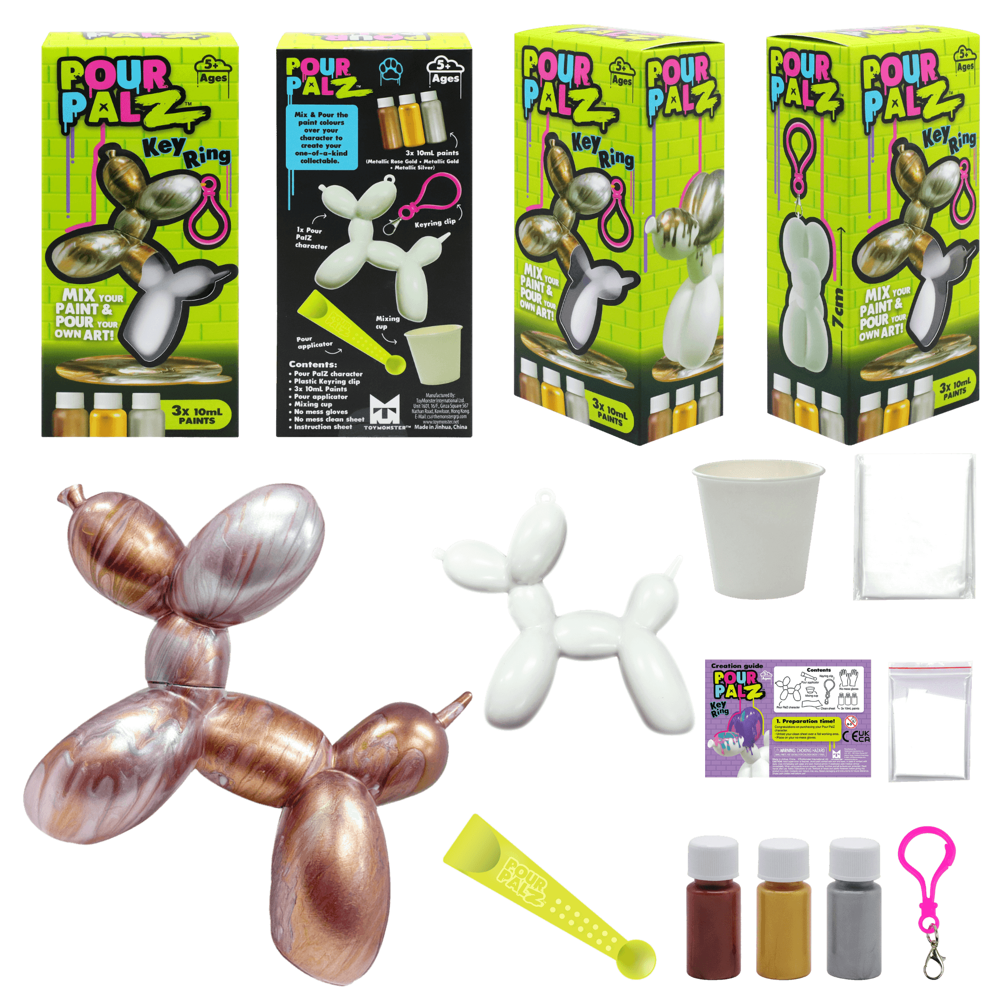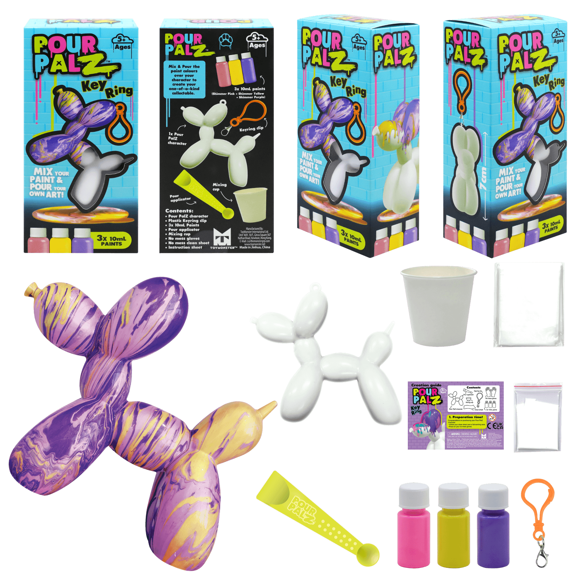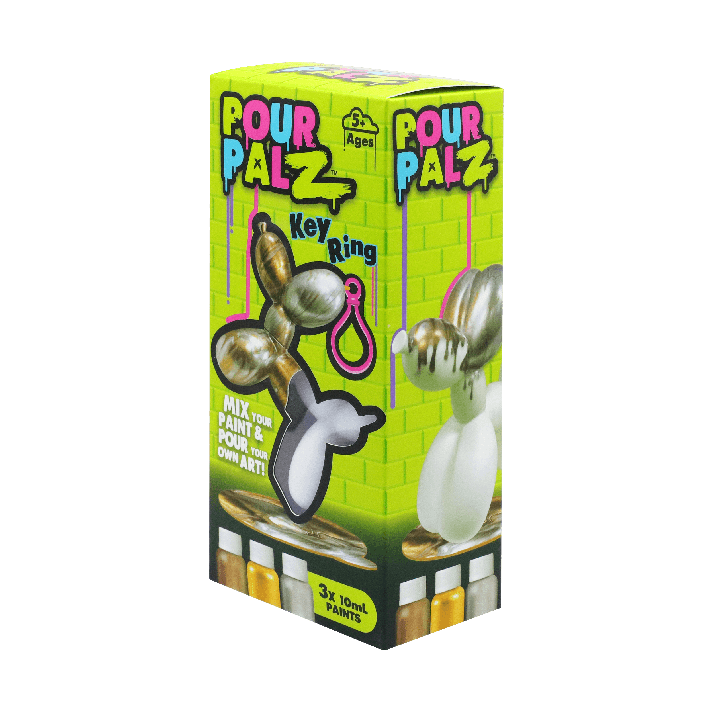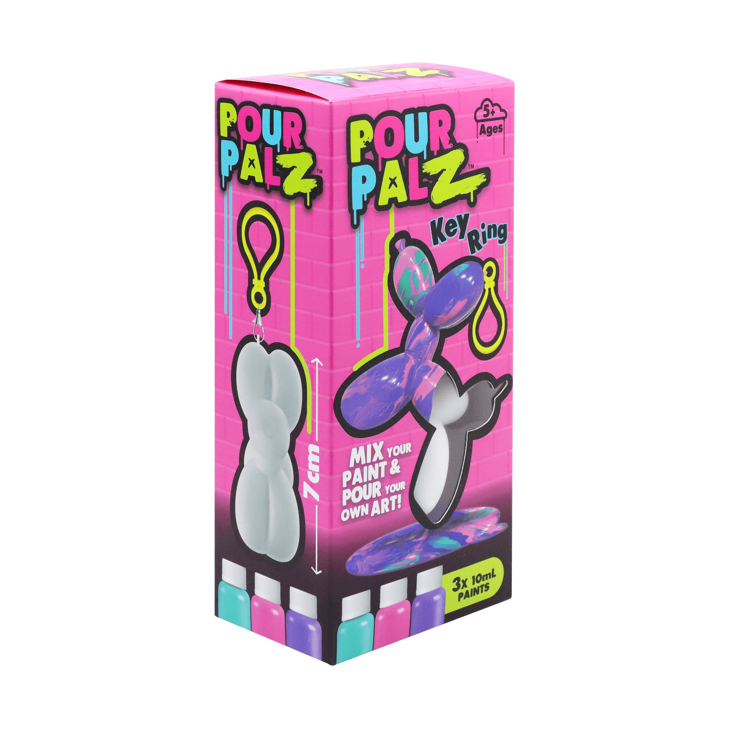 Представляем новый набор Pour Palz Paint «Щенок из воздушного шарика»! Приготовьтесь раскрыть свою креативность с этим веселым и простым набором для творчества своими руками! Смешивайте и наносите яркие краски на милую фигурку щенка из воздушного шарика, чтобы создать уникальный шедевр. Каждый раскрашенный щенок становится особенным, персонализированным сувениром, таким же уникальным, как и ваша фантазия. Соберите все 4 ярких цвета и дайте волю своему творчеству! Идеально подходит для художественного веселья, уникальных подарков или особого сувенира. В комплект входит пластиковый брелок, чтобы вы могли брать своего персонализированного щенка из воздушного шарика с собой куда угодно.