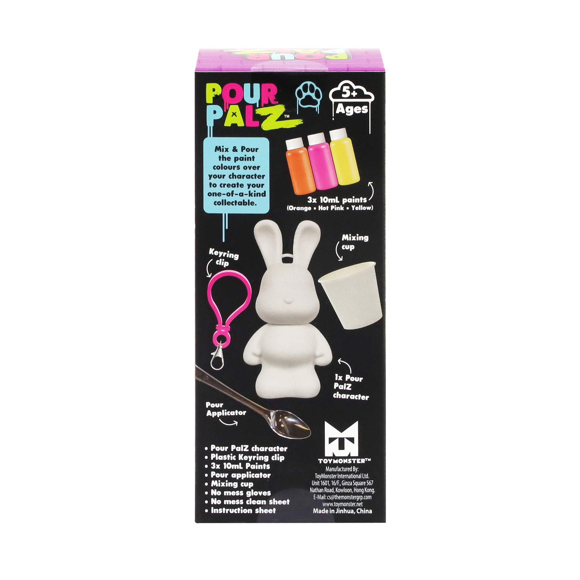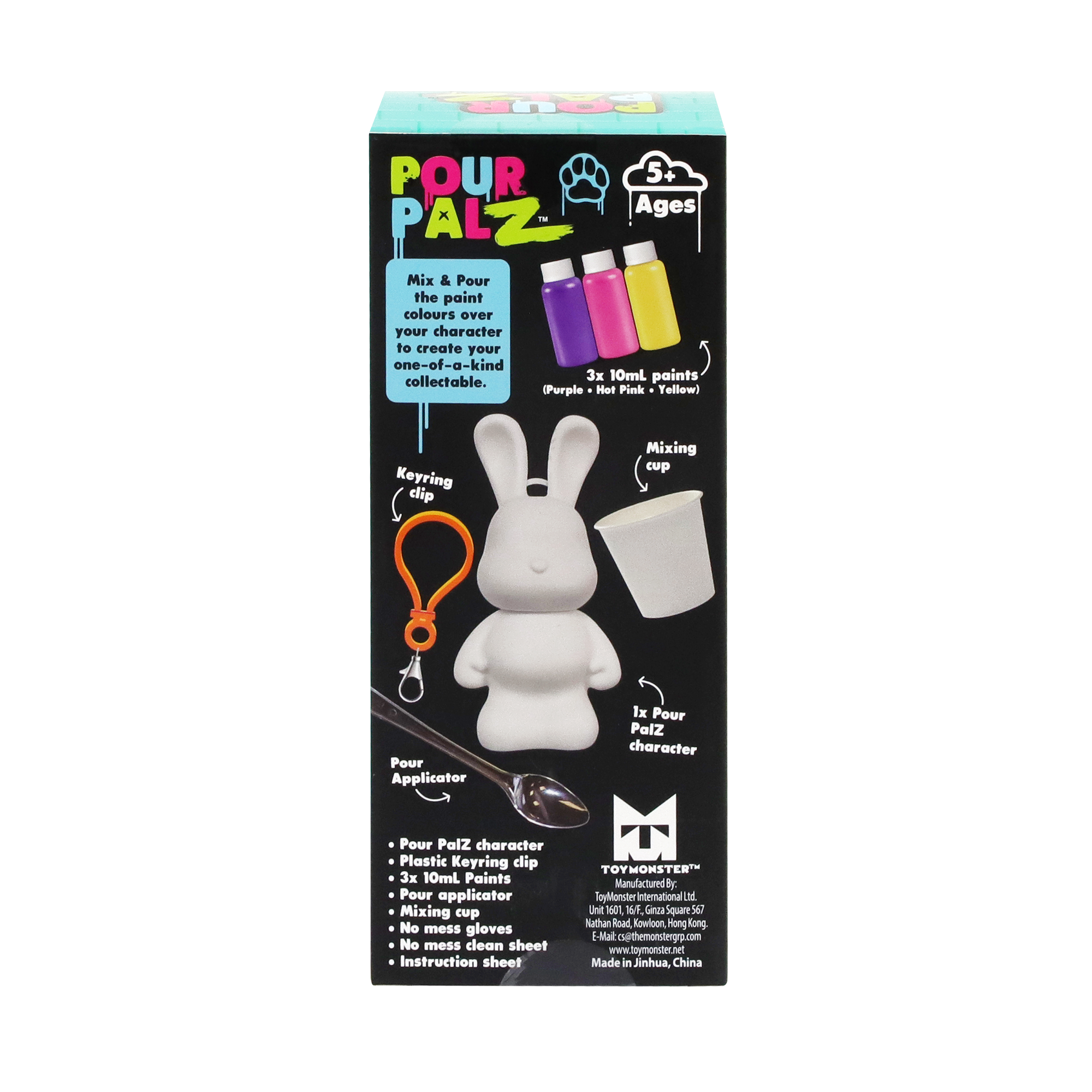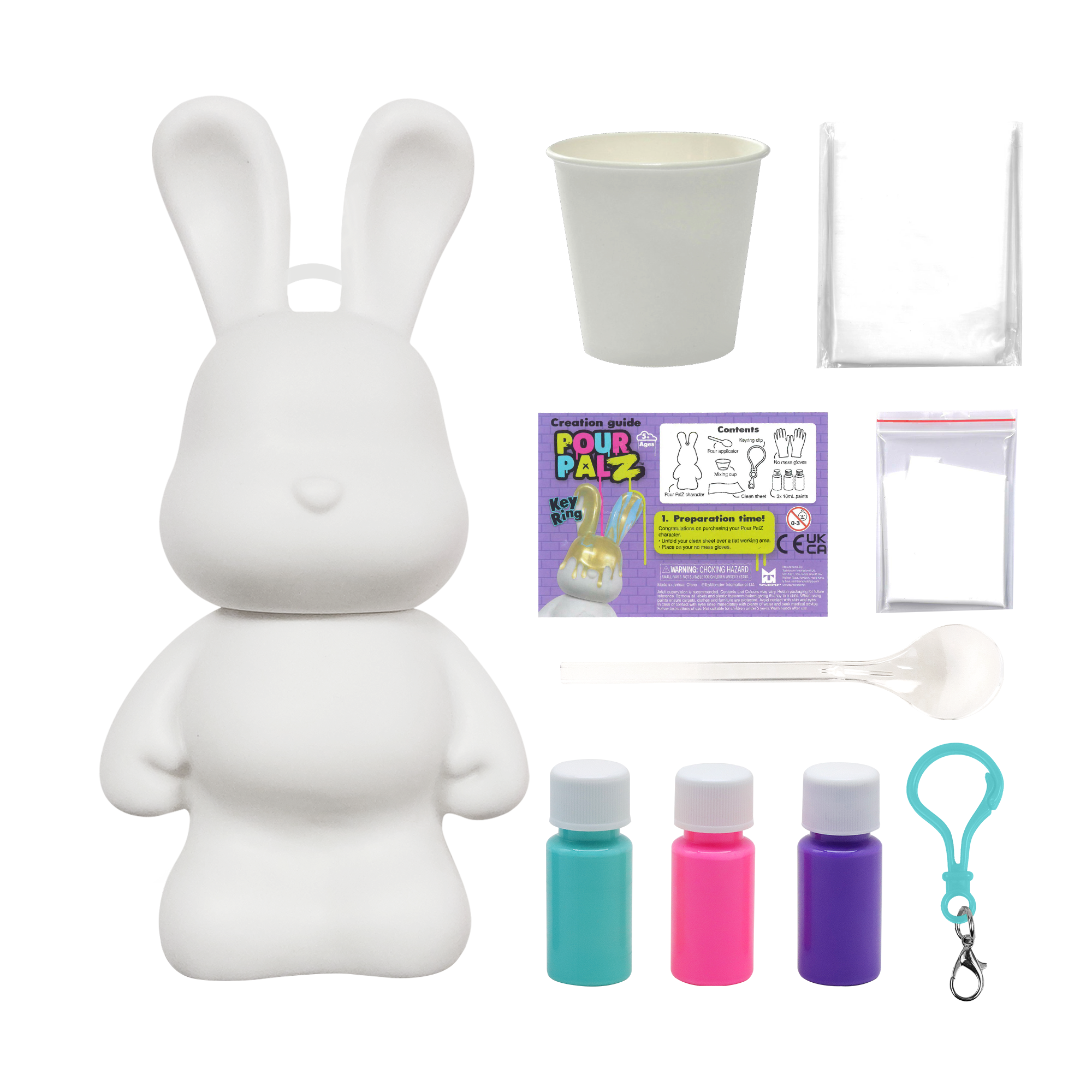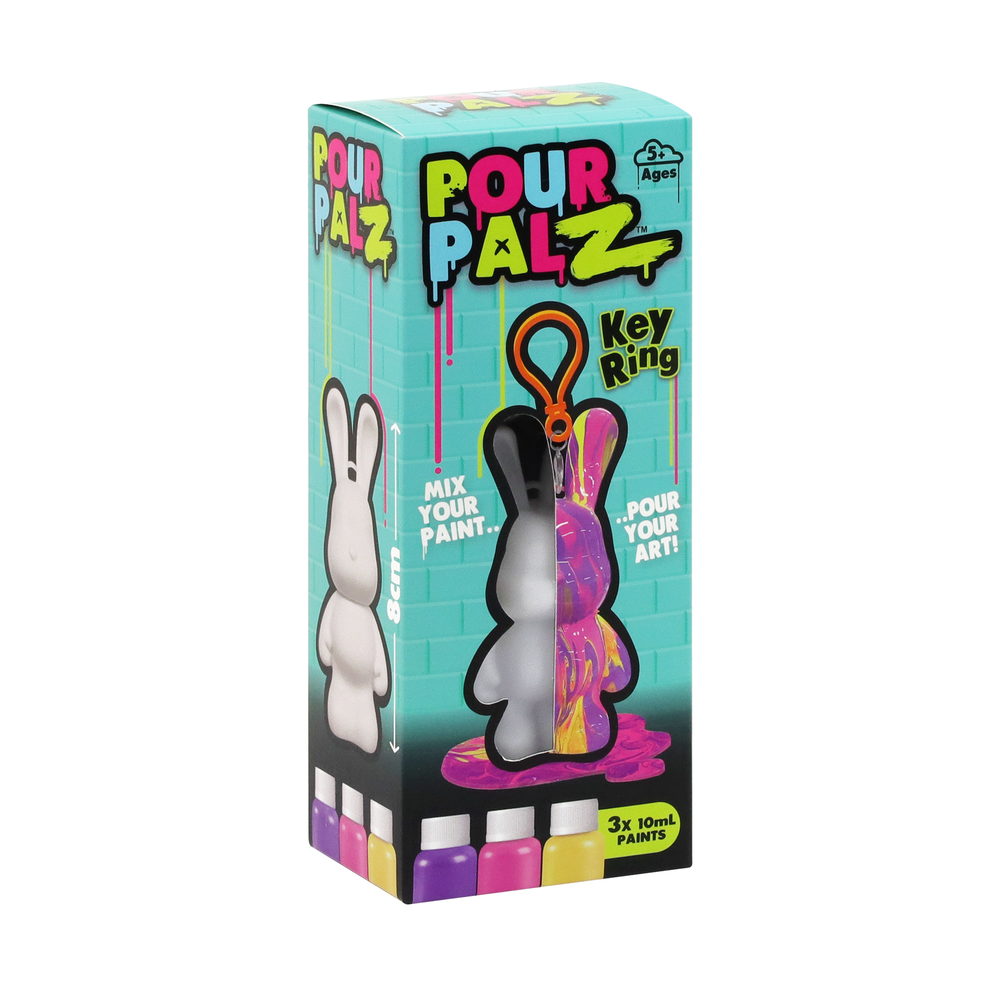Представляем нового Кролика для Рисования от Pour Palz! Приготовься раскрыть своё творчество с этим забавным и простым набором для рукоделия! Смешивай и заливай яркие краски на своего милого кролика, чтобы создать уникальное произведение искусства. Каждый Кролик для Рисования становится особенным, персональным сувениром, таким же замечательным, как и твоя фантазия. Собери все 4 ярких цвета и оживи своё творчество! Идеально для художественных игр, оригинальных подарков или особенных сувениров. В комплекте есть пластиковый брелок, чтобы ты мог брать своего персонального кролика с собой куда угодно.