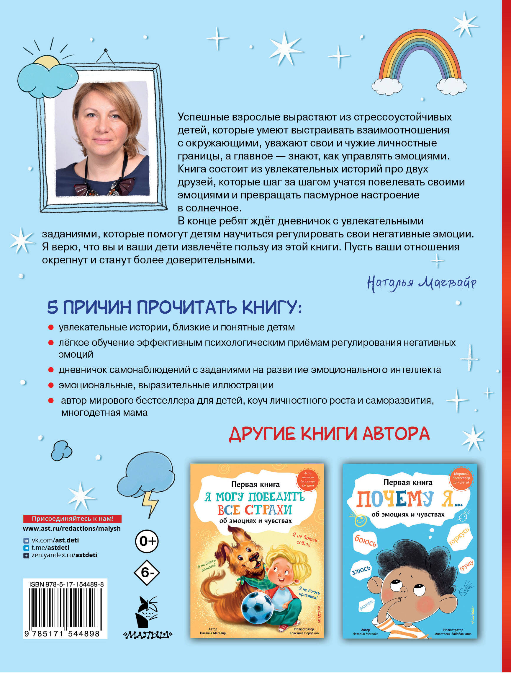 Увлекательные истории про мальчика Макса и его друзей от автора мирового бестcеллера Наталии Магвайр - это первая психологическая помощь для вашего ребенка. Читая и обсуждая приключения друзей, сравнивая их с опытом вашего ребенка, можно показать оптимальные модели поведения в разных жизненных ситуациях. Ребенок научится управлять своими эмоциями и поведением, станет более самостоятельным. Рассказы способствуют развитию эмоционального интеллекта, а это важная помощь при подготовке к школе. Читайте с удовольствием! Это прекрасный яркий и полезный подарок для вашего сына или дочки.| Издательство | ИЗДАТЕЛЬСТВО "АСТ" |