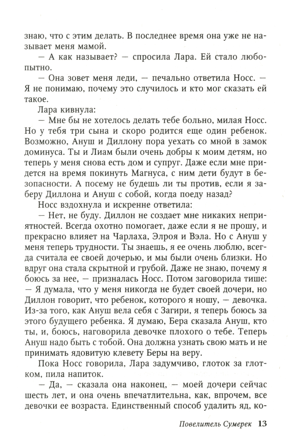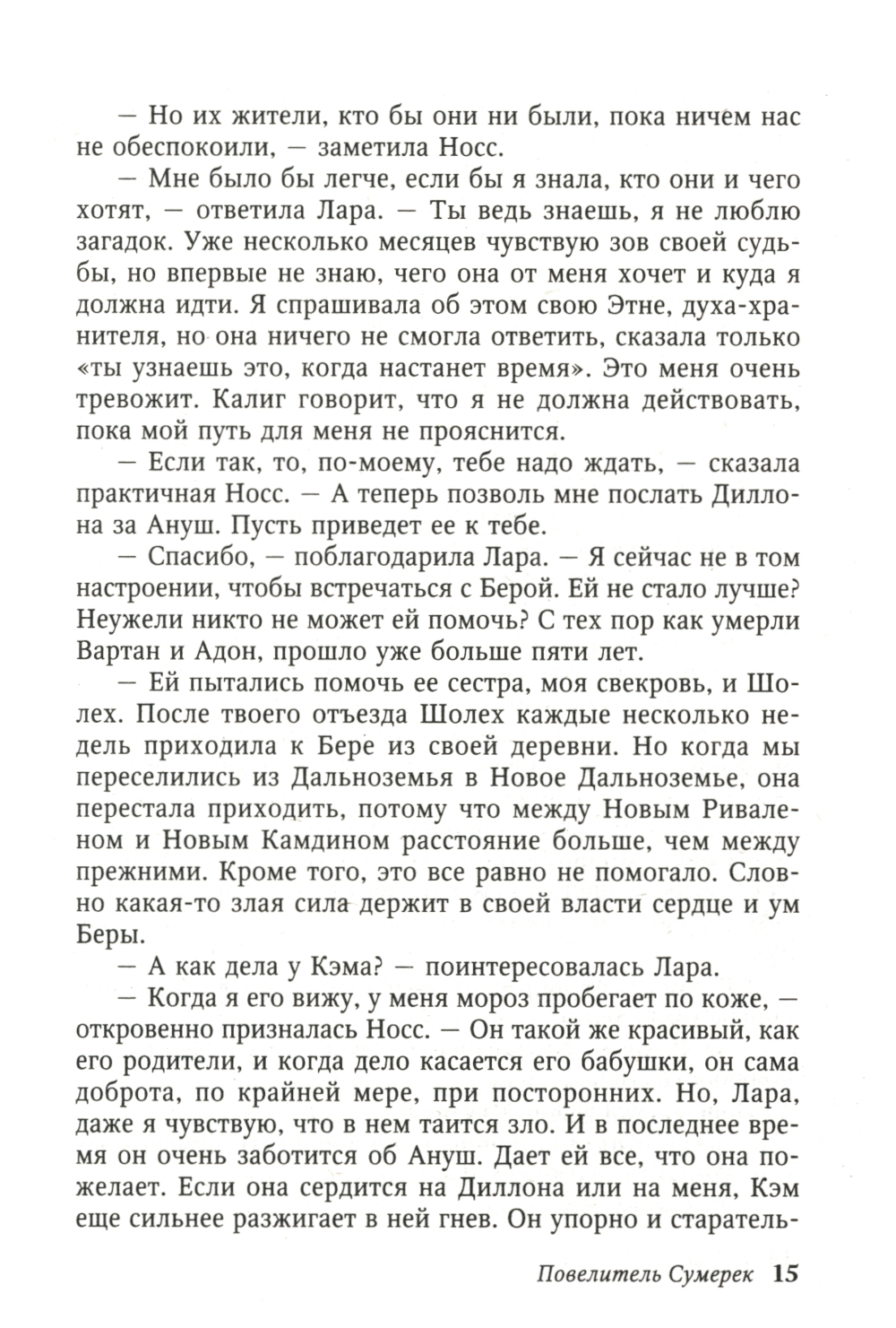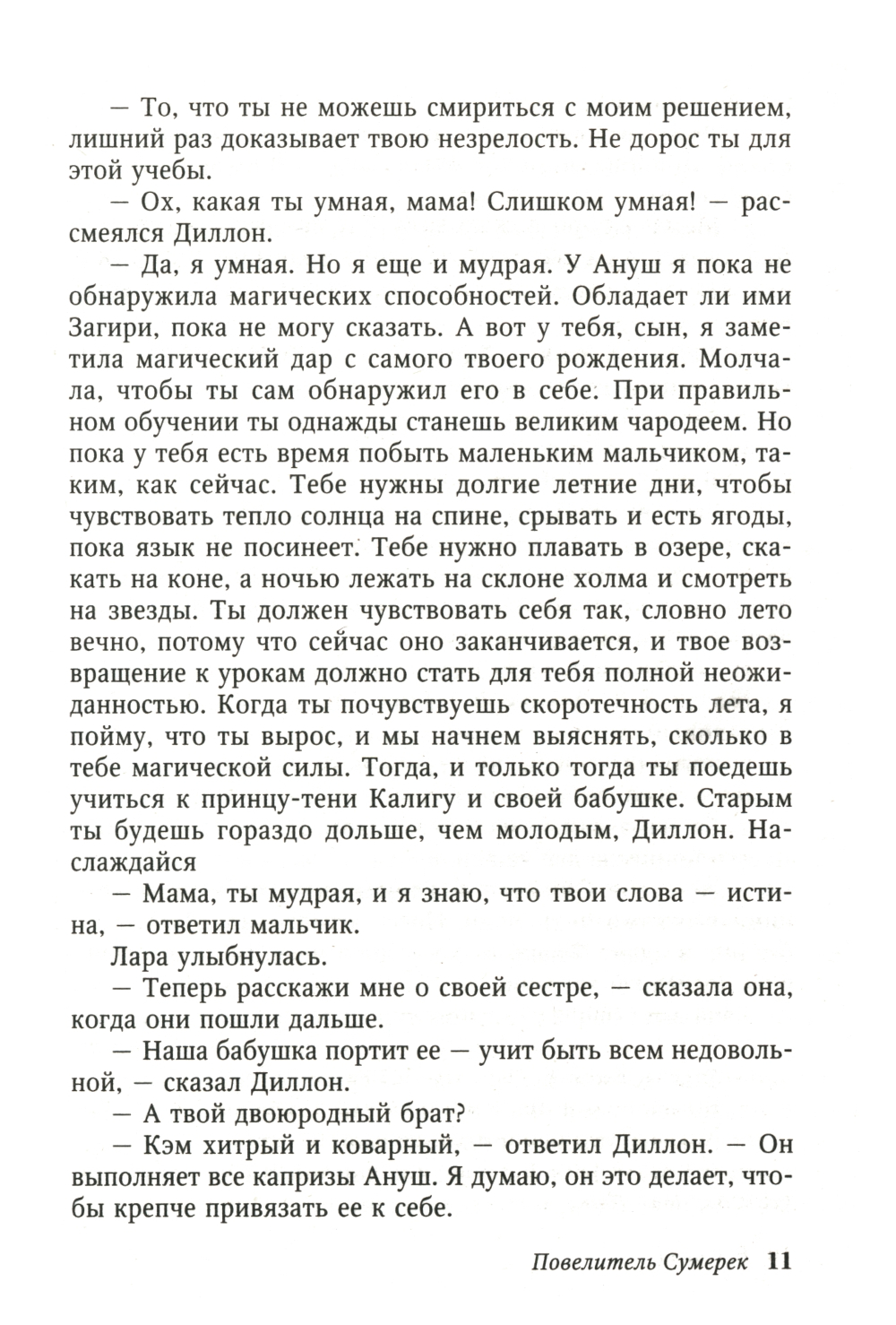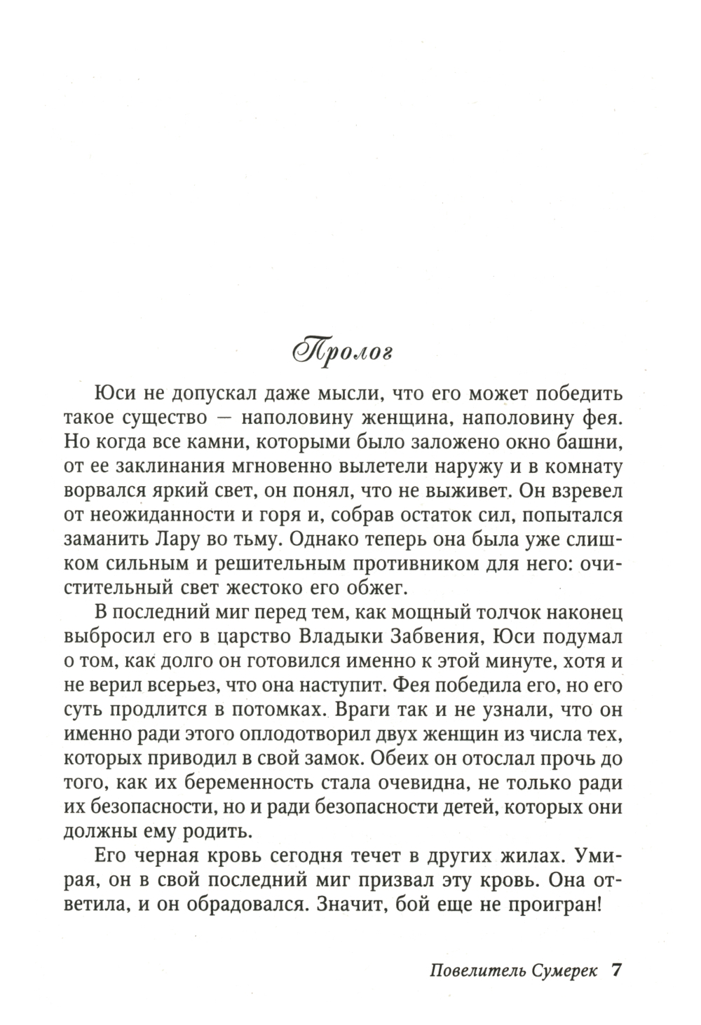 Книга Правления королевства Тьмы предрекает, что наследника Повелителю Сумерек должна родить фея. Но Колл знает, что Лара добровольно не придет к нему, хотя она должна исполнить свое предназначение. Поэтому ему надо придумать способ убедить ее, что она любит его и хочет родить от него ребенка. Но честолюбие властелина Темных Земель простирается за пределы его страстной любви к домине. Коллу нужна ее магия, чтобы победить Хетар и Теру. Но на земли мирной Теры претендует и ненасытный император Хетара... Чтобы восстановить равновесие Тьмы и Света, принц-тень Калиг и мать Лары, королева фей Илона, строят планы по спасению Лары, так как судьба ее еще призовет...| Издательство | Центрполиграф |