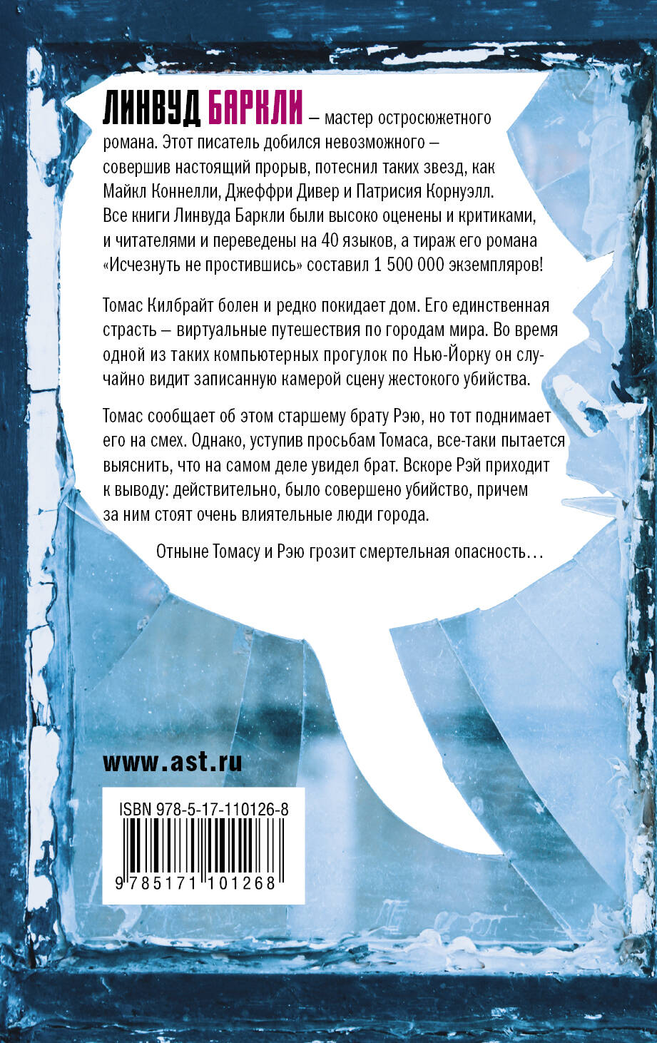 Томас Килбрайт болен и редко покидает дом. Его единственная страсть - виртуальные путешествия по городам мира. Во время одной из таких компьютерных прогулок по Нью-Йорку он случайно видит записанную камерой сцену жестокого убийства. Томас сообщает об этом старшему брату Рэю, но тот поднимает его на смех. Однако, уступив просьбам Томаса, все-таки пытается выяснить, что на самом деле увидел брат. Вскоре Рэй приходит к выводу: действительно, было совершено убийство, причем за ним стоят очень влиятельные люди города. Отныне Томасу и Рэю грозит смертельная опасность…| Издательство | ИЗДАТЕЛЬСТВО "АСТ" |