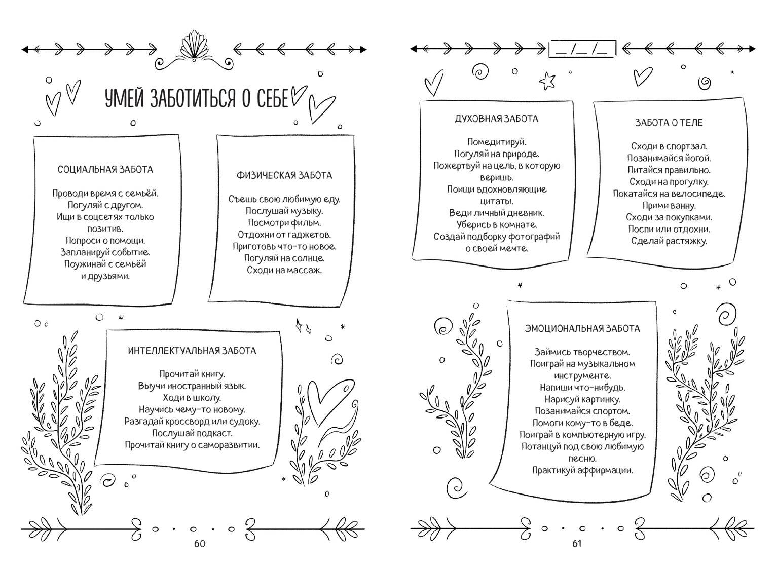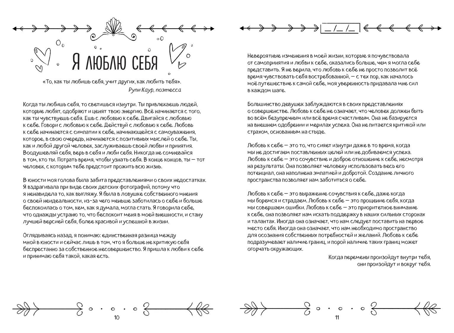 В этой книге вы найдете множество полезных советов о том, как полюбить себя, повысить свою самооценку, избавиться от страхов, научиться справляться со стрессом и многое-многое другое. Увлекательный формат с советами, упражнениями и тестами, а также стильные иллюстрации, делают издание отличным подарком для девочек, которые хотят жить в гармонии с собой.| Издательство | ООО "Издательство "Эксмо" |