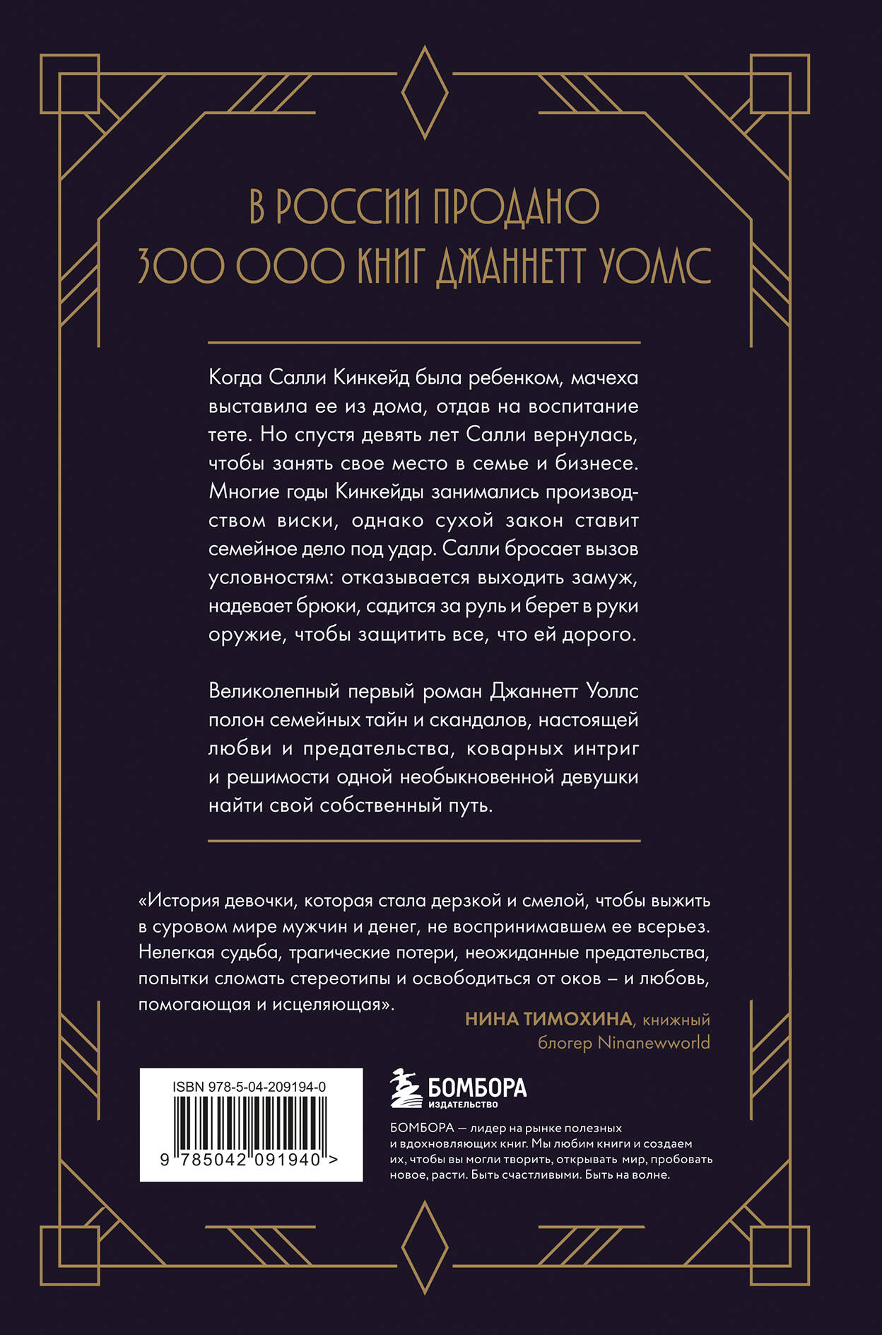 В России продано 300 000 книг Джаннетт Уоллс. Когда Салли Кинкейд была ребенком, мачеха выставила ее из дома, отдав на воспитание тете. Но спустя девять лет Салли вернулась, чтобы занять свое место в семье и бизнесе. Многие годы Кинкейды занимались производством виски, однако «Сухой закон» ставит семейное дело под удар. Салли бросает вызов условностям: отказывается выходить замуж, надевает брюки, садится за руль и берет в руки оружие, чтобы защитить все, что ей дорого. Великолепный первый роман Джанннетт Уоллс полон семейных тайн и скандалов, настоящей любви и предательства, коварных интриг и решимости одной необыкновенной девушки найти свой собственный путь. «История девочки, которая стала дерзкой и смелой, чтобы выжить в суровом мире мужчин и денег, не воспринимавшем ее всерьез. Нелегкая судьба, трагические потери, неожиданные предательства, попытки сломать стереотипы и освободиться от оков - и любовь, помогающая и исцеляющая». - Нина Тимохина, книжный блогер Ninanewworld «Зажигательная драма с крутыми поворотами сюжета. Джаннетт Уоллс создала еще одну впечатляющую историю». - The Washington Post «Вы влюбитесь в Салли с первой же страницы и будете болеть за нее до последней». - Good Housekeeping| Издательство | ООО "Издательство "Эксмо" |