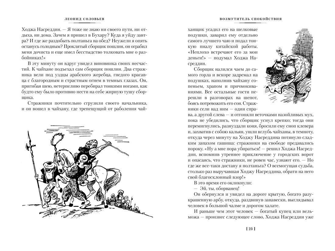 «Повесть о Ходже Насреддине», основанная на фольклоре Средней Азии, занимает почетное место в сокровищнице русской литературы. Приключения веселого, хитрого бродяги, героя множества анекдотов, притч, сказок, давно уже обрели всемирную известность, а с легкой руки Леонида Соловьева Ходжа Насреддин, «знаменитый и несравненный, который появляется где захочет и исчезает когда захочет, который побывал всюду и везде оставил по себе память», превратился в любимого персонажа миллионов русских читателей. В настоящее издание вошли обе книги Леонида Соловьева о приключениях Ходжи Насреддина: «Возмутитель спокойствия» - авантюрная повесть с увлекательным сюжетом, едким юмором и бурными страстями, и «Очарованный принц» - загадочная история с мистическим уклоном, в которой дорога странствий вновь зовет Ходжу Насреддина в путь устами старого нищего дервиша, проигравшего в кости целое озеро… Произведения сопровождаются неповторимыми классическими иллюстрациями советского художника Владимира Александровича Гальбы (1908-1984).| Издательство | Азбука |