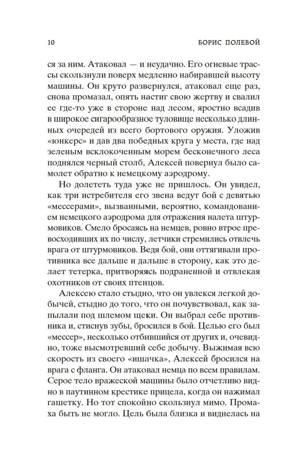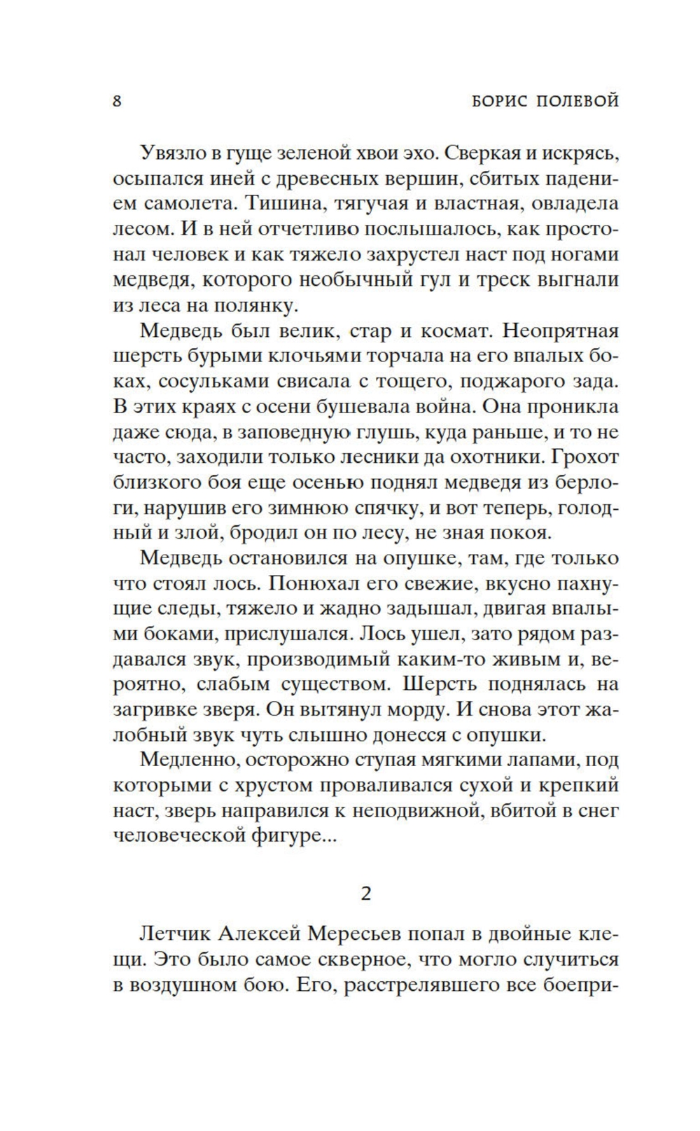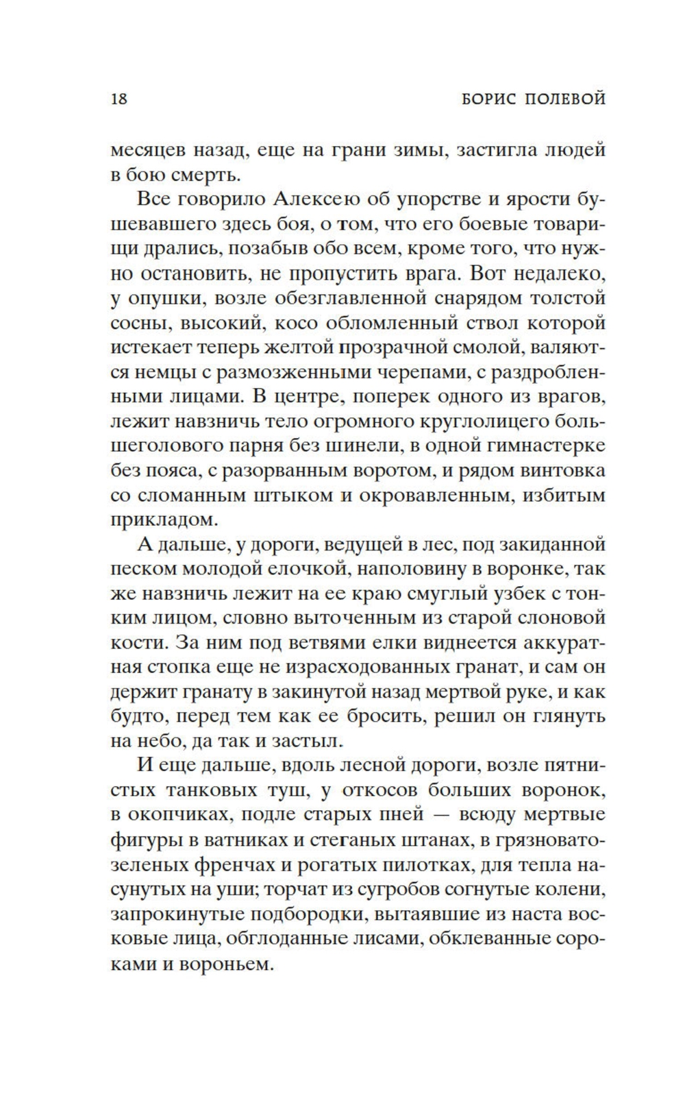 Борис Николаевич Полевой (1908-1981) - известный советский прозаик, сценарист и журналист, автор легендарной «Повести о настоящем человеке». В основу книги положена удивительная судьба советского летчика-аса Алексея Петровича Маресьева, жизнь которого стала примером мужества, несгибаемой воли и стойкости. Как корреспондент газеты «Правда» Полевой прошел Великую Отечественную войну и собрал огромный фактический материал. Встреча с прославленным летчиком произошла в августе 1943 года, и его рассказ писатель занес в «Дневник полета 3-й эскадрильи». Спустя три года Полевой вернулся к своему «Дневнику» и всего за несколько недель создал книгу о подвиге безногого летчика. «Повесть о настоящем человеке» вышла в 1946 году и принесла автору общенародную любовь, а также была отмечена Государственной премией СССР. По повести была поставлена одноименная опера Сергея Прокофьева, снят художественный фильм, книга выдержала десятки переизданий и была переведена на многие языки.| Издательство | Азбука |
