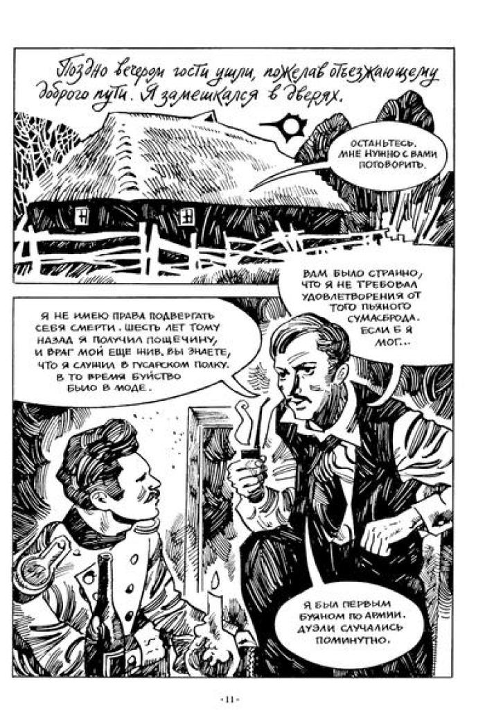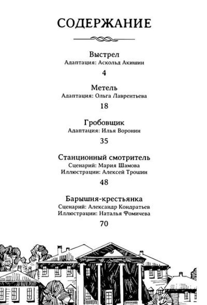 «Повести покойного Ивана Петровича Белкина» - знаменитый цикл Александра Сергеевича Пушкина, ставший дебютом великого писателя в прозе. Затянувшаяся на годы дуэль. Случайное венчание двух незнакомцев. Страшный сон гробовщика. Трагичная судьба станционного смотрителя. Неожиданный секрет помещичьей дочки - все эти классические сюжеты оживают на бумаге в новом формате, в виде графического романа! Непростая задача выпала на долю настоящих мастеров авторского комикса: Аскольда Акишина, Ольги Лаврентьевой, Ильи Воронина, Алексея Трошина и Натальи Фомичевой.| Издательство | Alpaca |