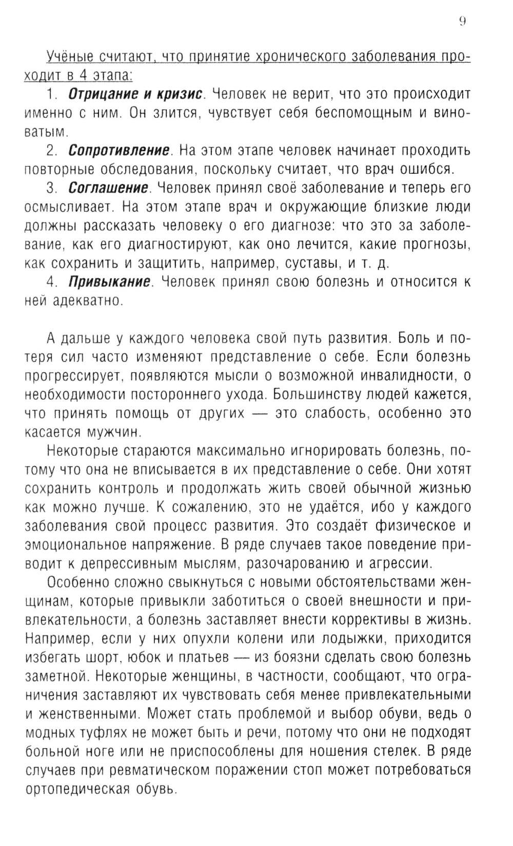 Мы знаем, что диагноз «ревматоидный артрит» ведёт к определённому неудобствам и ограничениям в повседневной жизни. Однако необходимо сделать всё, чтобы избежать значительного снижения качества жизни. И большинству людей это под силу! Мы надеемся эта книга сможет помочь людям найти свой путь совместного сосуществования с ревматоидным артритом. Из неё вы узнаете, надо ли менять образ жизни, как влияет болезнь на отношения в семье, на работу и специальность, на беременность. Вы узнаете, как вести себя в разных жизненных ситуациях. Например, в поездках, на даче, при обострении болезни. Как наладить сон, как справиться с депрессией, как контролировать усталость, как правильно заниматься физкультурой и спортом. Как помочь близкому, у которого ревматоидный артрит. И на многие другие вопросы, которые волнуют больных ревматоидным артритом или их близких, вы найдете ответы в этой книге.| Издательство | Крылов |
