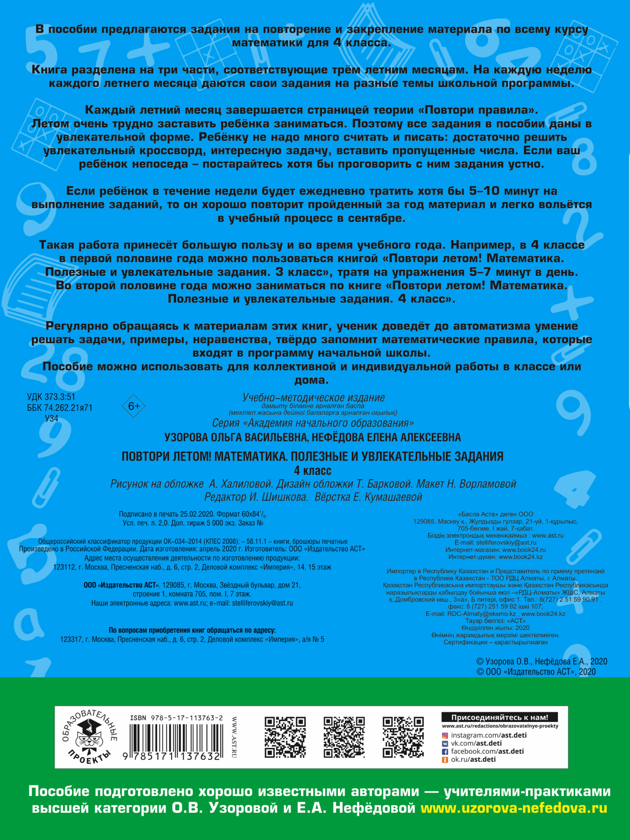 Аннотация: Повтори летом! Математика. Полезные и увлекательные задания. 4 класс