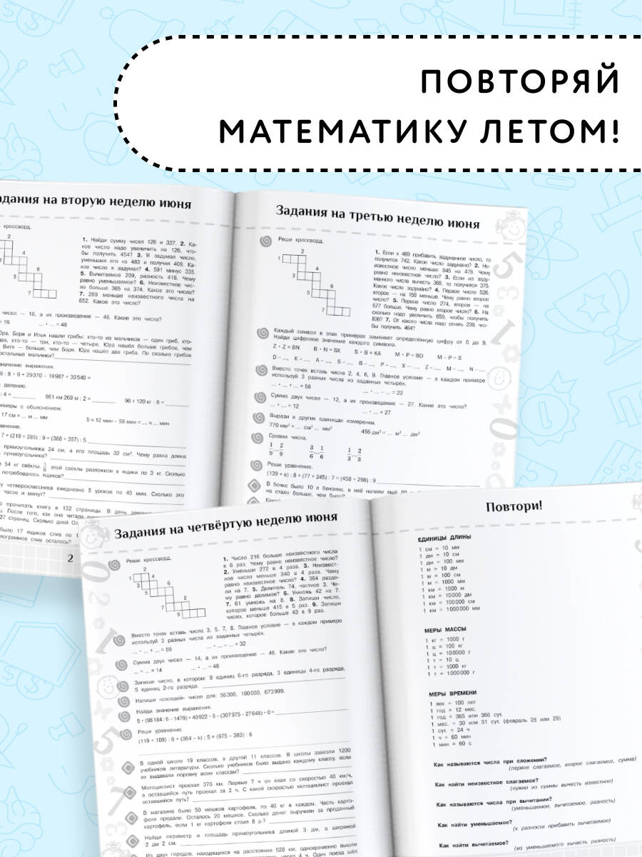 В пособии предлагаются задания на повторение и закрепление материала по всему курсу математики для 4 класса. Книга разделена на три части, соответствующие трём летним месяцам. На каждую неделю каждого летнего месяца даются свои задания на разные темы школьной программы. Каждый летний месяц завершается страницей теории «Повтори правила». Летом очень трудно заставить ребёнка заниматься. Поэтому все задания в пособии даны в увлекательной форме. Ребёнку не надо много писать: достаточно решить увлекательный кроссворд, занимательную задачу, вставить цифру или знак. Если ваш ребёнок непоседа - постарайтесь хотя бы проговорить с ним задания устно. Если ребёнок в течение недели будет ежедневно тратить хотя бы 5-10 минут в день на выполнение заданий, то он хорошо повторит пройденный за год материал и легко вольётся в учебный процесс в сентябре. Такая работа принесёт большую пользу и во время учебного года. Например, в 4 классе в первой половине года можно пользоваться книгой «Повтори летом! Математика. Полезные и увлекательные задания. 3 класс», тратя на упражнения 5-7 минут в день. Во второй половине года можно заниматься по книге «Повтори летом! Математика. Полезные и увлекательные задания. 4 класс». Регулярно обращаясь к материалам этих книг, ученик доведёт до автоматизма умение решать задачи, примеры, неравенства, твёрдо запомнит математические правила, которые входят в программу начальной школы. Пособие можно использовать для коллективной и индивидуальной работы в классе или дома.