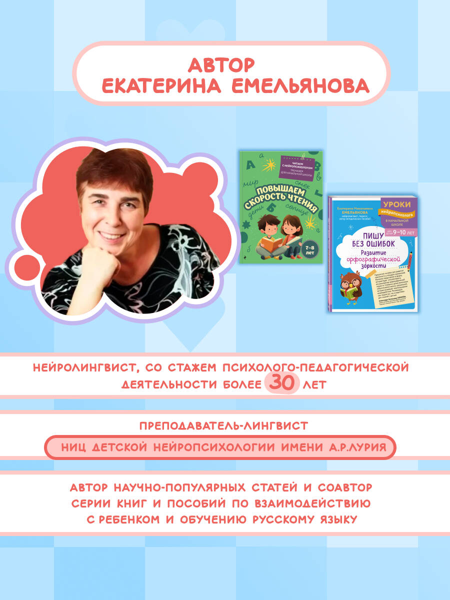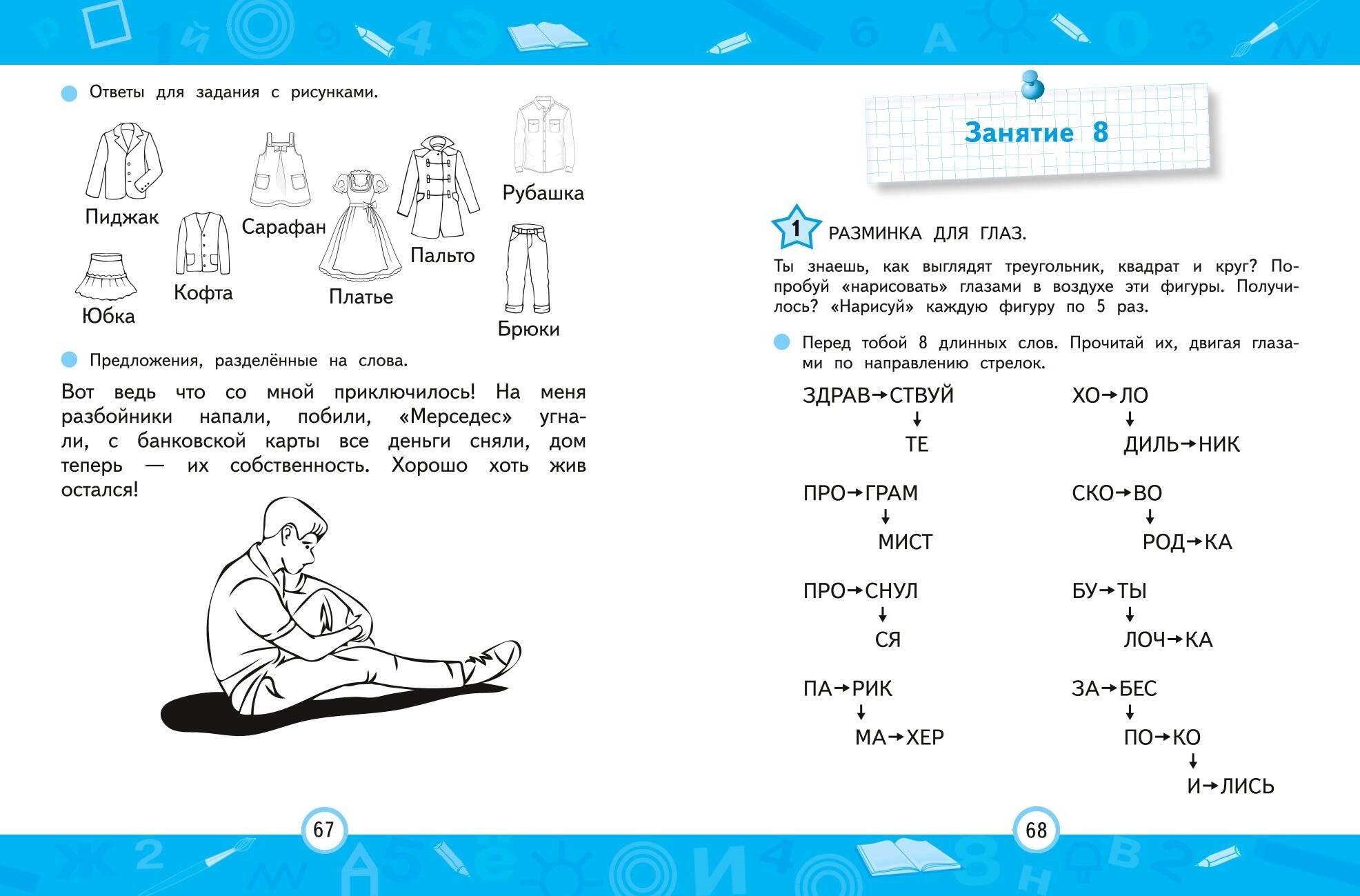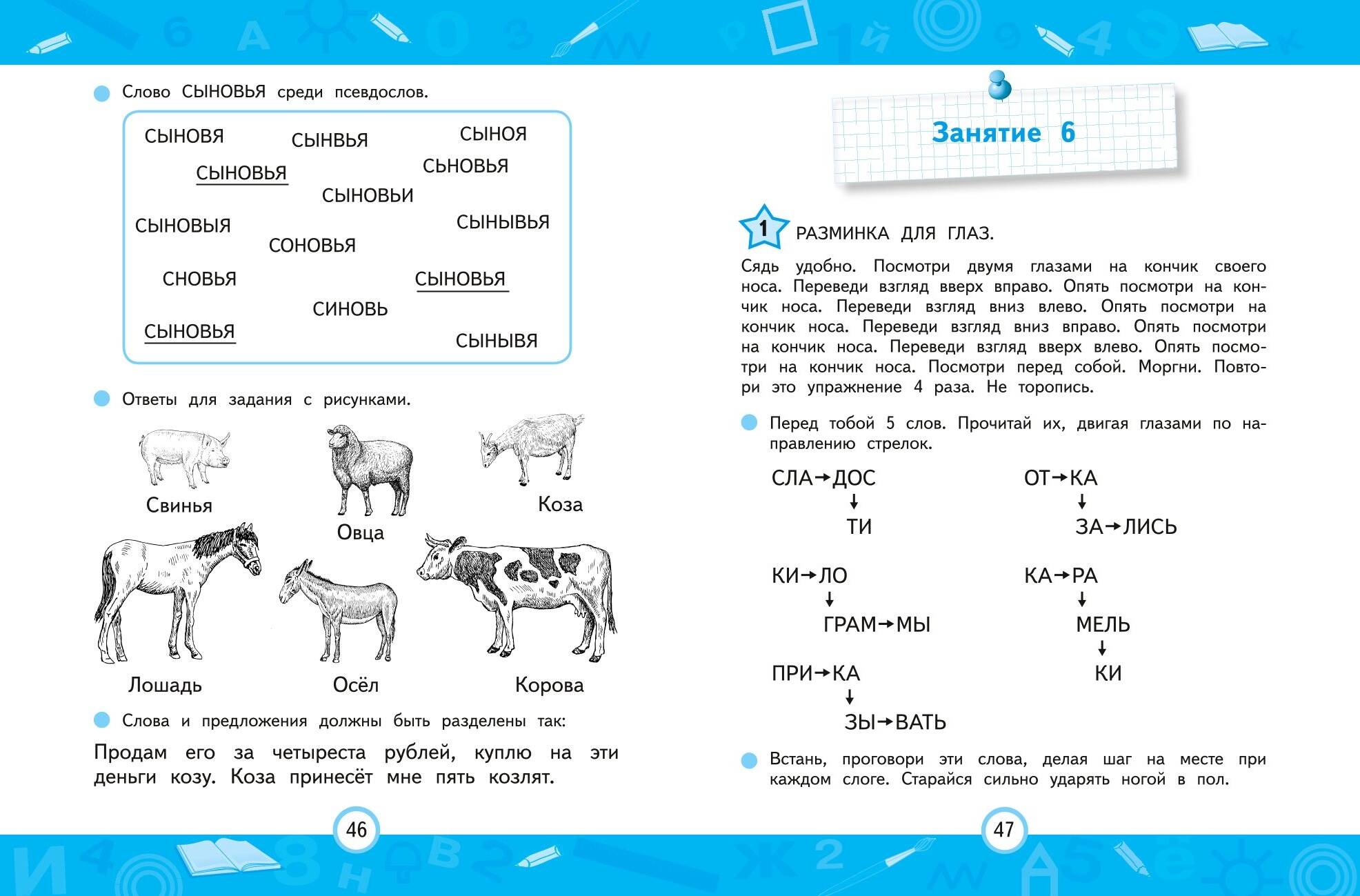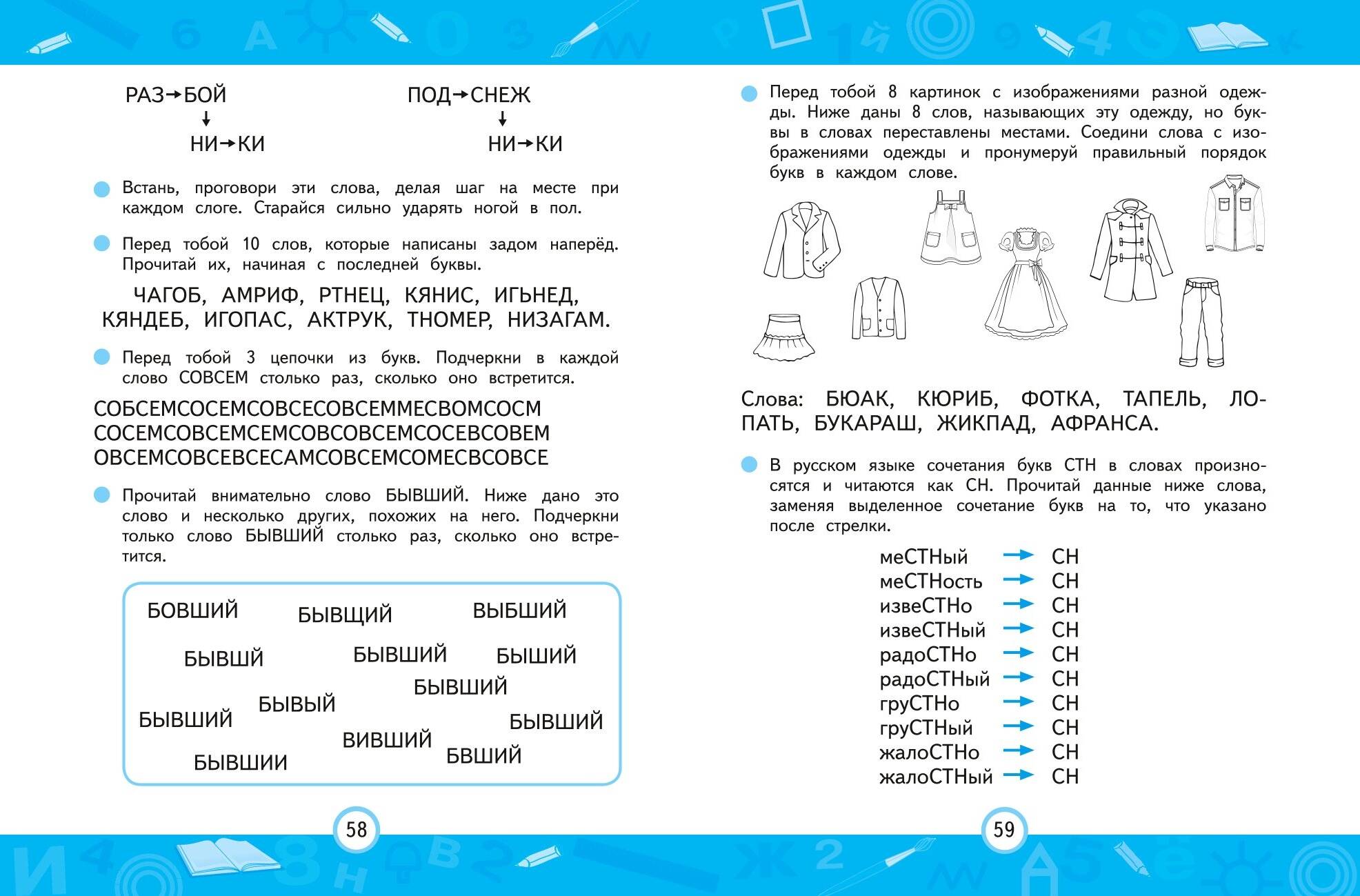Основная задача книги - повышение скорости чтения у младших школьников. Для того чтобы научиться читать быстро, мало просто тренироваться - нужно устранить те причины, которые мешают достичь необходимой скорости. Пособие позволит сформировать навык быстрого чтения, улучшая работу артикуляционного аппарата, развивая представление о пространстве и образе слова, совершенствуя зрительное восприятие, улучшая чувство ритма и контролируя дыхание. Все упражнения внутри каждого занятия построены по принципу от простого к сложному, поэтому, чтобы достичь успеха, выполнять их нужно в предлагаемой последовательности. Что-то будет даваться легко, что-то сначала покажется трудным, но упорный труд и старание обязательно приведут к отличному результату. Покупая это пособие для своего ребенка, вы поможете ему: 1) сформировать навык беглого осознанного чтения; 2) улучшить работу артикуляционного аппарата; 3) справиться с возможными трудностями в обучении.| Издательство | ООО "Издательство "Эксмо" |