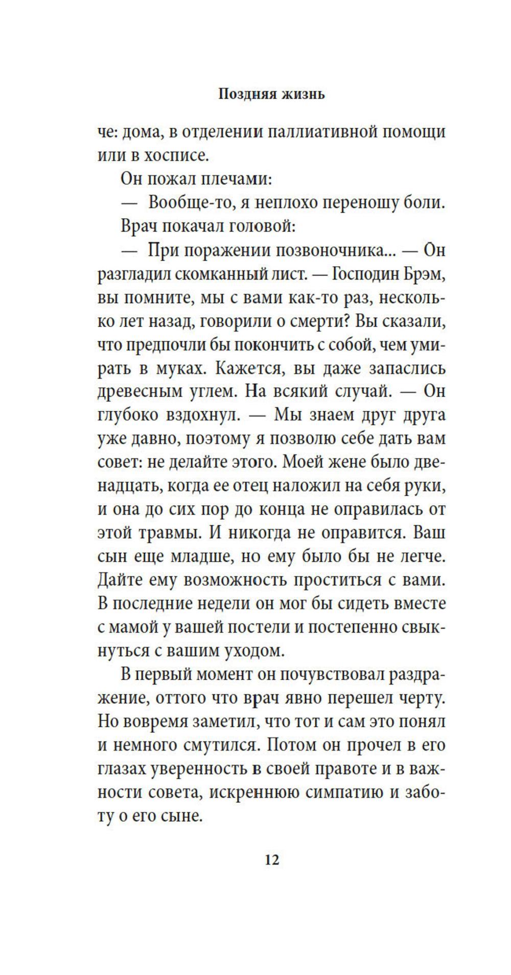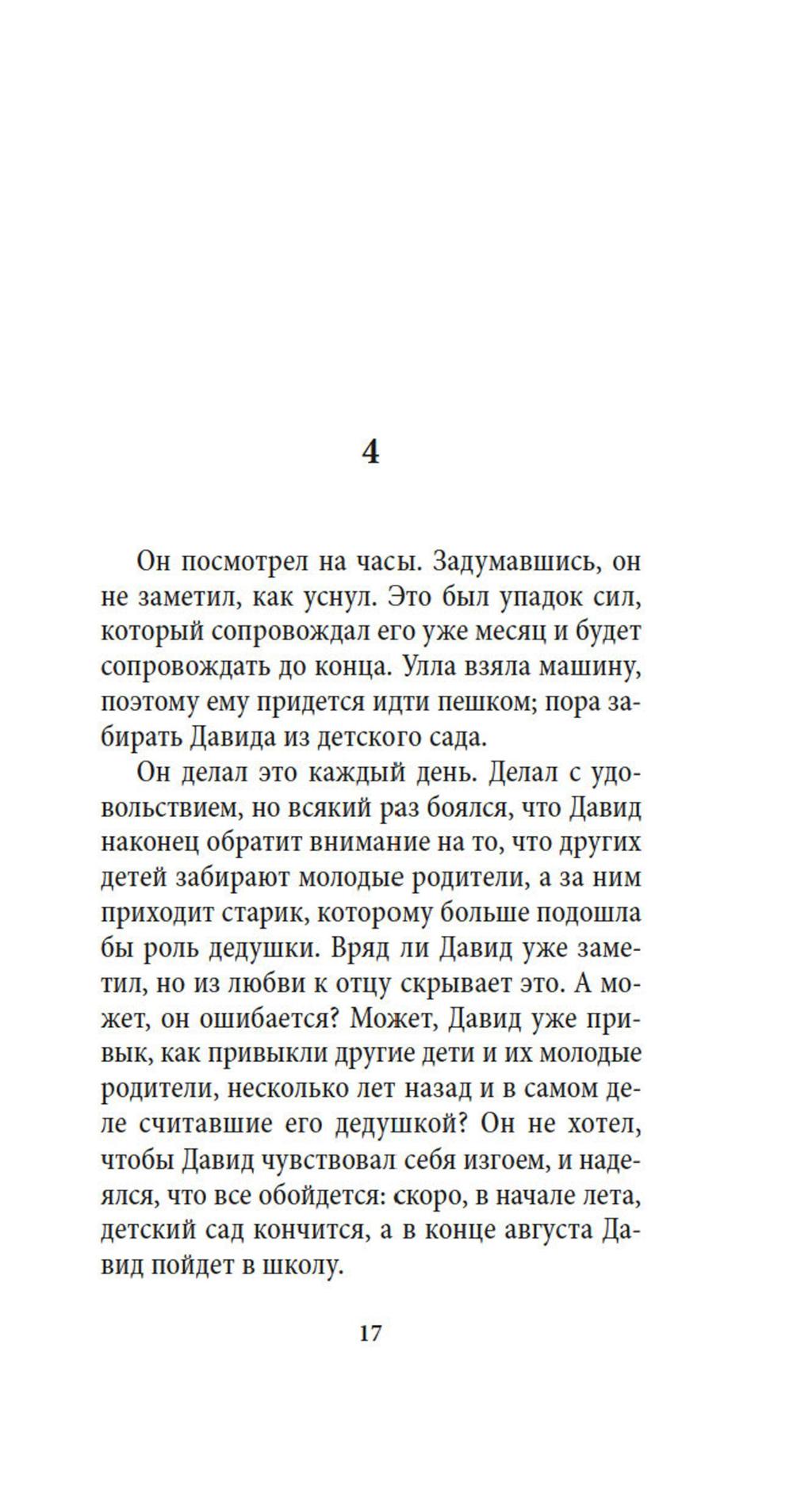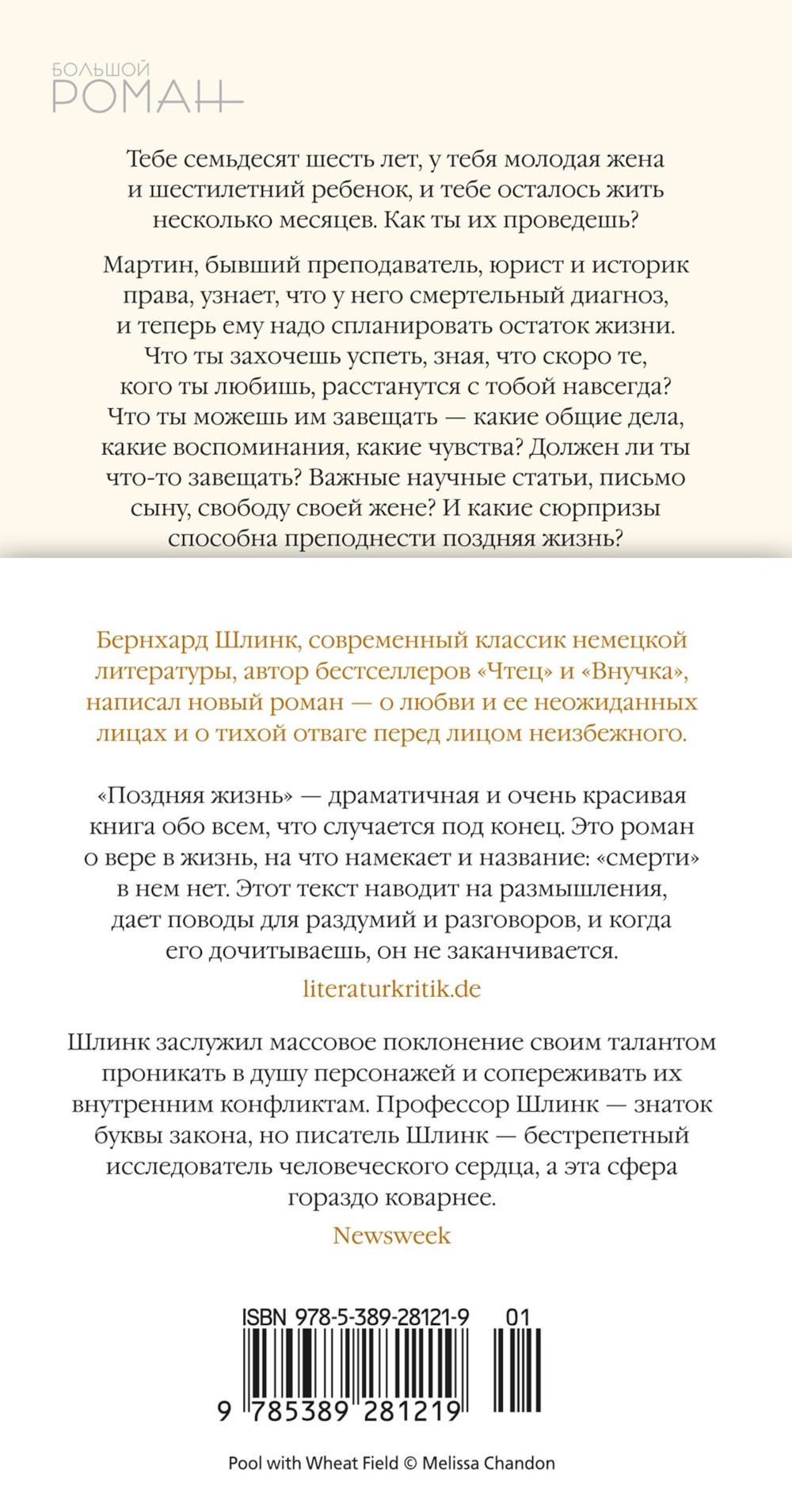 Тебе семьдесят шесть лет, у тебя молодая жена и шестилетний ребенок, и тебе осталось жить несколько месяцев. Как ты их проведешь? Мартин, бывший преподаватель, юрист и историк права, узнает, что у него смертельный диагноз, и теперь ему надо спланировать остаток жизни. Что ты захочешь успеть, зная, что через несколько месяцев те, кого ты любишь, расстанутся с тобой навсегда? Что ты можешь им завещать - какие общие дела, какие воспоминания, какие чувства? Должен ли ты что-то завещать? Важные научные статьи, письмо сыну, свободу своей жене? И какие сюрпризы способна преподнести поздняя жизнь? Бернхард Шлинк, современный классик немецкой литературы, лауреат многочисленных литературных премий, автор бестселлеров «Чтец» и «Внучка», написал новый роман - о любви и ее неожиданных лицах и о тихой отваге перед лицом неизбежного. Впервые на русском!| Издательство | Азбука |