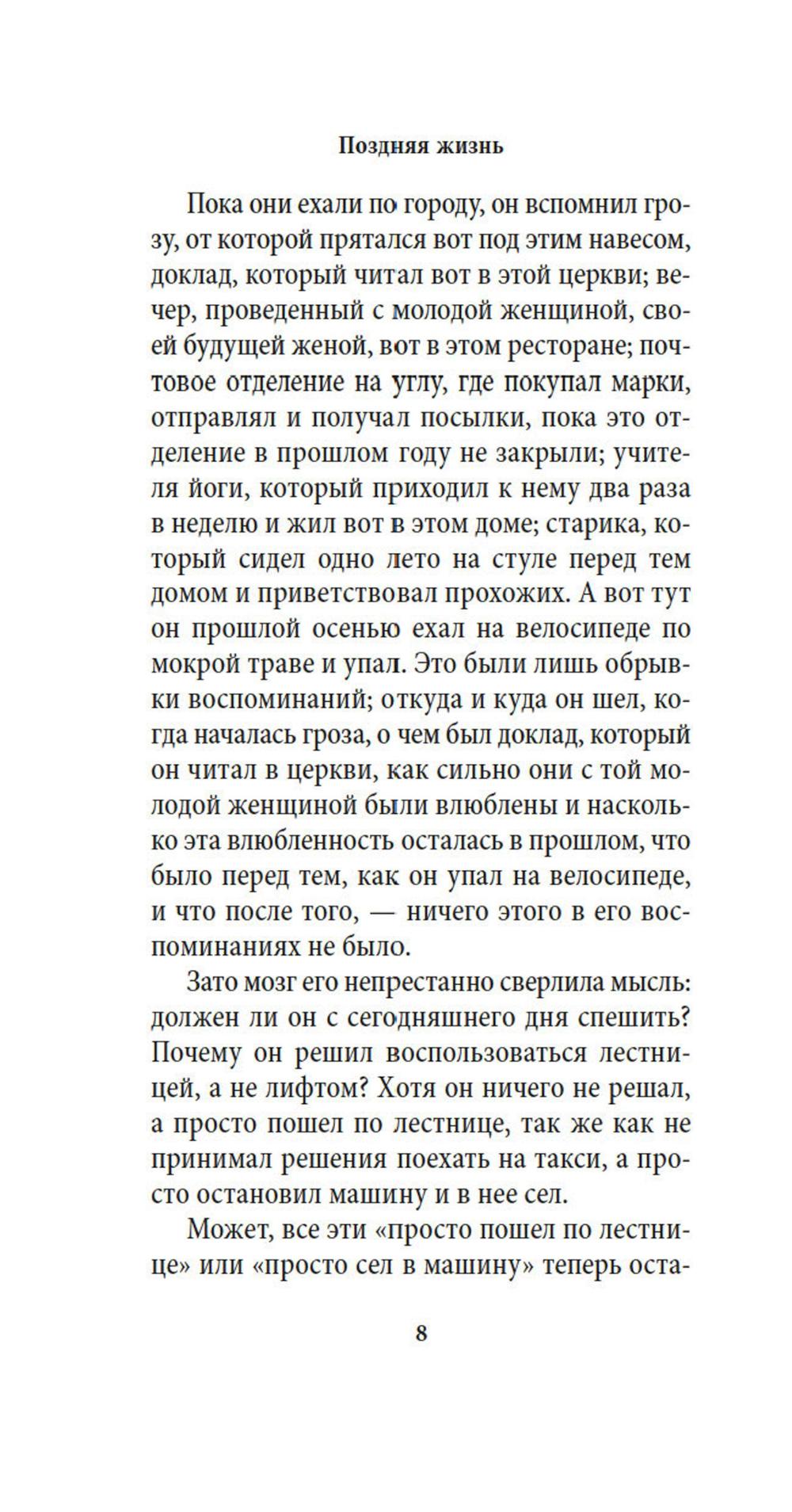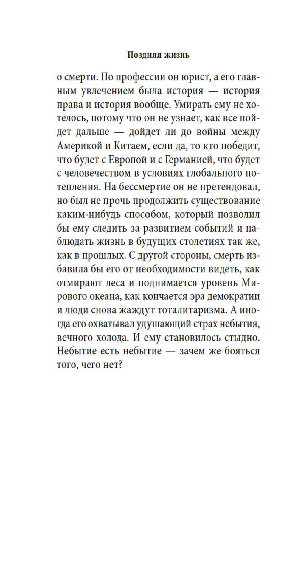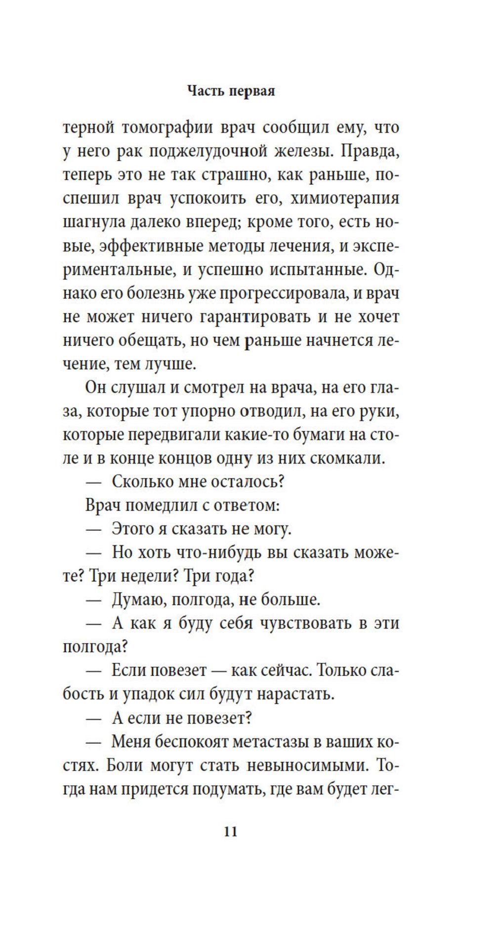 Тебе семьдесят шесть лет, у тебя молодая жена и шестилетний ребенок, и тебе осталось жить несколько месяцев. Как ты их проведешь? Мартин, бывший преподаватель, юрист и историк права, узнает, что у него смертельный диагноз, и теперь ему надо спланировать остаток жизни. Что ты захочешь успеть, зная, что через несколько месяцев те, кого ты любишь, расстанутся с тобой навсегда? Что ты можешь им завещать - какие общие дела, какие воспоминания, какие чувства? Должен ли ты что-то завещать? Важные научные статьи, письмо сыну, свободу своей жене? И какие сюрпризы способна преподнести поздняя жизнь? Бернхард Шлинк, современный классик немецкой литературы, лауреат многочисленных литературных премий, автор бестселлеров «Чтец» и «Внучка», написал новый роман - о любви и ее неожиданных лицах и о тихой отваге перед лицом неизбежного. Впервые на русском!| Издательство | Азбука |