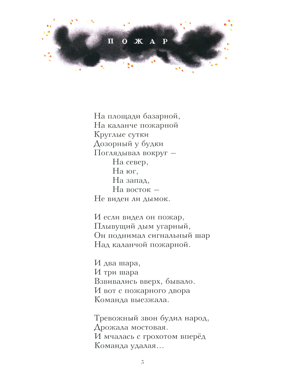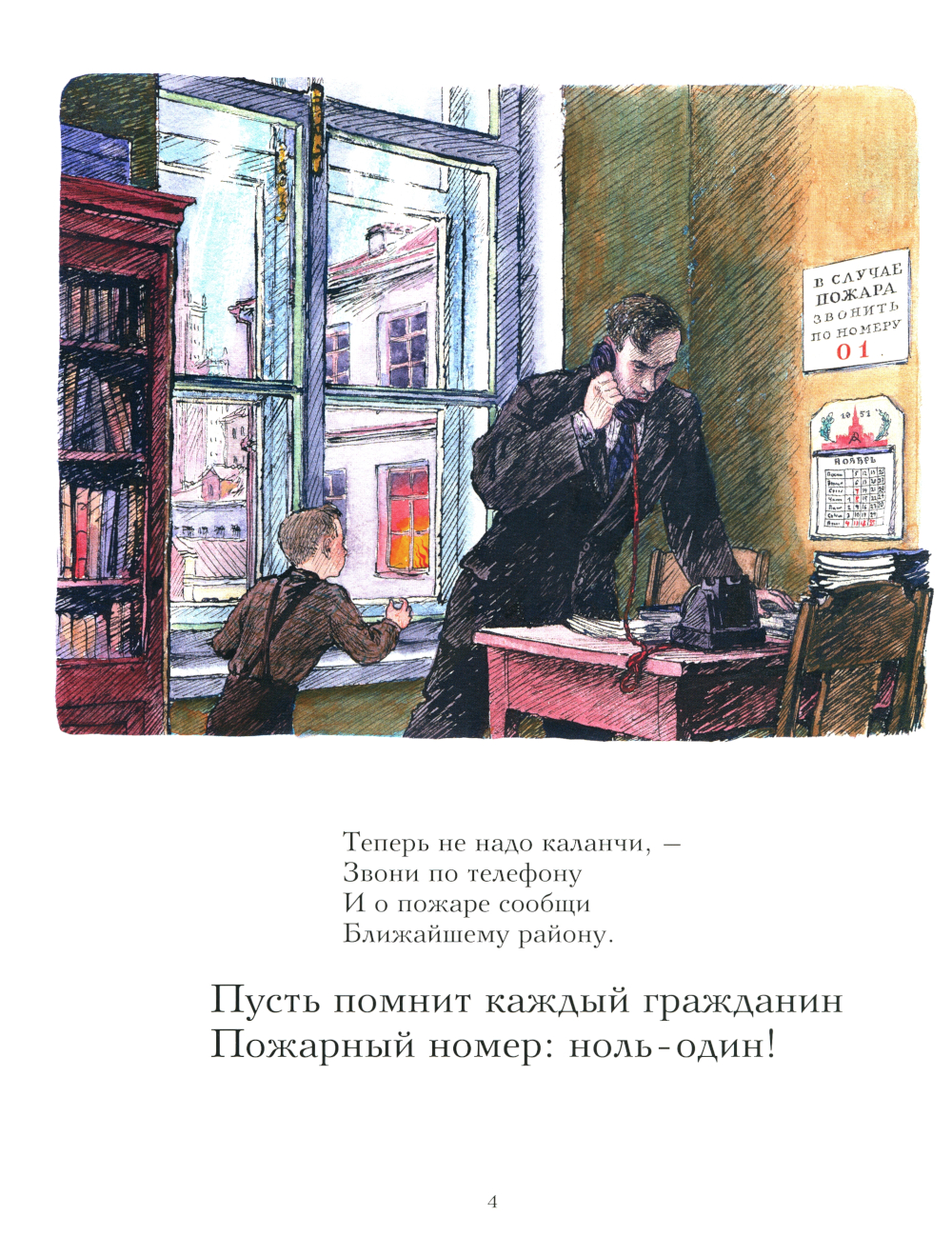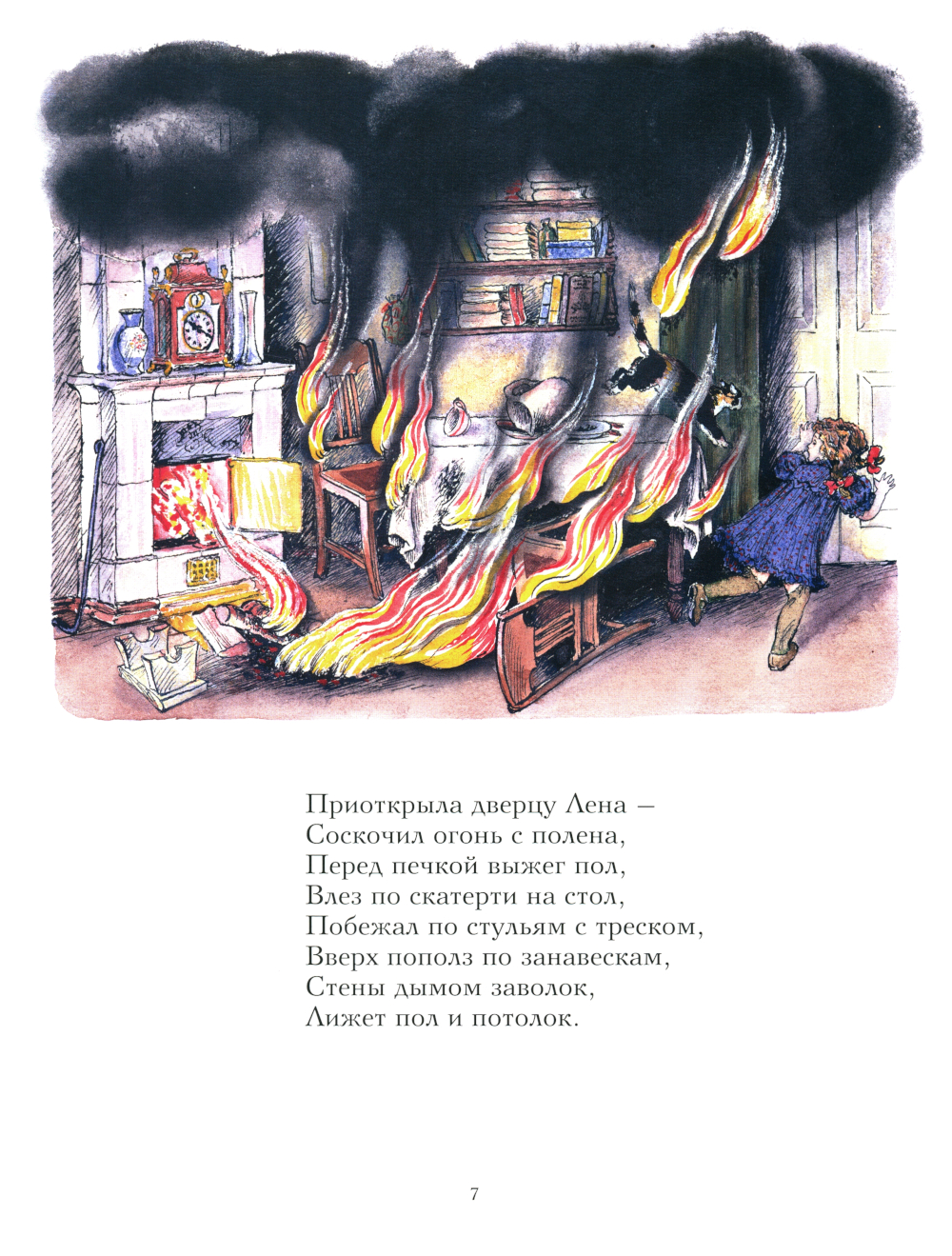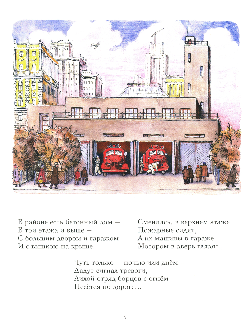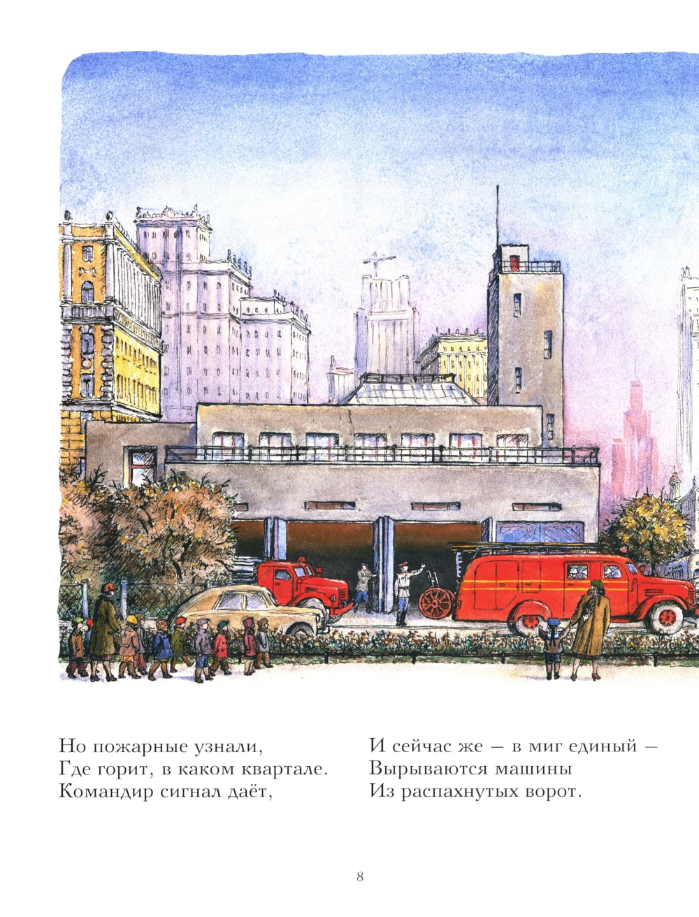 Замечено, что стихи Маршака для детей насыщены огнем. Всё дело в том, что в раннем детстве мальчик и его семья пережили пожар в собственном доме. Писатель говорил, что его самое первое яркое воспоминание из детства - это огонь, охвативший занавески, мама, быстро и с волнением его одевающая, непонятное чувство какого-то очень уж глубокого страха. В стихах Маршака мы не раз встретим огонь. Ведь он всегда сам с осторожностью к нему относился и старался передать эту настороженность и внимательность детям. Действительно, тема огня, пожара - одна из самых притягательных и завораживающих для детей. В их понимании пожарный - самая героическая профессия, а пожарная машина создана для опасных и благородных приключений. Вот почему книга С. Маршака «Пожар» с иллюстрациями В. Конашевича издавалась целых 28 раз, начиная с 1923 года. Она не устарела, не сошла со сцены и продолжала жить в старых и новых картинках своего лучшего иллюстратора Владимира Конашевича. Перед вами последний обновленный авторами вариант, который вышел в 1952 году. Теперь действие книги разворачивается на фоне современного города: на смену пожарным упряжкам пришли пожарные машины, а на месте одноэтажных домов выросли многоэтажные здания. Заново иллюстрируя «Пожар», Конашевич долго и внимательно присматривался к работе пожарного депо в Ленинграде, расспрашивал пожарных, скрупулезно зарисовывал новые машины. Но и в тексте и на картинке осталась любопытная деталь, давно исчезнувшая из современного пожарного дела, смысл которой стоит пояснить детям: по количеству сигнальных шаров, которые дозорный поднимал над каланчой, судили об интенсивности пожара и примерном направлении места возгорания. Легкая рифма, увлекательный сюжет, выразительные красочные рисунки позволяют считать «Пожар» Маршака и Конашевича непревзойденным шедевром литературы «для маленьких». Такое издание «Пожара» (как, впрочем, все детские произведения Маршака с иллюстрациями В.М. Конашевича) обязательно должно быть у всех детей и их родителей. Рекомендуется родителям для чтения вслух детям младшего дошкольного возраста, а также для разглядывания и обсуждения картинок.| Издательство | Мелик-Пашаев |