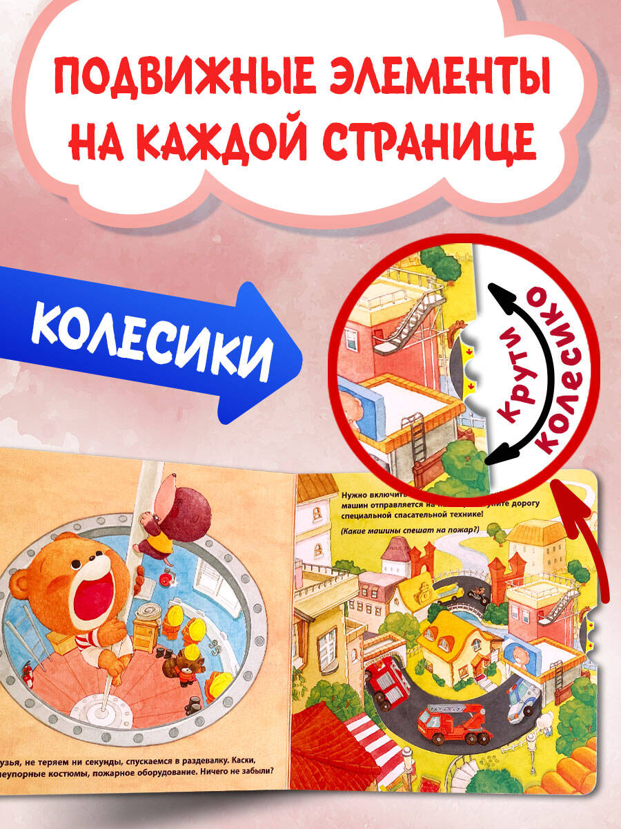 «Книжки-игрушки для малышей» - это целая серия интерактивных изданий с подвижными элементами для самых маленьких! Крутящиеся колёсики и выдвижные панели с картинками дополняют сюжет новыми подробностями. Играем, тренируем пальчики и запускаем речь! Тревога! Почему слышны сирены? Это в одном из домов вспыхнул пожар. Но Мишка и его друзья уже спешат на помощь. Нашим спасателям понадобятся огнеупорные костюмы, пожарный гидрант и машина с выдвижной лестницей, чтобы справиться с огнём. Присоединяйся к пожарной команде и помоги жителям города! Детализированные красочные иллюстрации на весь разворот очаруют не только детей, но и взрослых. Рассматривайте их с малышом, обсуждайте прочитанное, придумывайте свою историю! Отличный подарок для детей от 1 года до 3 лет! Все страницы и элементы книги имеют безопасную скруглённую форму и сделаны из прочного картона, который не под силу порвать малышу. А удобный формат позволяет играть с книгой не только дома, но и на улице.| Издательство | ООО "Издательство "Эксмо" |