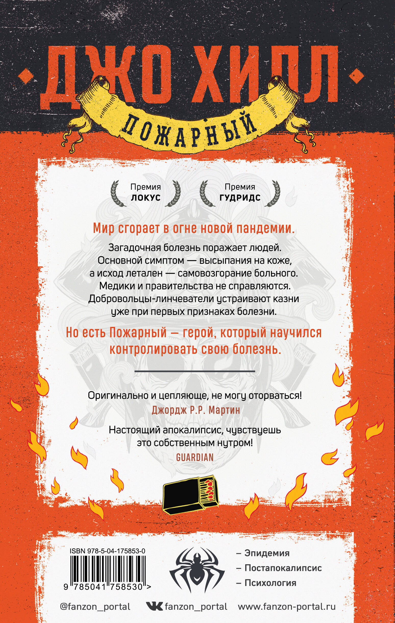 Лауреат премии «Локус» и «Гудридс» в категории «Роман ужасов» - последняя книга Джо Хилла, автора «Ключей Локков», «Черного телефона» и «Носферату». Мир сгорает в огне новой пандемии. Загадочная болезнь поражает людей. Основной симптом - высыпания на коже, а исход летален - самовозгорание больного. Медики и правительства не справляются. Добровольцы-линчеватели устраивают казни только при первых признаках болезни. Но есть Пожарный, герой, который научился контролировать свою болезнь. «Книга приключенческая и увлекательная - и одновременно жестокая и страшная. Но отнюдь не беспросветная, не "чернушная", несмотря на полыхающий на страницах огонь и вздымающиеся к небесам черные столбы человеческого пепла». - Г.Л. Олди «Оригинально и цепляюще, не могу оторваться!» - Джордж Р.Р. Мартин «Превосходный сверхъестественный триллер!» - Publishers Weekly «Настоящий апокалипсис, чувствуешь это собственным нутром!» - Guardian| Издательство | ООО "Издательство "Эксмо" |