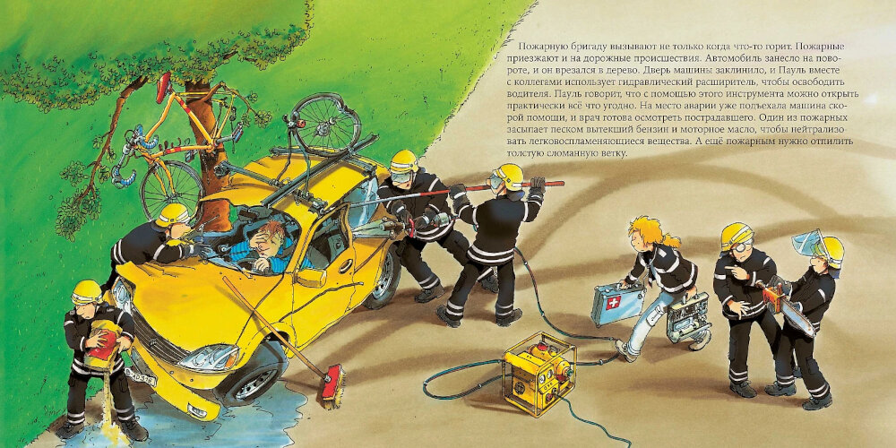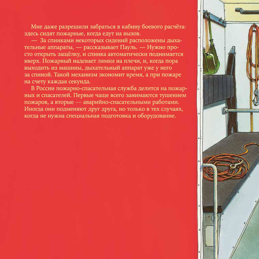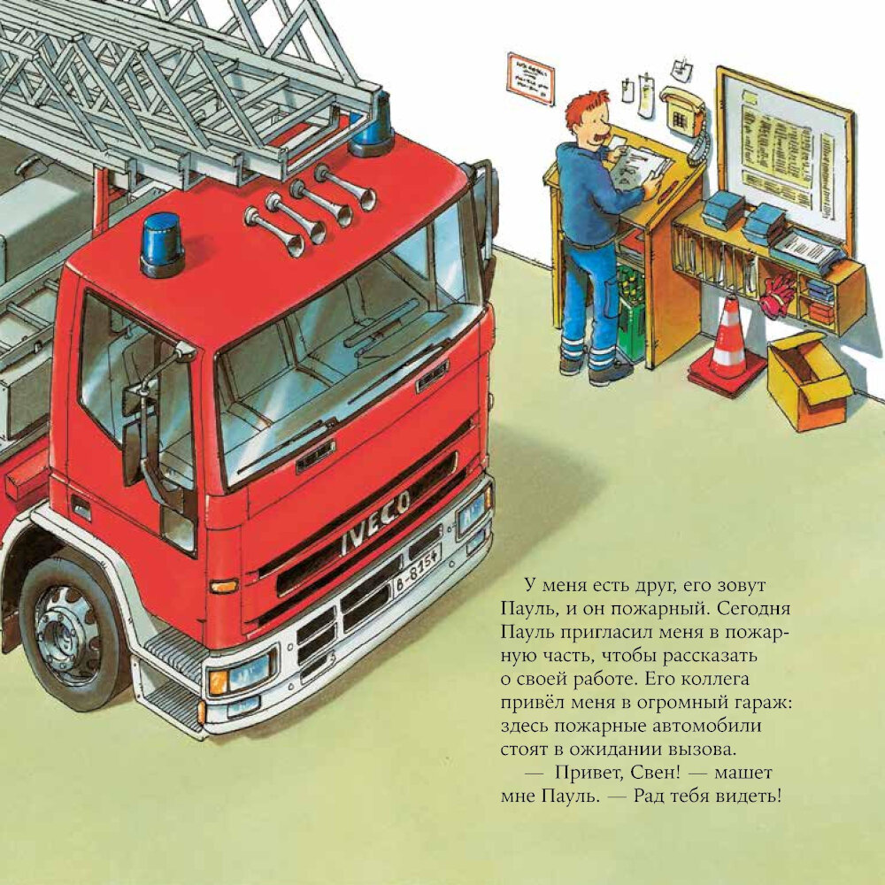 Все книги построены по принципу «один день из жизни...»: герои историй, дети, приходят в гости на работу к своим взрослым знакомым. В этой книге мальчик Свен вместе со своим другом Паулем знакомится с профессией пожарного. Вы узнаете, что находится внутри пожарной машины, что происходит в дежурно-диспетчерском центре, для чего пожарные натягивают штаны на сапоги и многое другое!| Издательство | Альпина Паблишер |