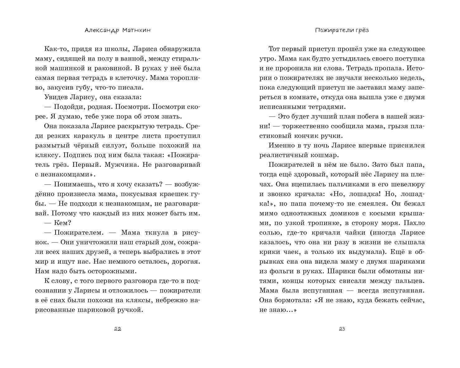 Александр Матюхин - финалист премии «Эксмо. Дебют 2023» в номинации «Лучший дебют подростковой литературы»! От автора «Города Спящих»! Уже знакомые многим места: Город Спящих, Омертвевший дом, пограничные леса... Отличный выбор как для подростков, так и для их родителей. Мы знаем точно: вам понравится! Александр Матюхин - современный автор, активно ведет группу в ВК и много общается с фанатами. Выпуклые буквы на обложке, привлекает взгляд! Мама Ларисы верит, что за их семьёй охотятся Пожиратели грёз, чудовища из другого мира. О странностях мамы быстро узнали в школе, и Лариса растеряла всех друзей. А потом она сама увидела Пожирателей… Димка как-то раз встречает на заброшенной заправке призрака! После этого мальчик разболелся и бормотал что-то о «вкусе грёз». Он и представить не мог, что невольно соорудил тоннель между мирами! И теперь Пожиратели грёз начинают охоту за ним и Ларисой - подростками, которые знают об их существовании и могут остановить!| Издательство | ООО "Издательство "Эксмо" |