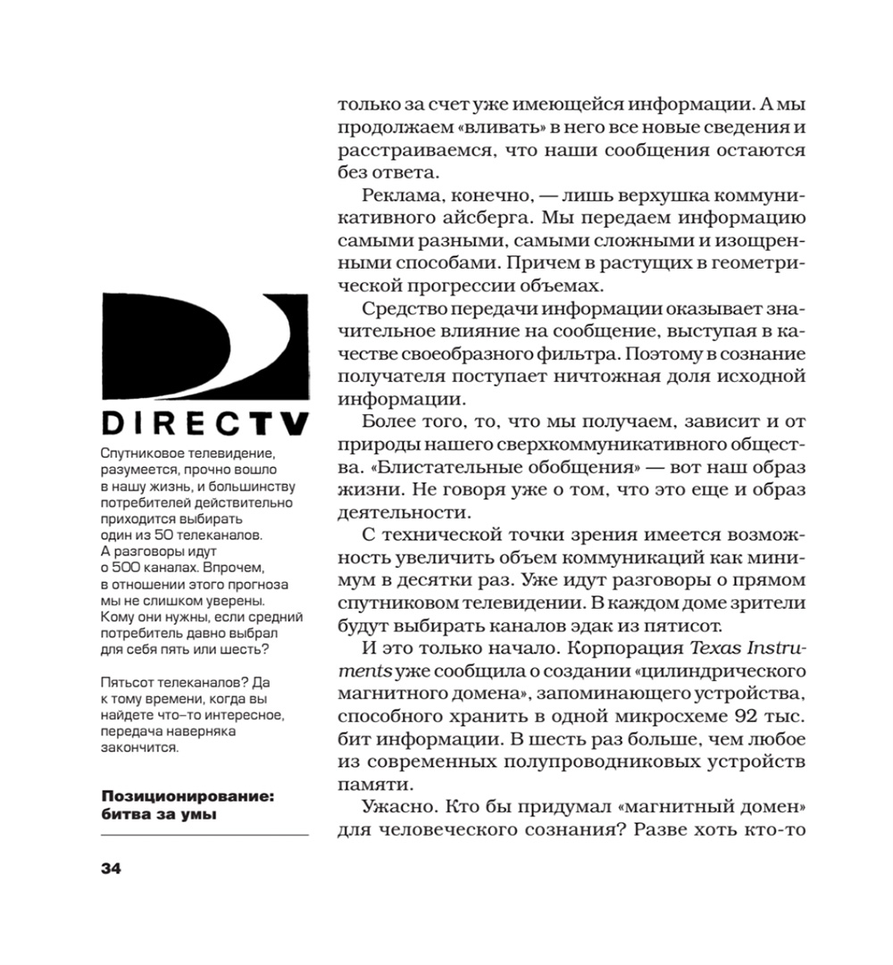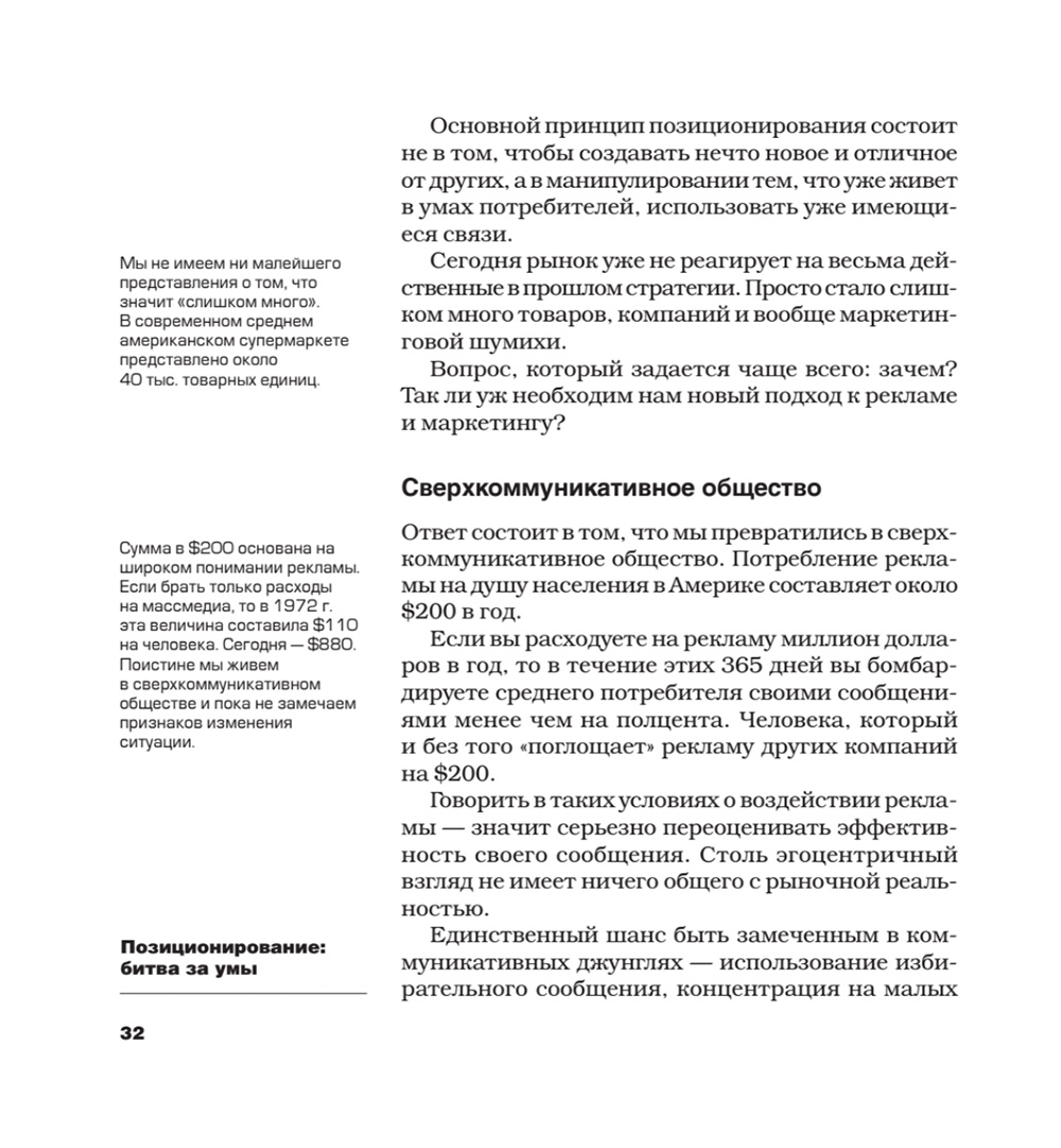 Концепция позиционирования - одна из самых популярных маркетинговых теорий в наши дни. Книга «Позиционирование: битва за умы», рассказывающая о ней и впервые изданная в 1980 году, потрясла деловой мир и навсегда изменила правила маркетинга, одновременно став мировым бестселлером во многих странах мира и настольной книгой для специалистов по маркетингу, рекламе, а также для руководителей компаний, желающих быть победителями в конкурентной борьбе. Новейшее издание книги дополнено авторскими комментариями, в которых анализируются феноменальные успехи и грандиозные маркетинговые провалы трех последних десятилетий, а также кейсами из практики рекламы и маркетинга в России, написанными по согласованию с Джеком Траутом российскими представителями компании Trout&Partners.| Издательство | Питер |