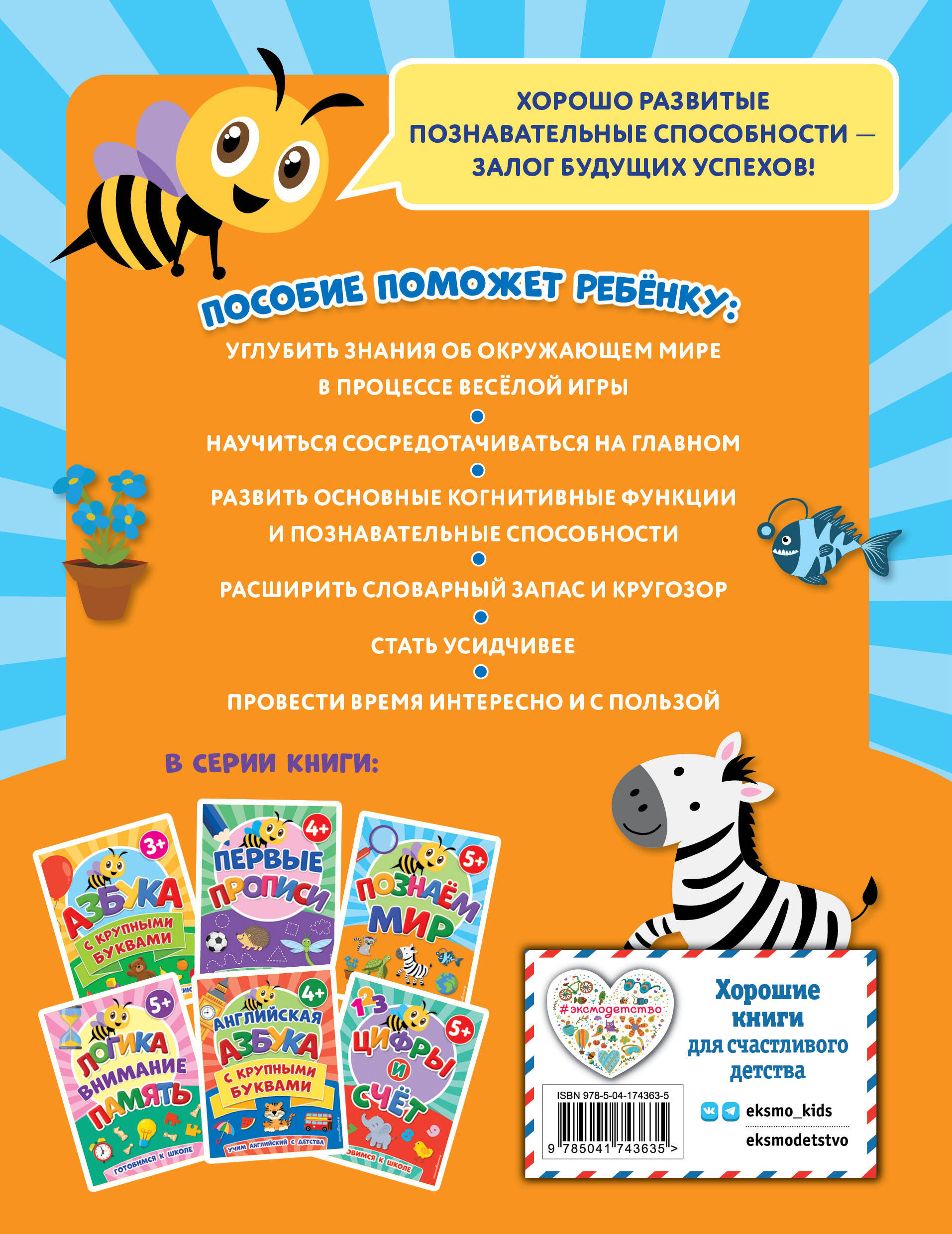 Хорошо развитые познавательные способности - залог будущих успехов в школе. Прекрасно иллюстрированное красочное пособие адаптировано к требованиям конкретного возраста, учитывает особенности современных детей и предлагает эффективное решение для раннего развития и обучения ребенка. Занимаясь, дошкольник узнает много нового и интересного об окружающем мире, а также сможет развить память, внимание и речь. У ребенка сформируются необходимые навыки, его мозг сможет сравнивать, выделять и запоминать информацию. Простота и доступность предлагаемого материала придаст дошкольнику уверенности в себе и создаст положительный настрой к обучению.| Издательство | ООО "Издательство "Эксмо" |
