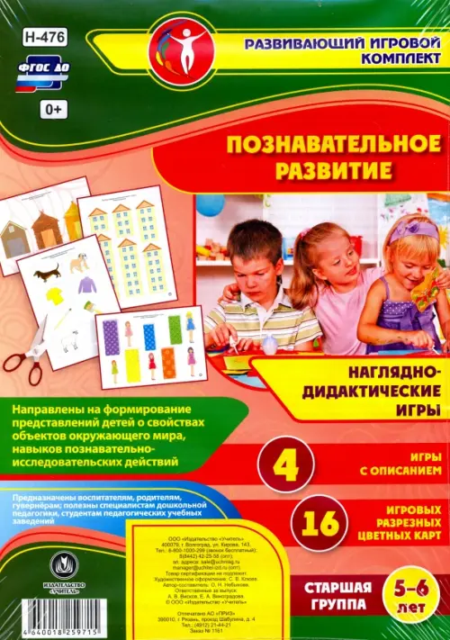 В комплекте: 4 игры с описанием, 16 игровых разрезных цветных карт.
