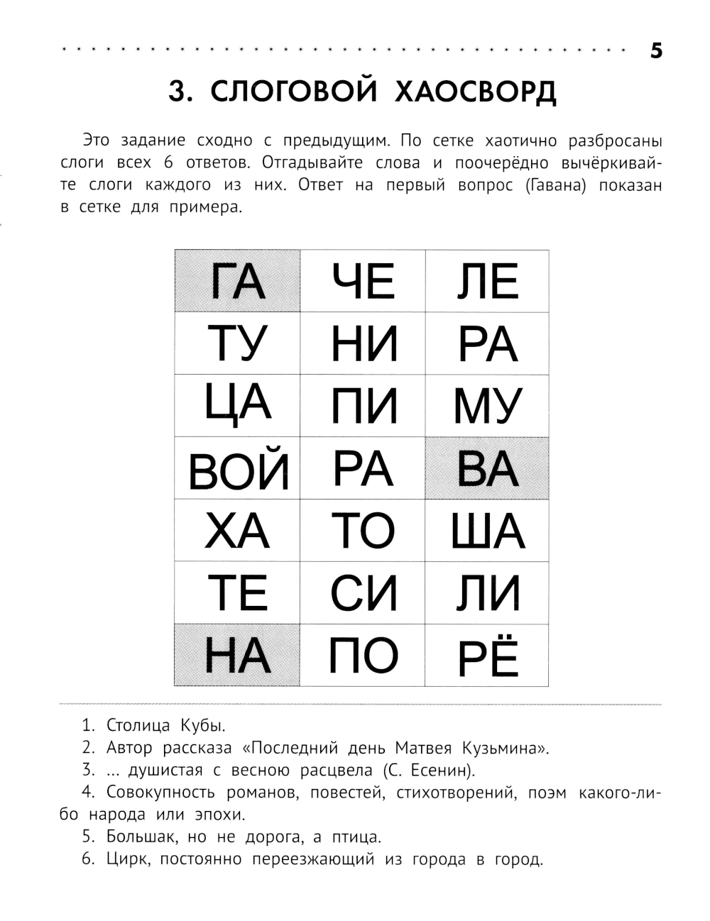 Перед вами чудесный сборник кроссвордов и других задач со словами и буквами, а также с числами и геометрическими фигурами для детей 8-9 лет. Наверняка вы и раньше решали головоломки. Но в этой книжечке вы увидите много новых, прежде незнакомых вам видов словесных и числовых головоломок, при решении которых вы проведёте с пользой свой досуг. Числовые задания помогут быстрее считать на уроках математики. А словесные задачи разовьют память и сообразительность и помогут ещё лучше усвоить школьную программу по чтению и литературе.| Издательство | Феникс |